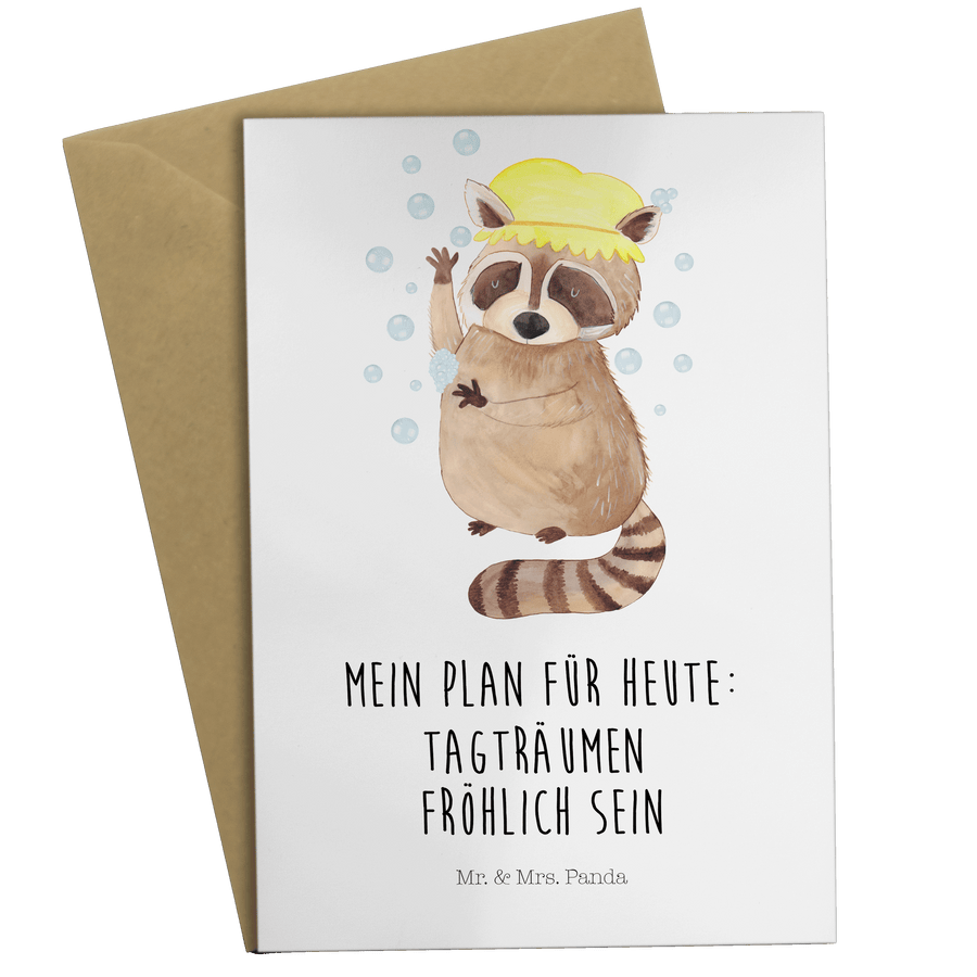 Grußkarte Waschbär - mit Spruch - Weiß