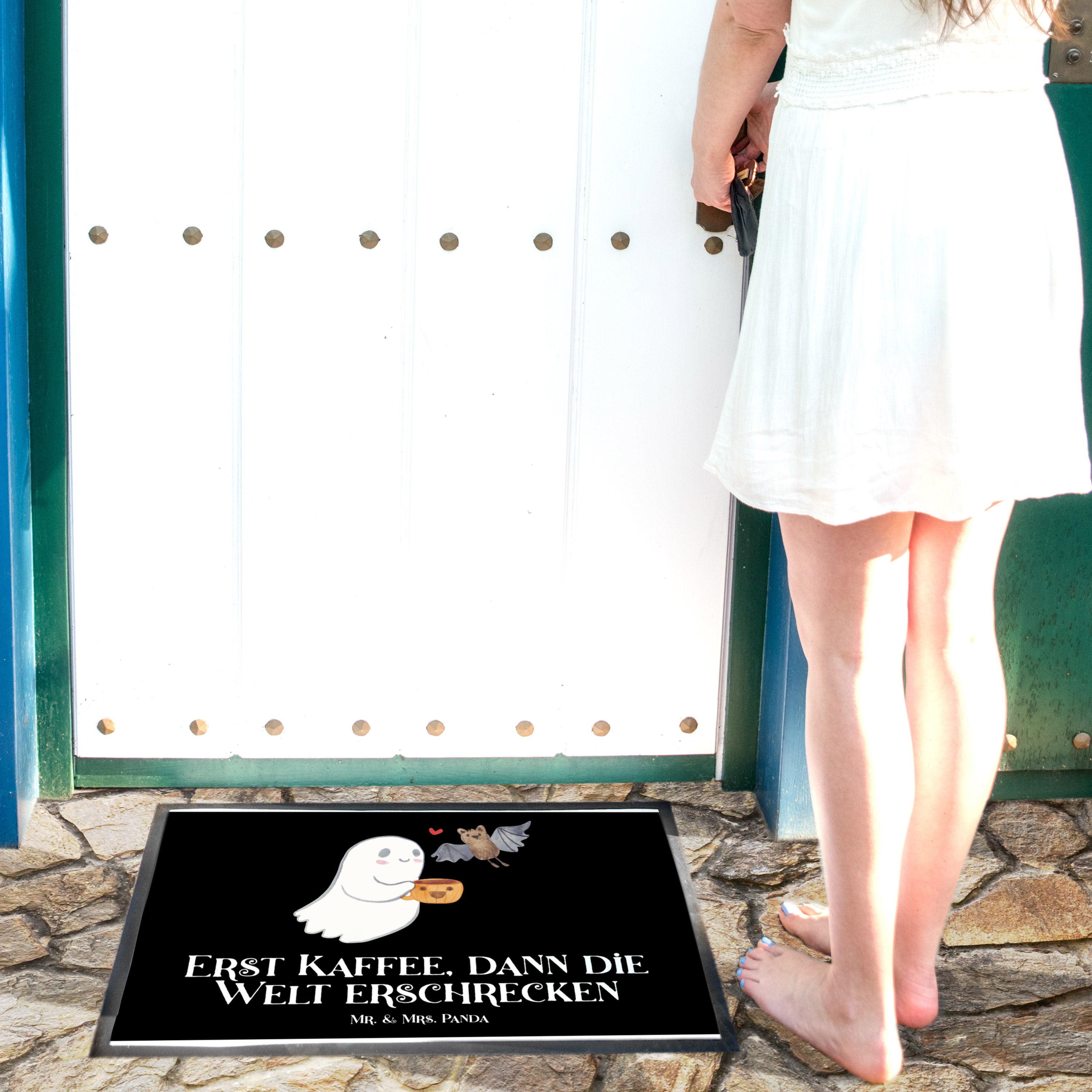 Fußmatte Gespenst Kaffee Türvorleger, Schmutzmatte, Fußabtreter, Matte, Schmutzfänger, Fußabstreifer, Schmutzfangmatte, Türmatte, Motivfußmatte, Haustürmatte, Vorleger, Halloween, Deko, Martinssingen, Dekoration, Geschenke, Schenken, Gespenst, Kaffee