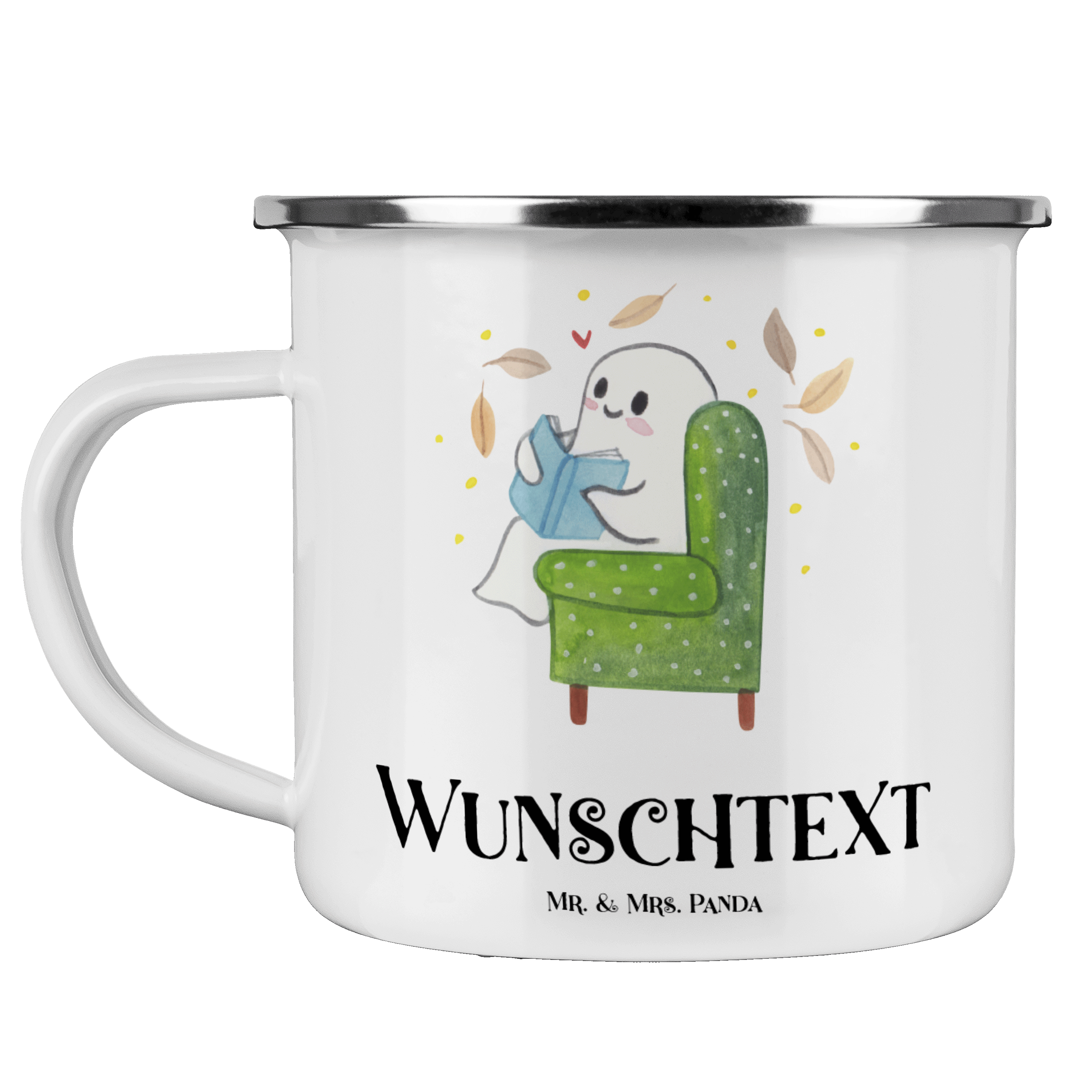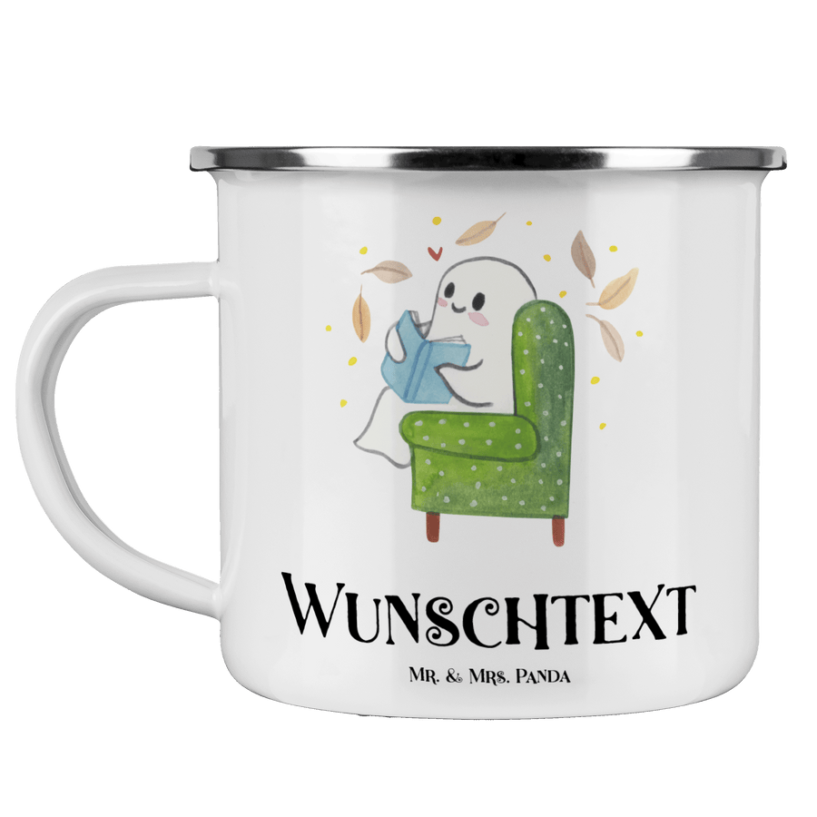 Personalisierte Emaille Tasse Gespenst Buch