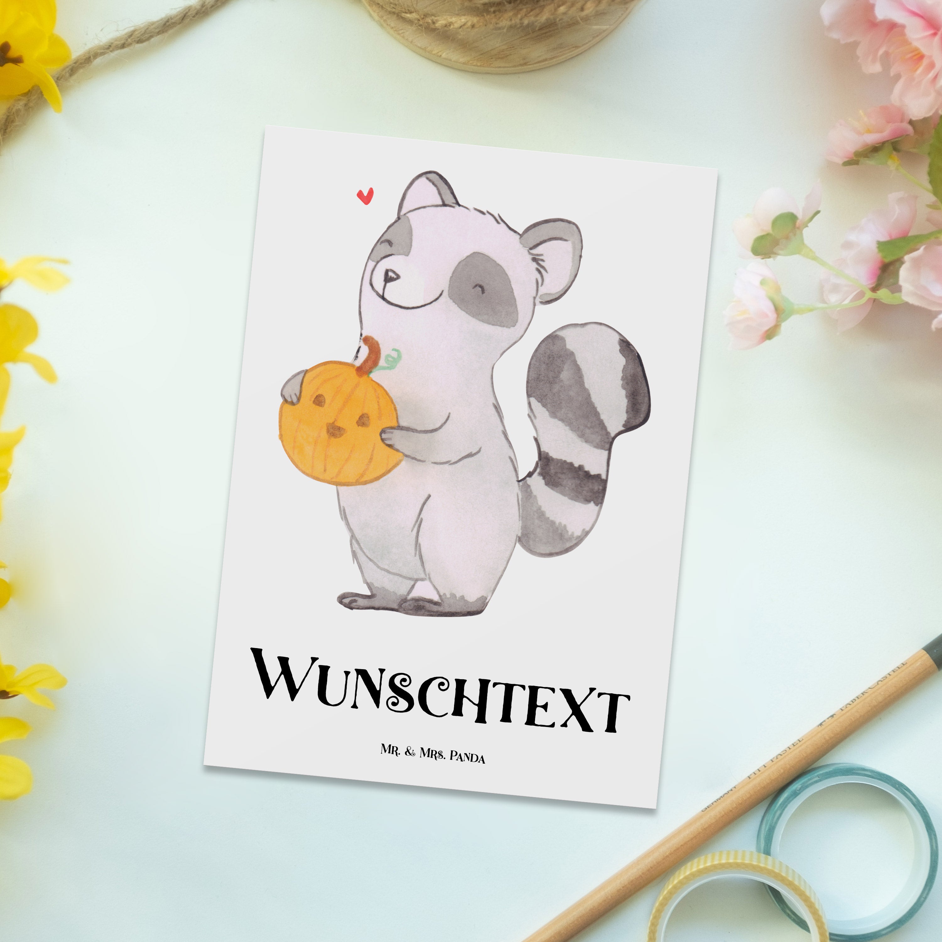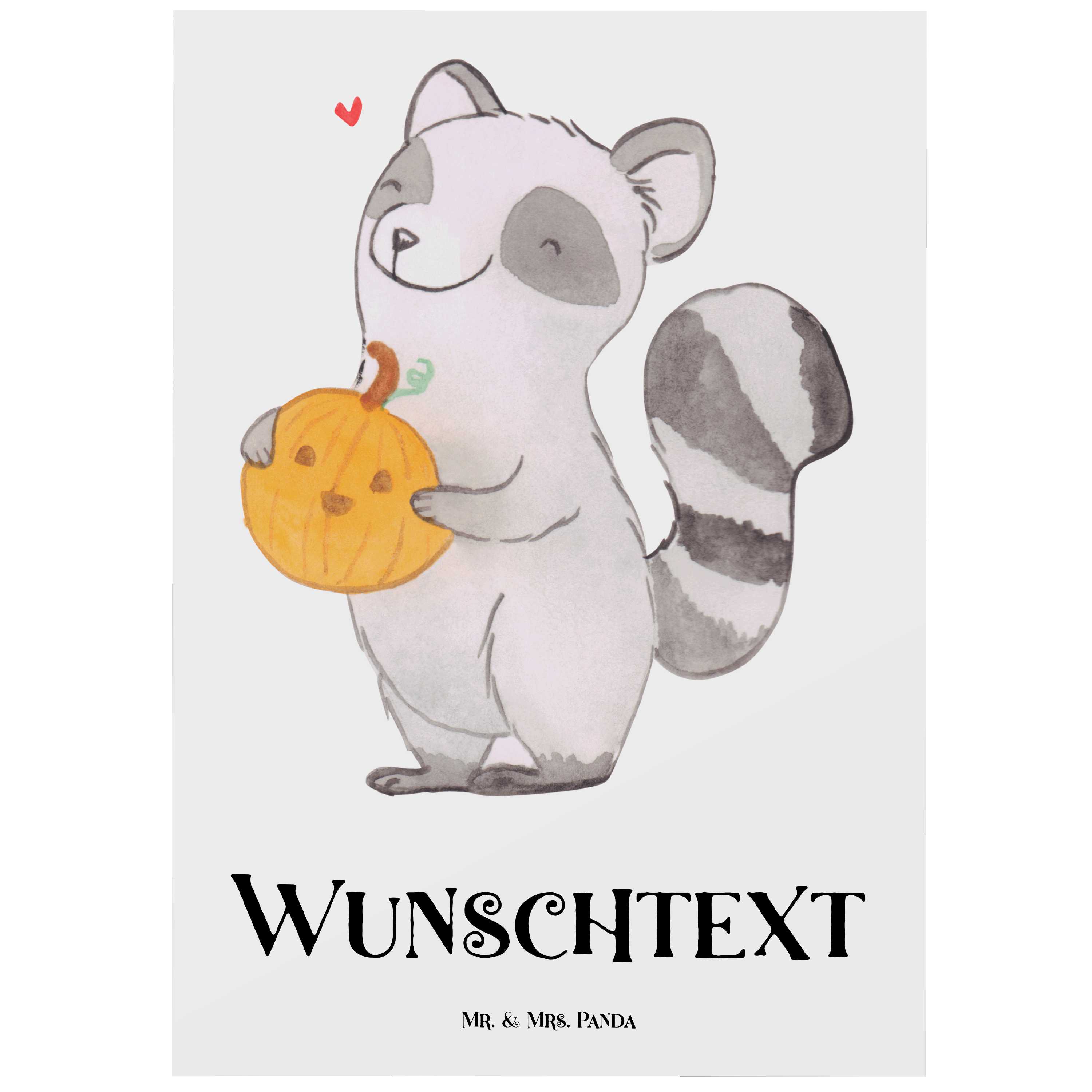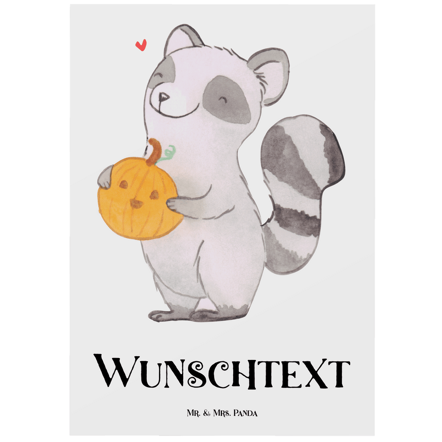 Der Waschbär Kürbis von Mr. & Mrs. Panda bringt gemütliche Herbststimmung in dein Zuhause. Der fröhliche Waschbär hält einen geschnitzten Kürbis in der Hand, der mit einem freundlichen Lächeln verziert ist. Lass dich von diesem niedlichen Motiv in die Welt der bunten Blätter, Kuscheldecken und Tee-Liebhaber entführen und erlebe die schönste Jahreszeit von ihrer besten Seite. Mit diesem Motiv holst du dir die perfekte Dekoration für das Herbstfest nachhause.