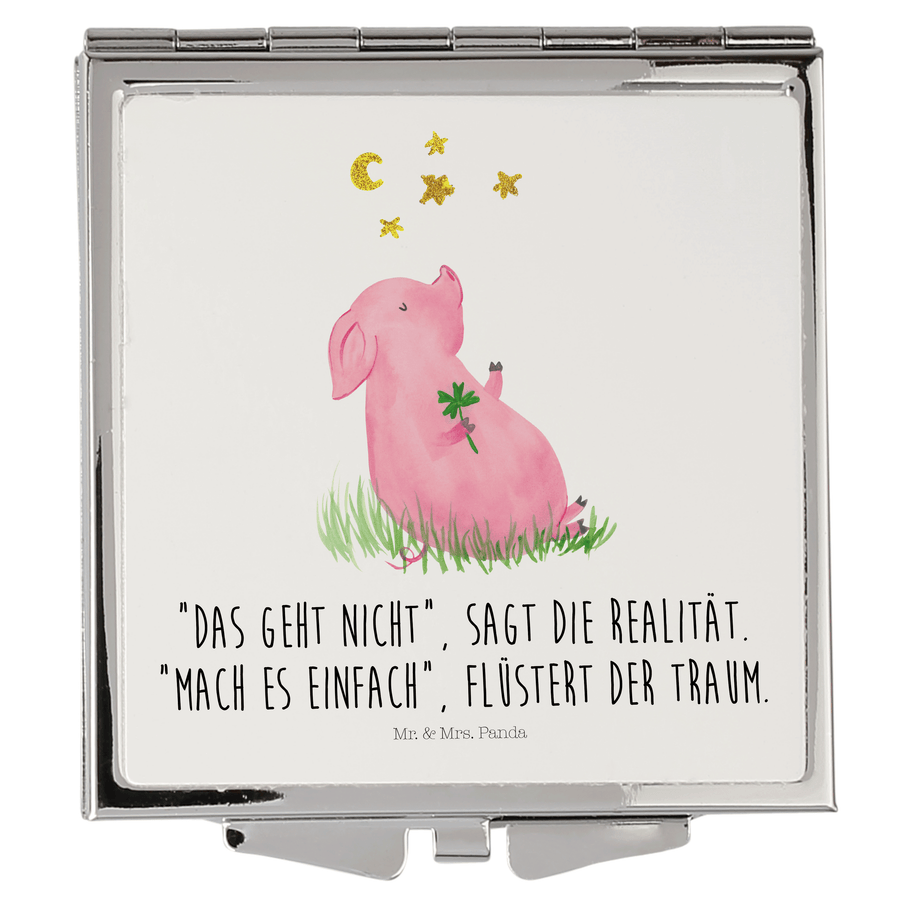 Handtaschenspiegel quadratisch Glücksschwein - mit Spruch - Weiß