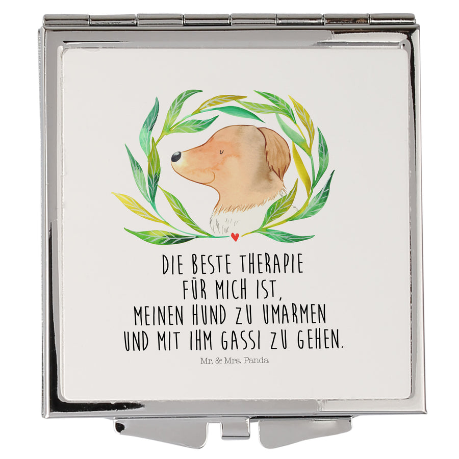 Handtaschenspiegel quadratisch Hund Ranke - mit Spruch - Weiß