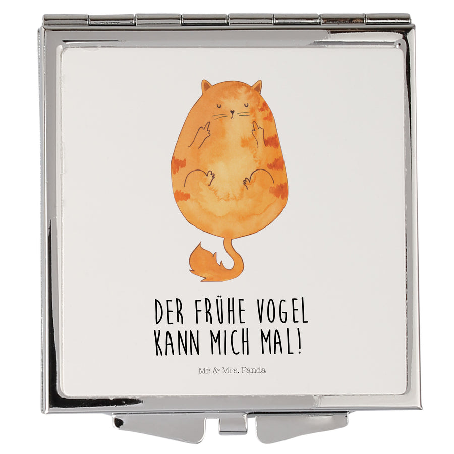 Handtaschenspiegel quadratisch Katze Frühaufsteher - mit Spruch - Weiß