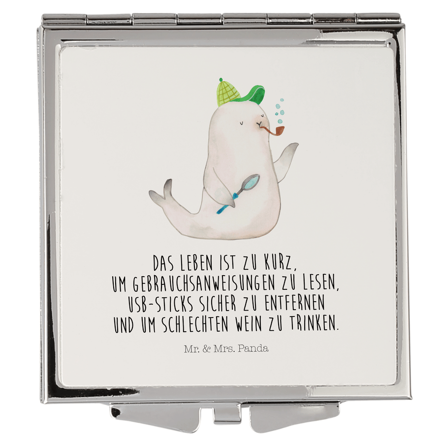 Handtaschenspiegel quadratisch Robbe Sherlock - mit Spruch - Weiß