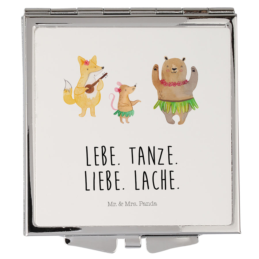 Handtaschenspiegel quadratisch Waldtiere Aloha - mit Spruch - Weiß