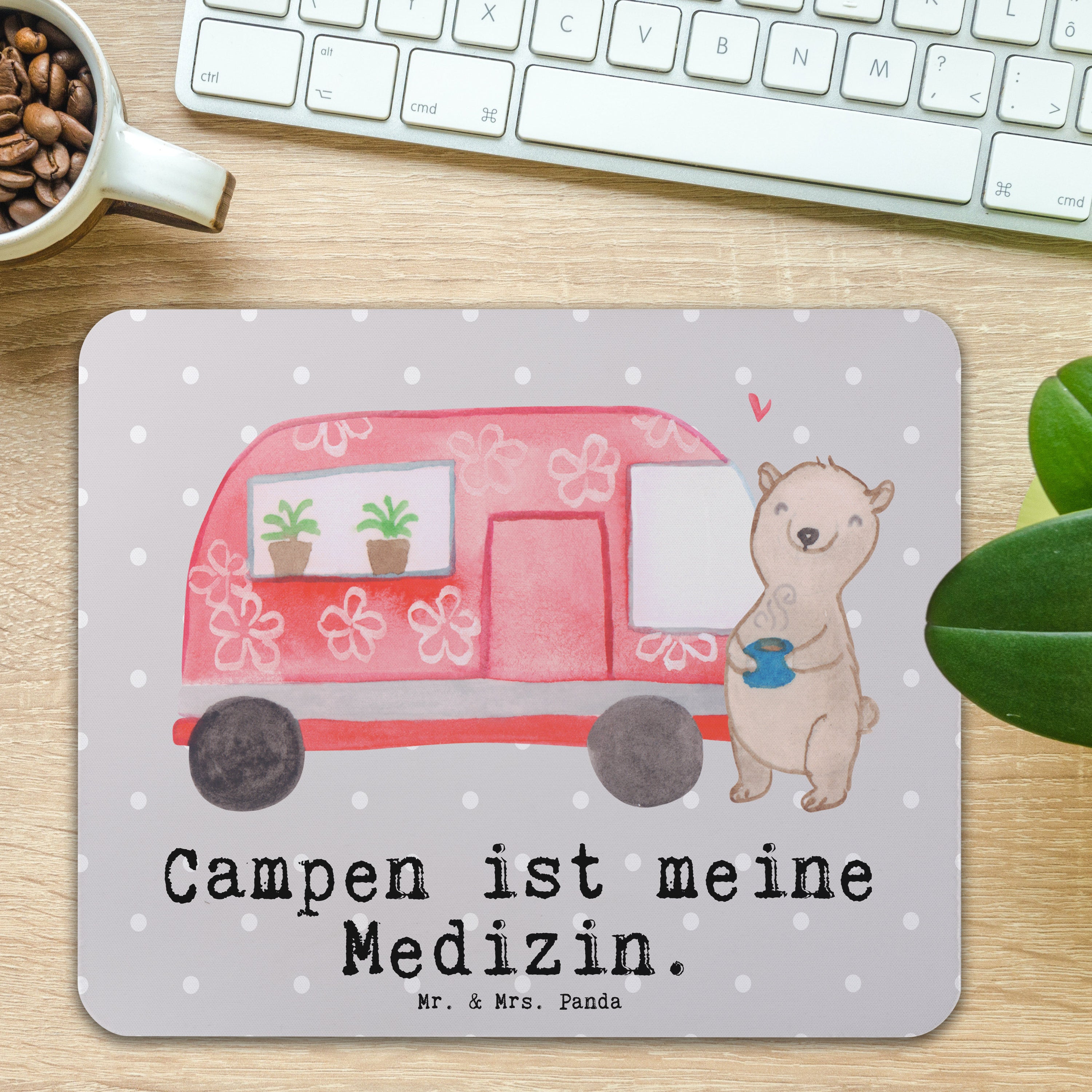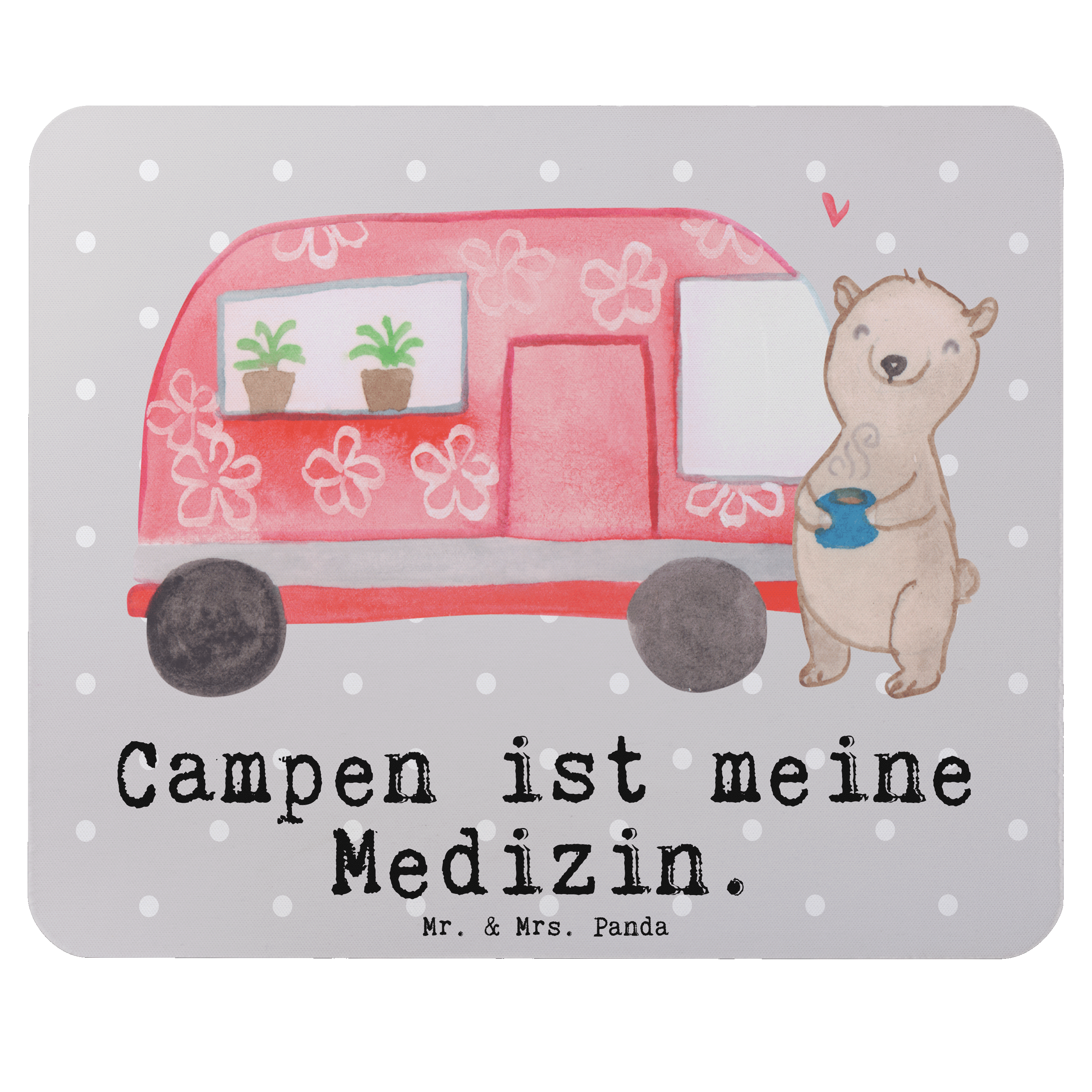 Mauspad Bär Camper Medizin - Grau Pastell
