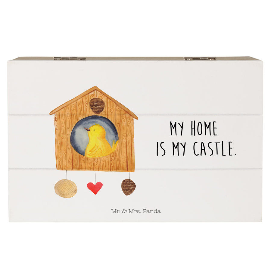 Holzkiste Vogelhaus - 19 x 12 cm - mit Spruch - Weiß