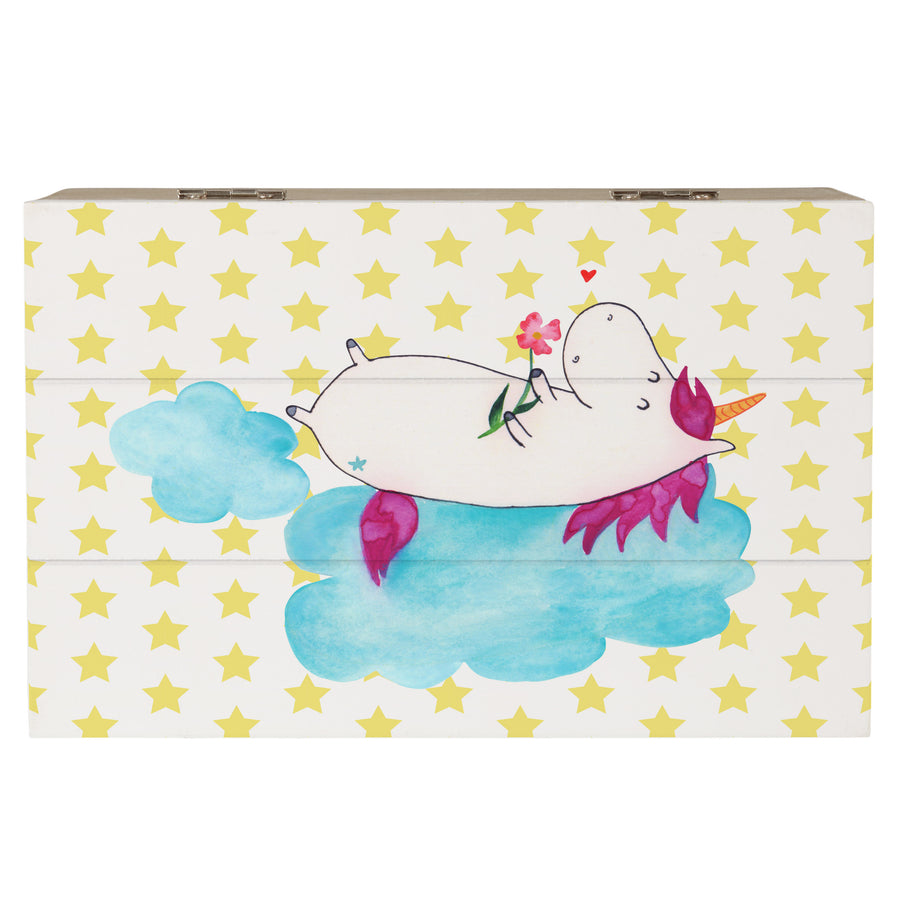 Holzkiste Einhorn verliebt auf Wolke - 19 x 12 cm - ohne Spruch - Weiß