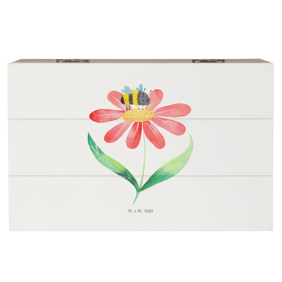 Holzkiste Hummel Blume - 19 x 12 cm - ohne Spruch - Weiß