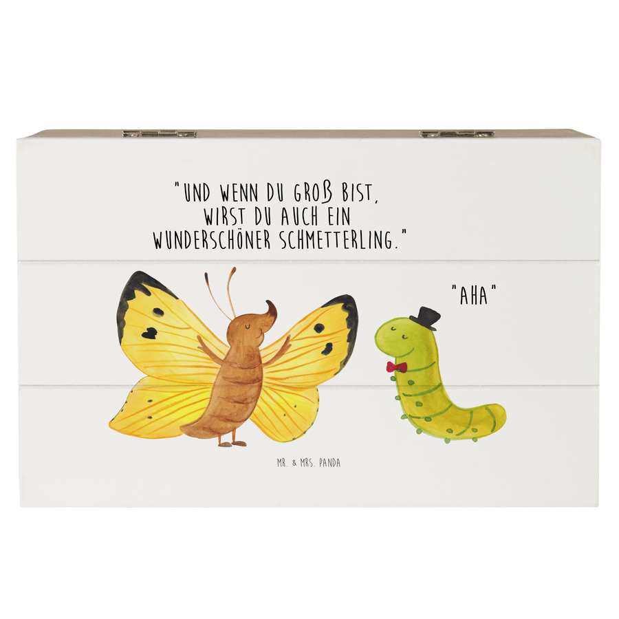 Holzkiste Raupe & Schmetterling - 19 x 12 cm - mit Spruch - Weiß