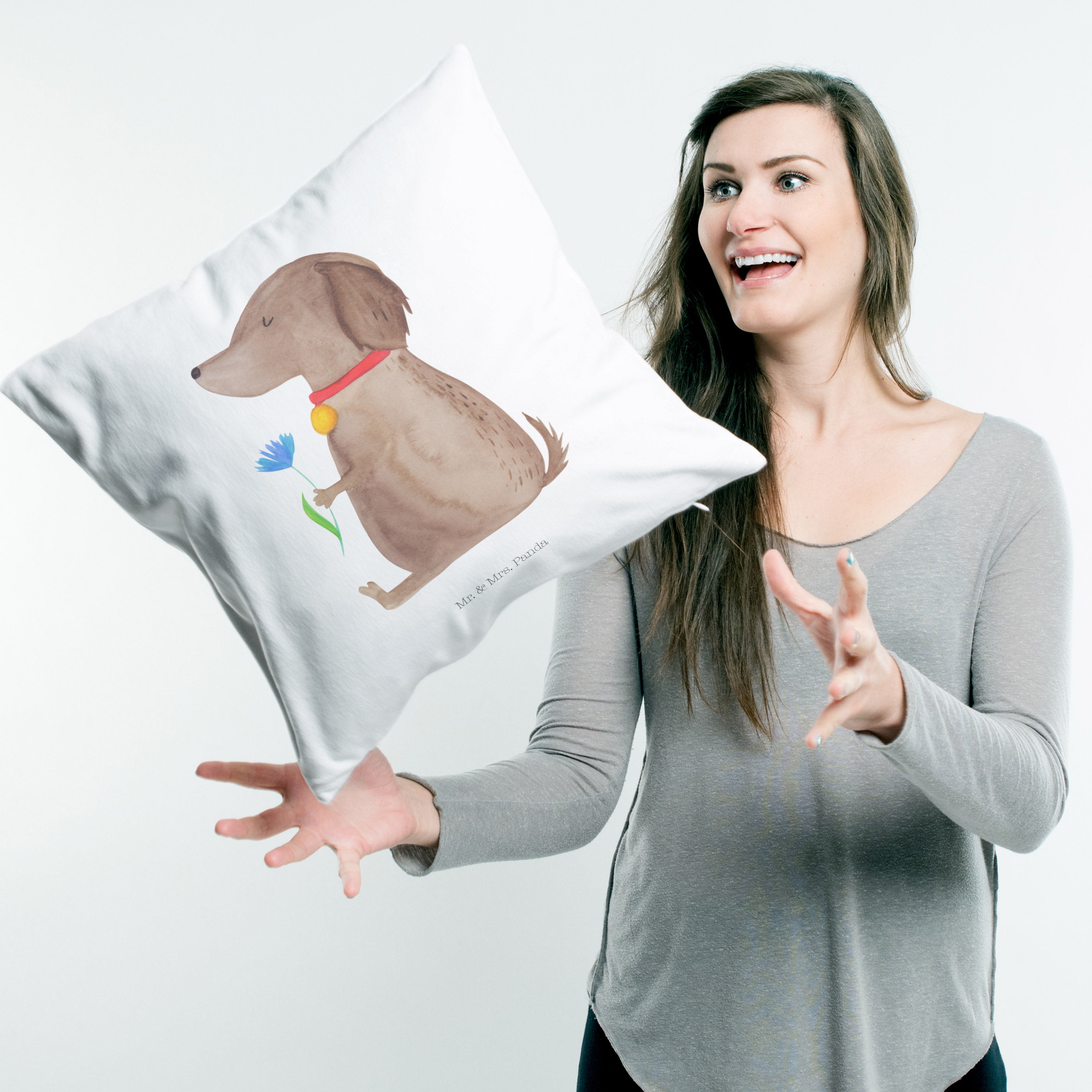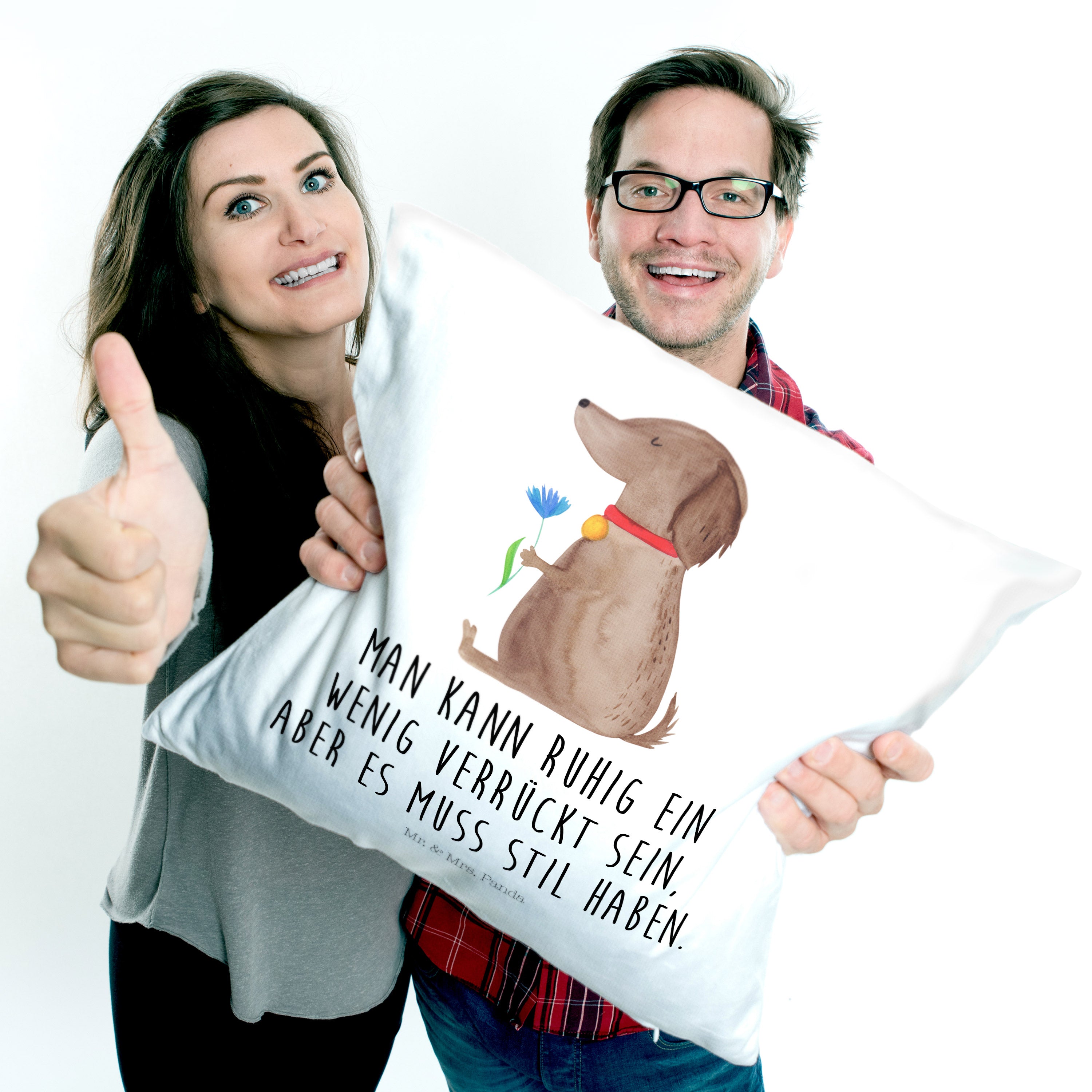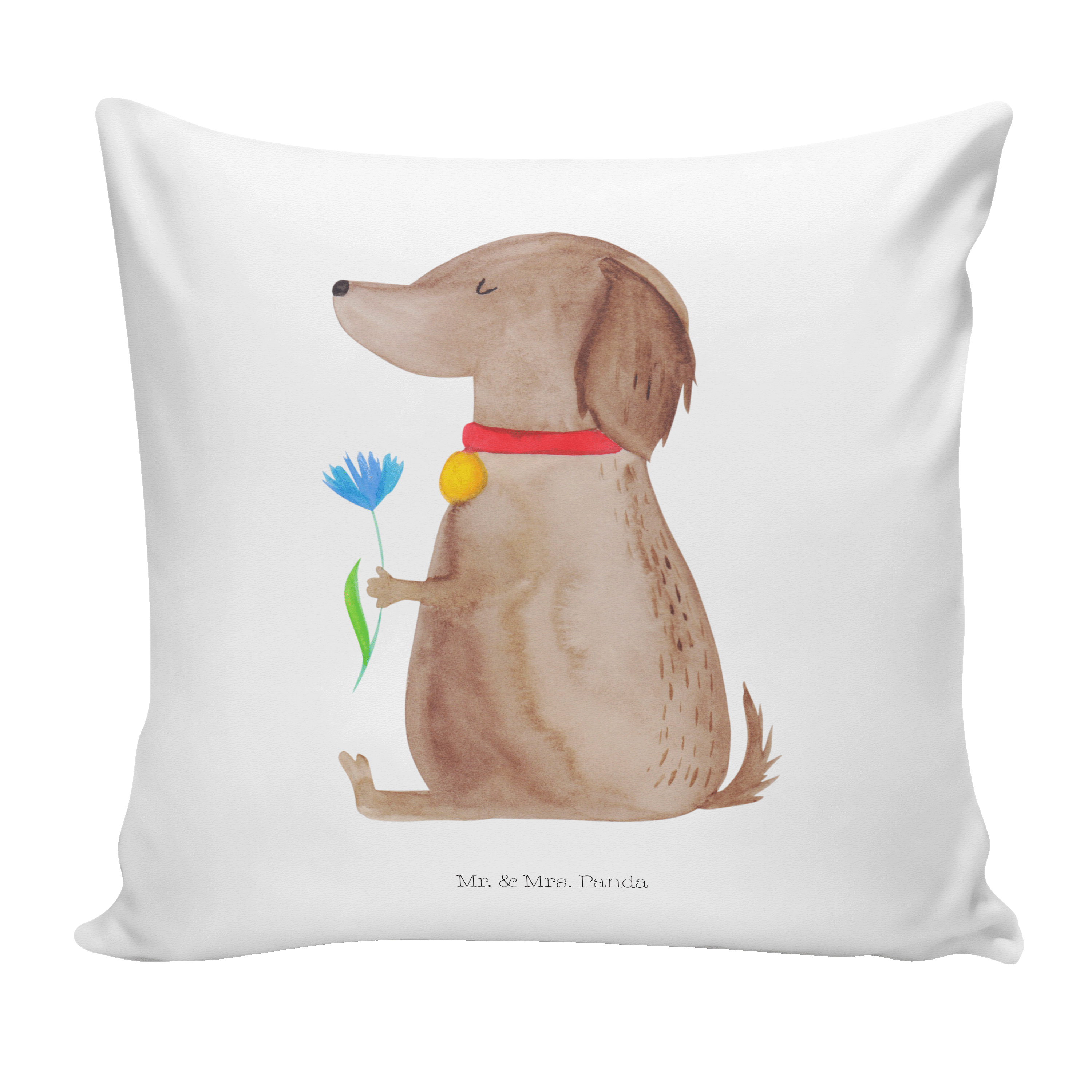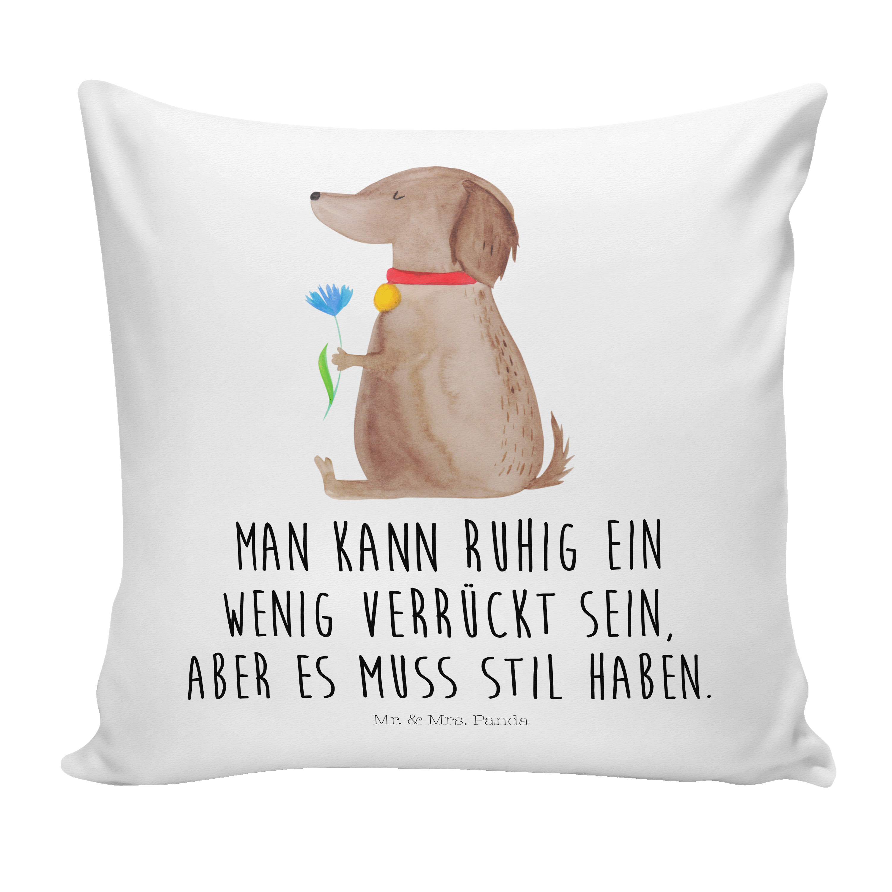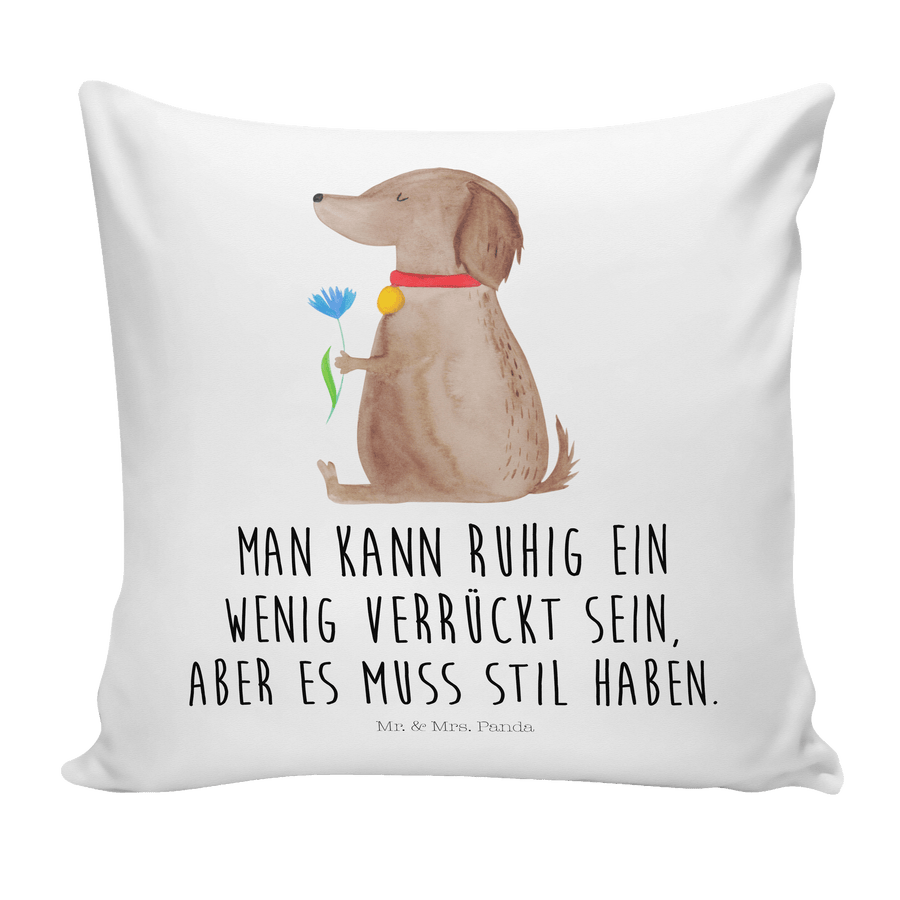 40x40 Kissen Hund Blume - mit Spruch - Weiß