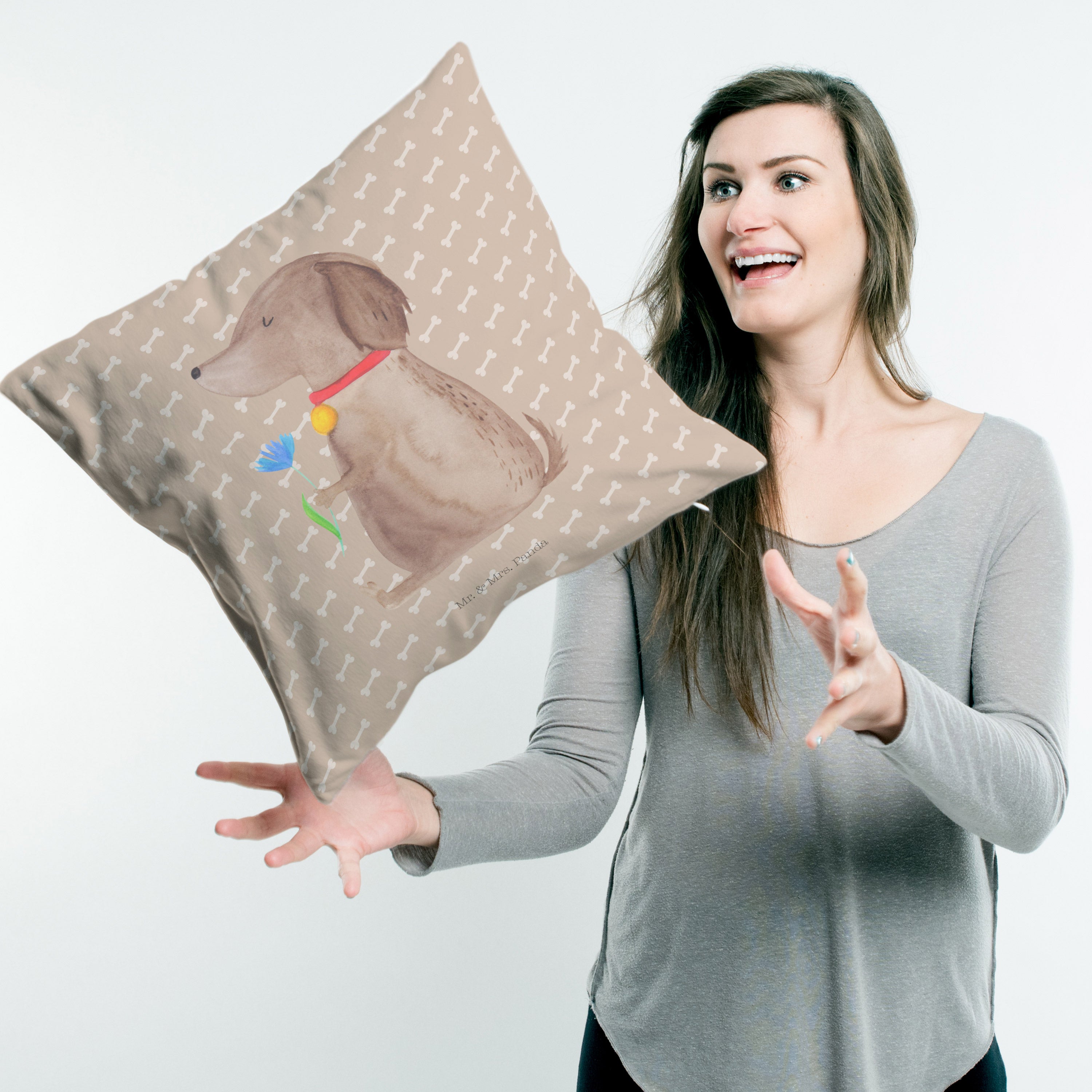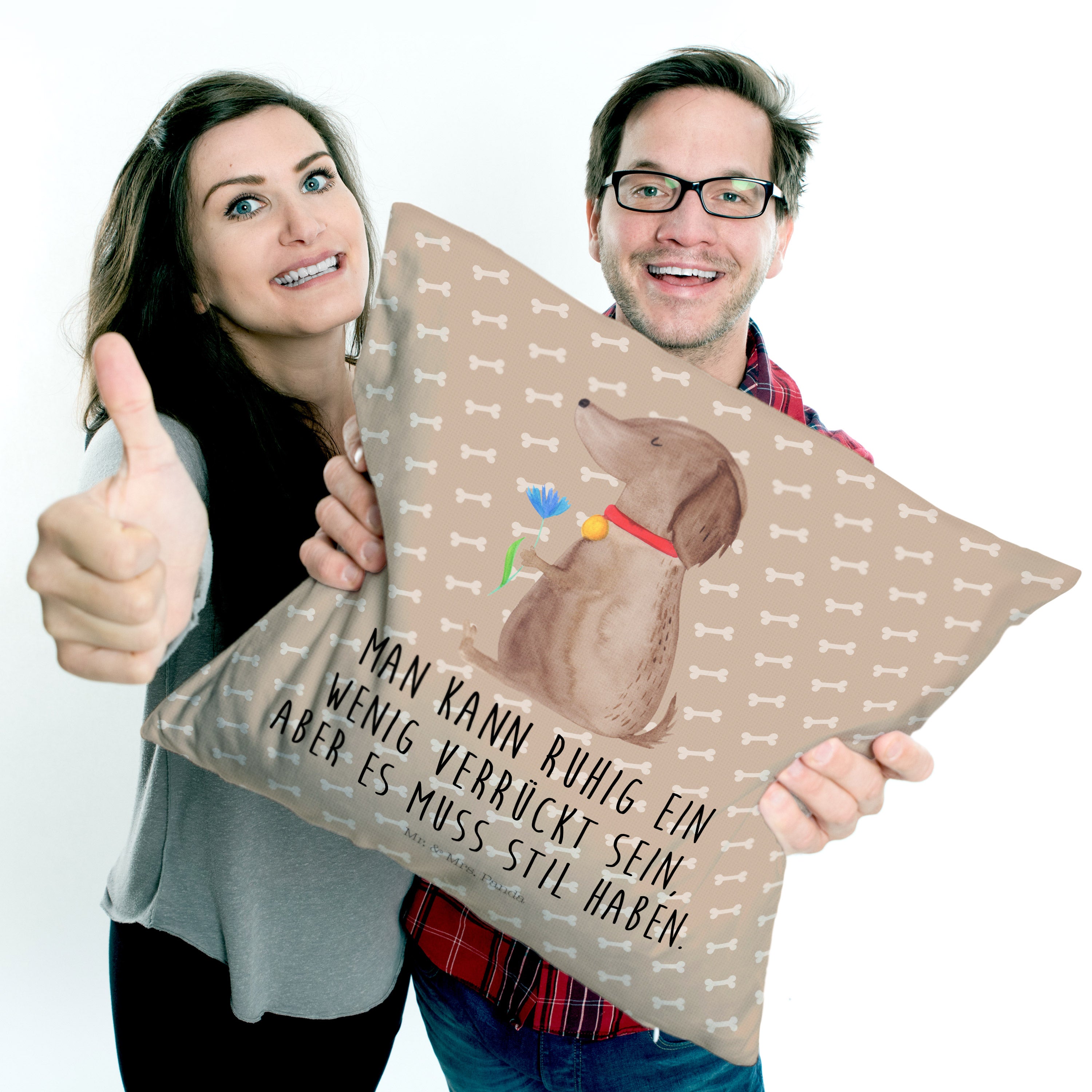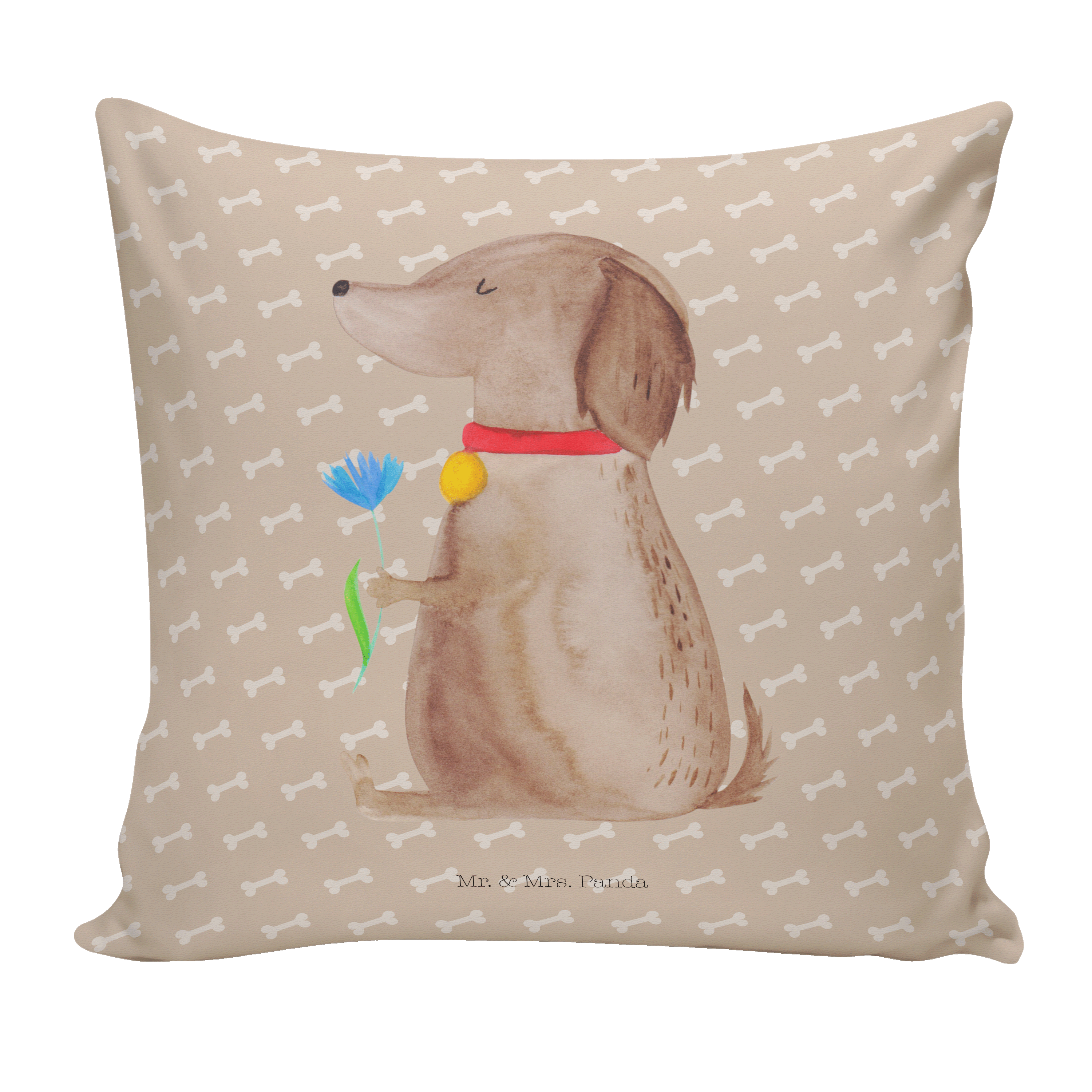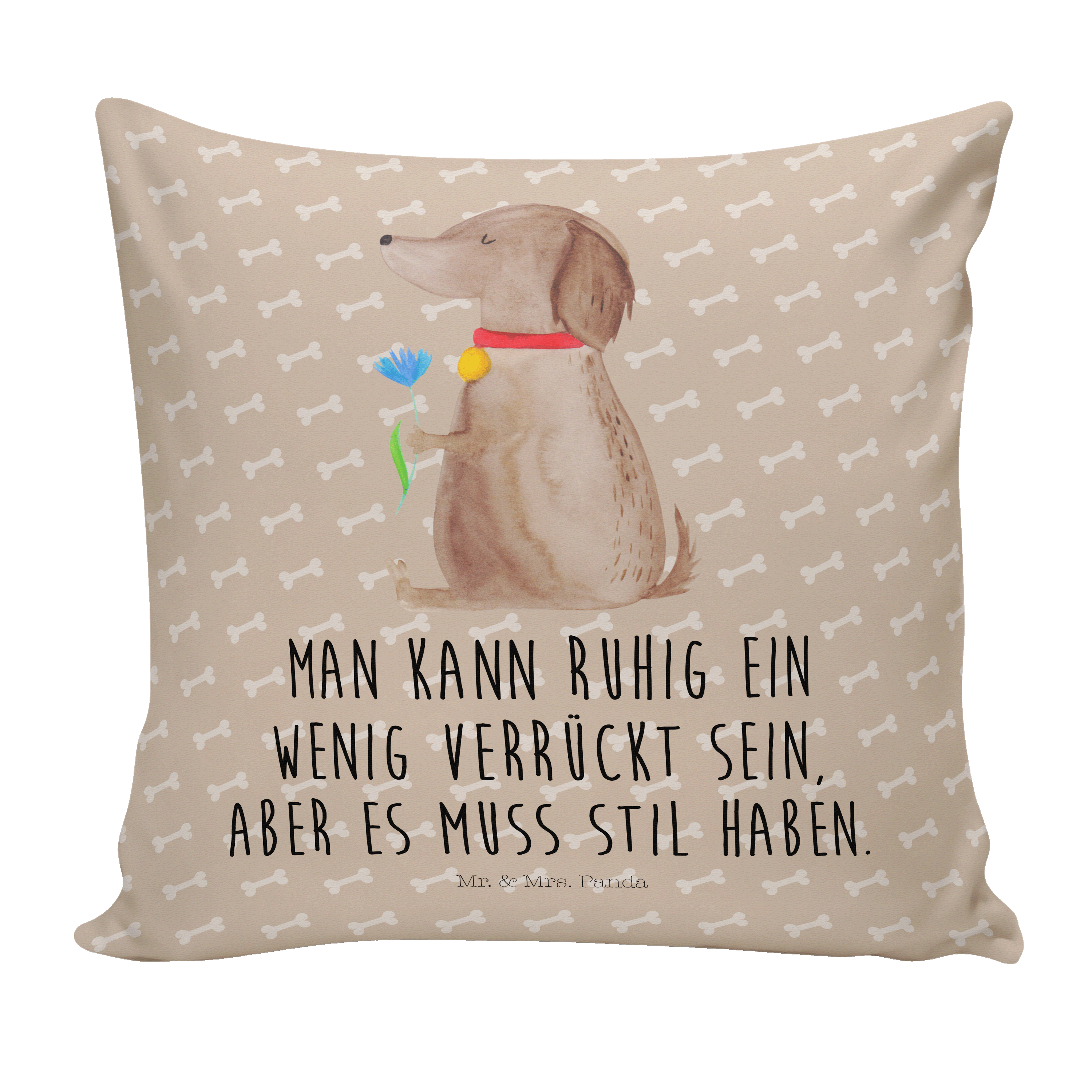 40x40 Kissen Hund Blume - mit Spruch - Weiß