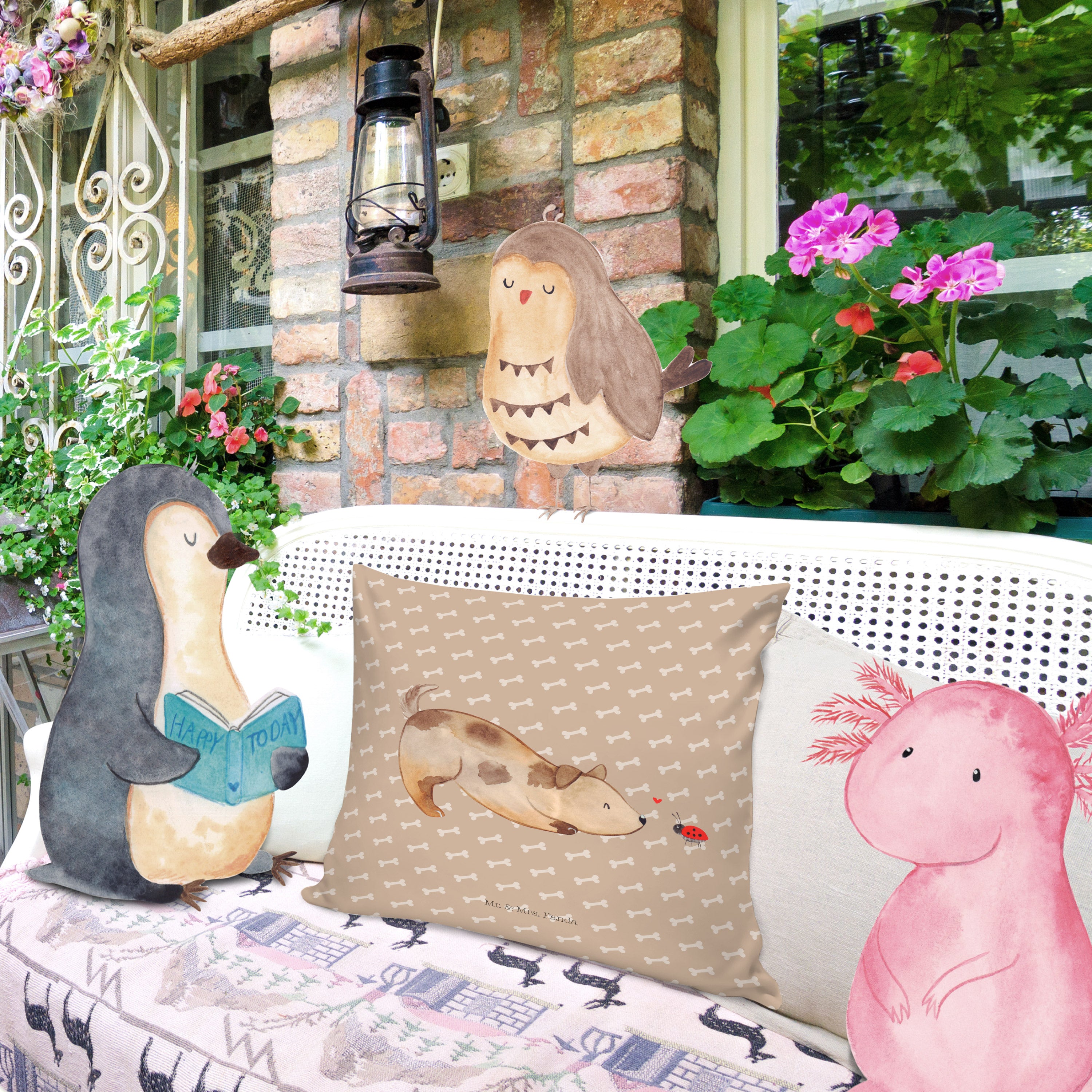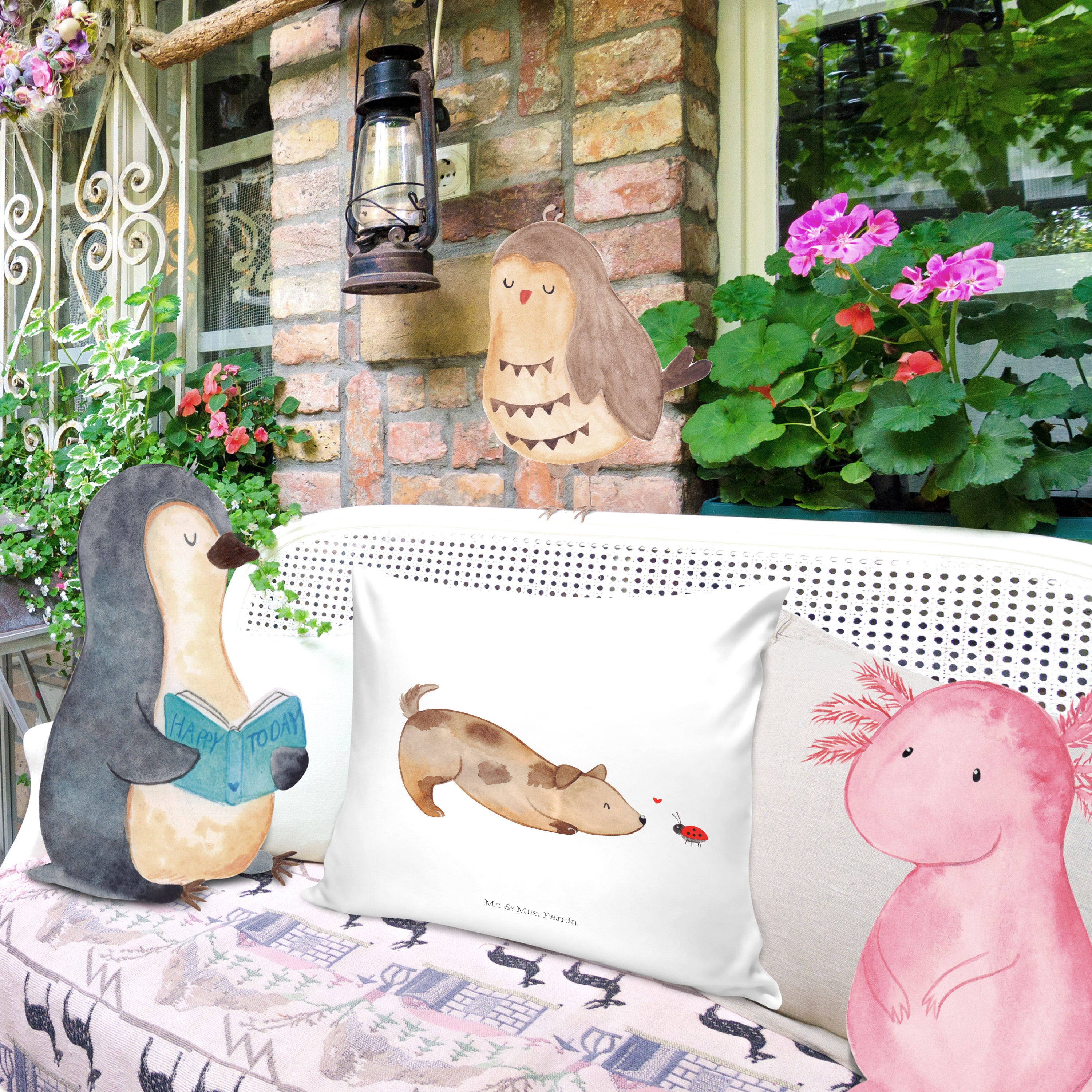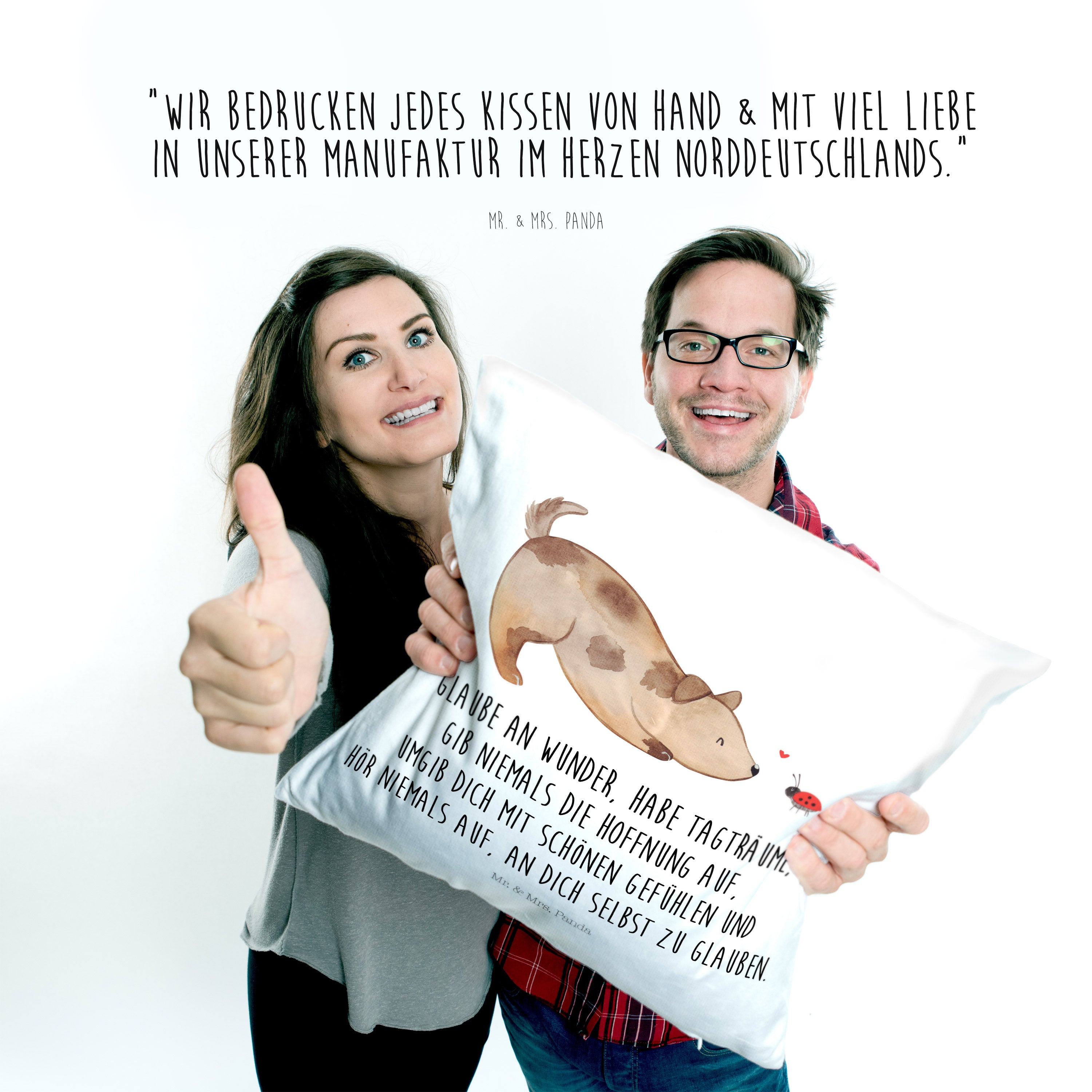 Ein wunderschönes kuscheliges Kissen von Mr. & Mrs. Panda mit wunderbar weicher entnehmbarer Füllung - Die Kissenhülle bzw. der Kissenbezug wurde liebevoll von uns bedruckt und mit einer superweichen Kissenfüllung versehen. Das Kopfkissen hat einen Reißverschluss zum Entnehmen der Füllung. Dein neues Kuschelkissen hat die Größe von 40x40 cm und ist auch perfekt als Sofakissen oder Dekokissen geeignet - das Kissen ist ebenfalls in der Größe 80x80 erhältlich.