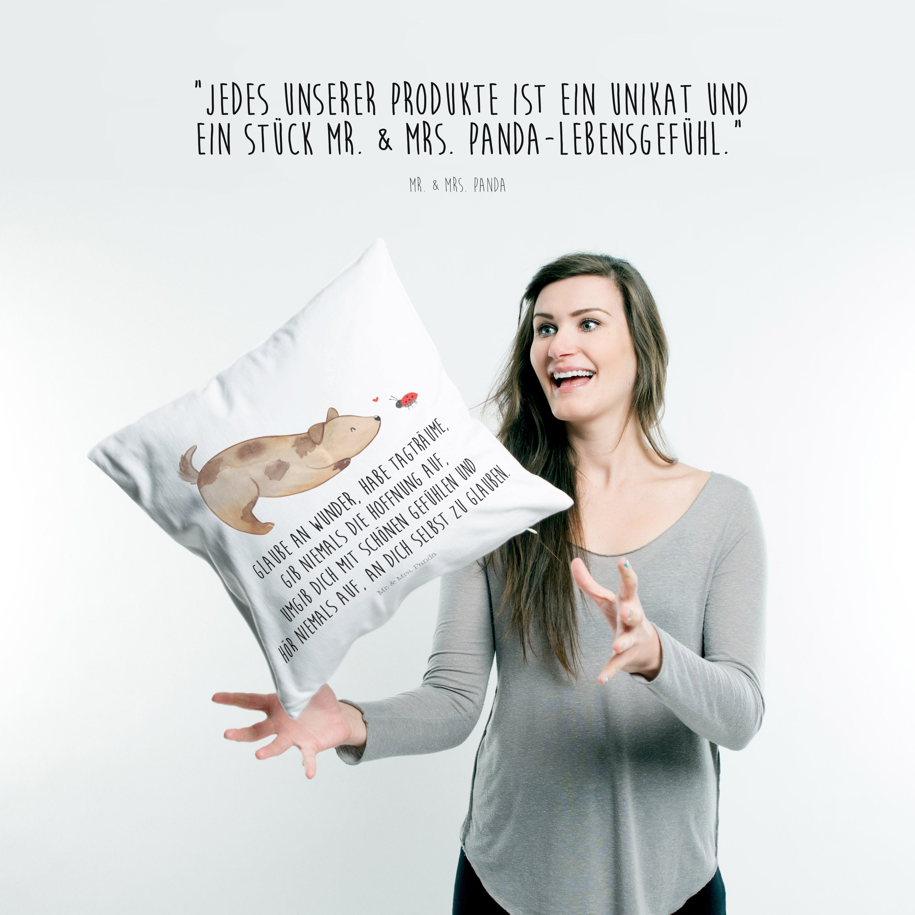 40x40 Kissen Hund Marienkäfer - mit Spruch - Hundeglück