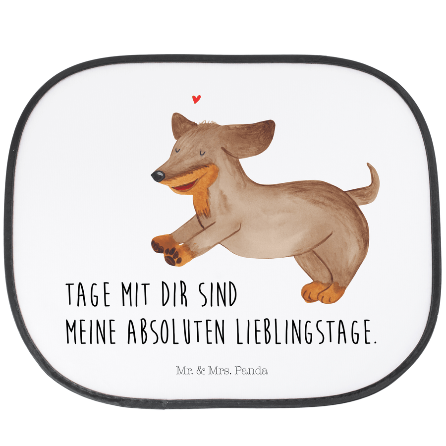 Auto Sonnenschutz Hund Dackel fröhlich - mit Spruch - Weiß