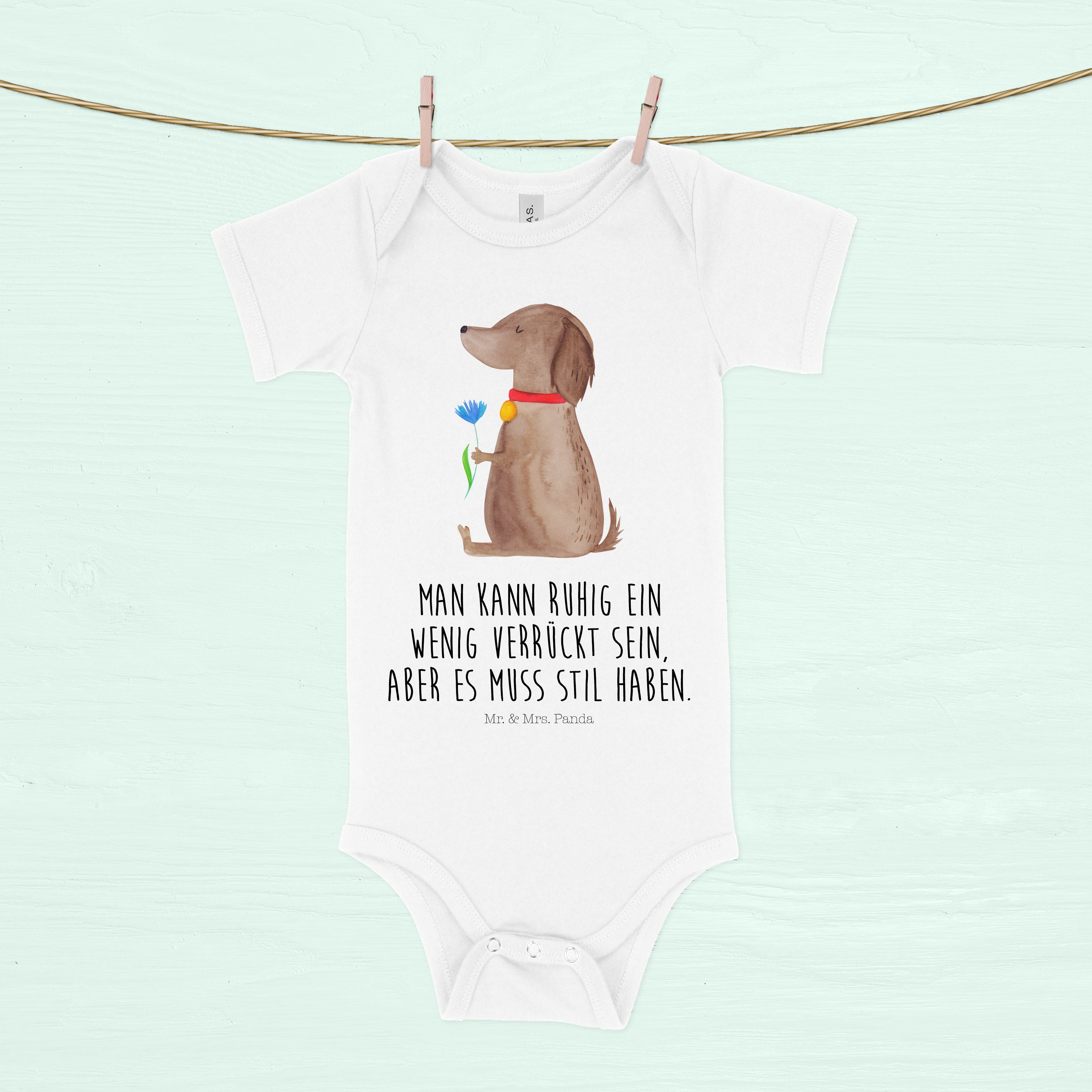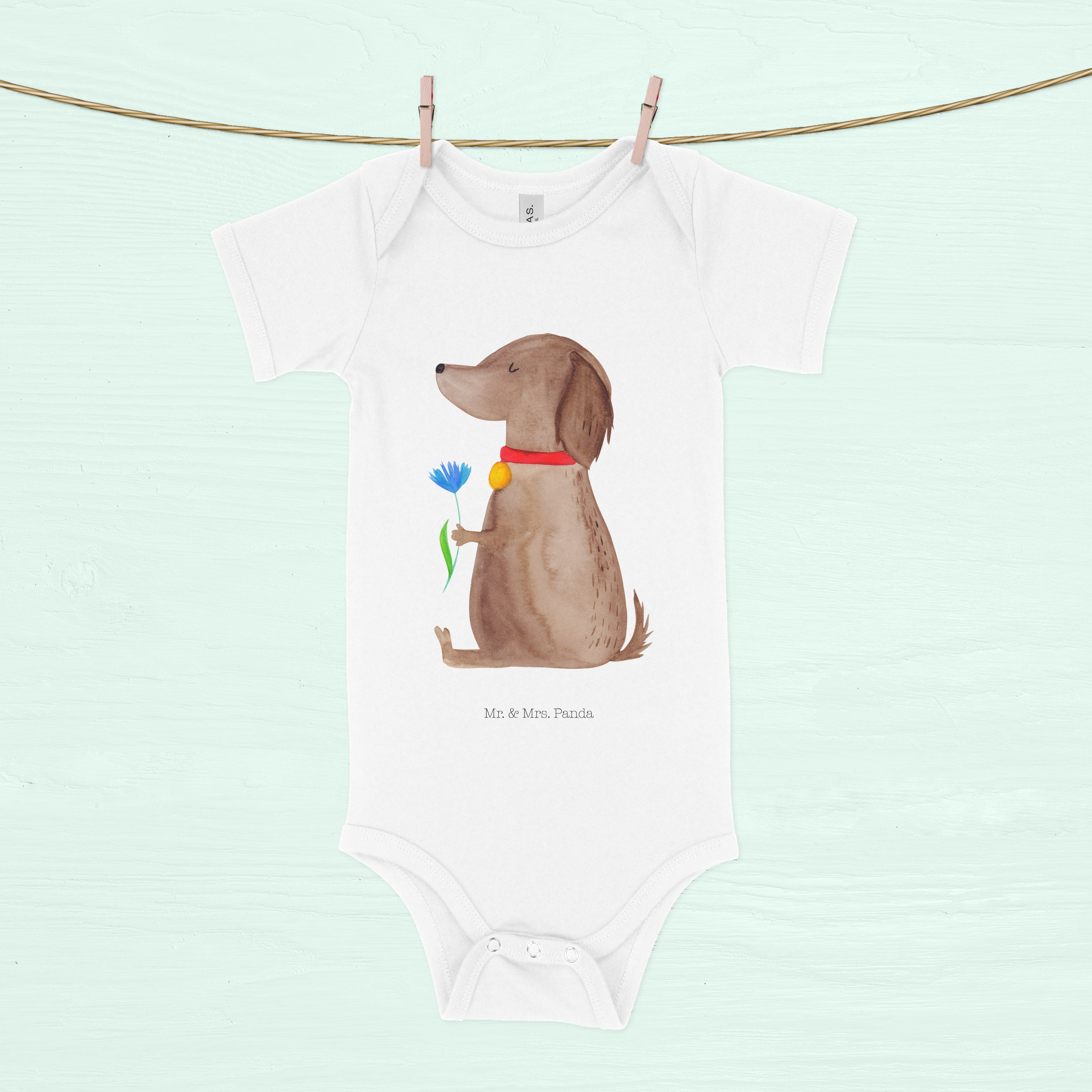Organic Baby Body Hund Blume - 1. - 3. Monat - mit Spruch