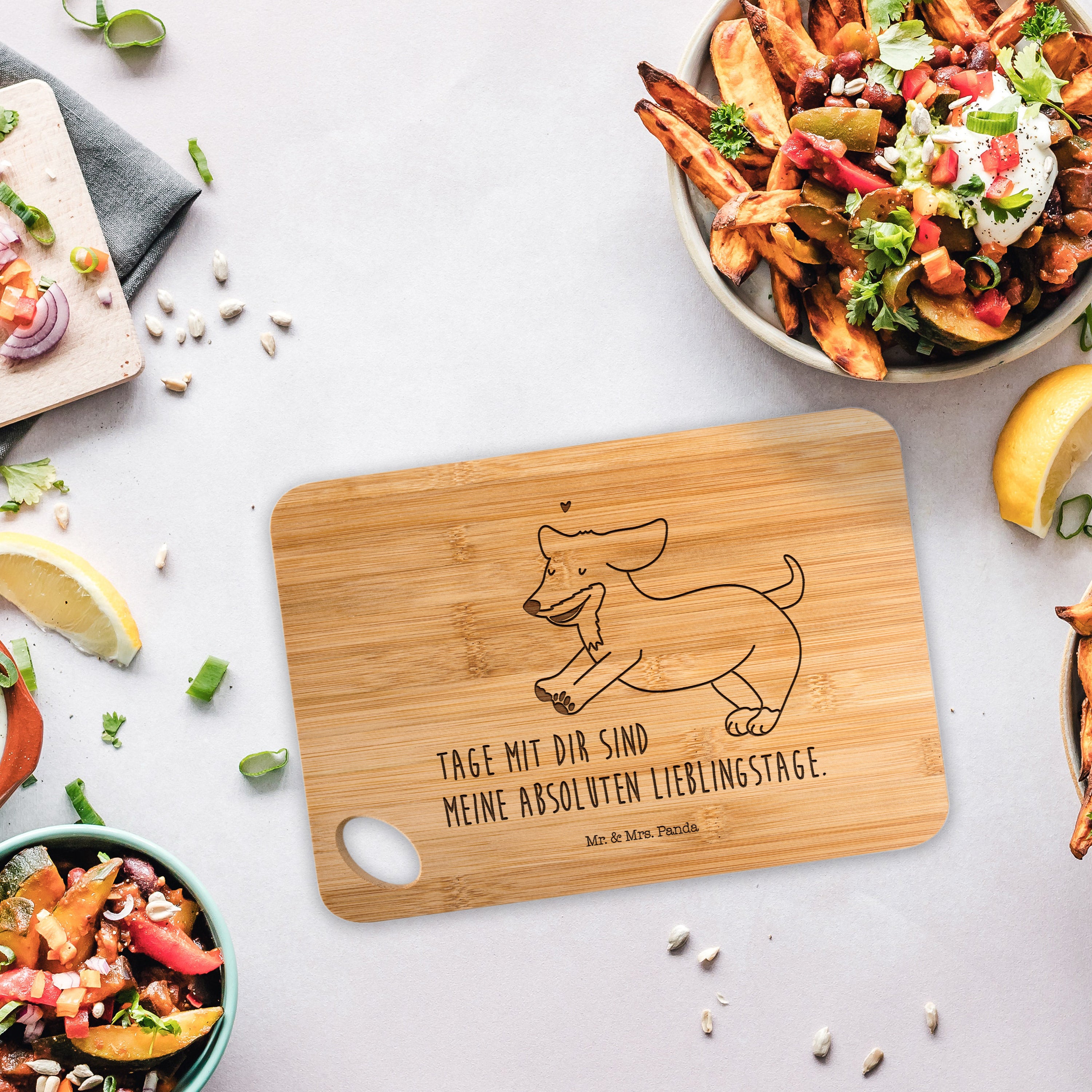 Bambus - Schneidebrett Hund Dackel fröhlich - mit Spruch