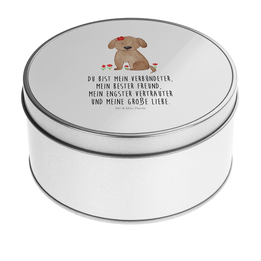Blechdose rund Hund Hundedame - mit Spruch - Weiß