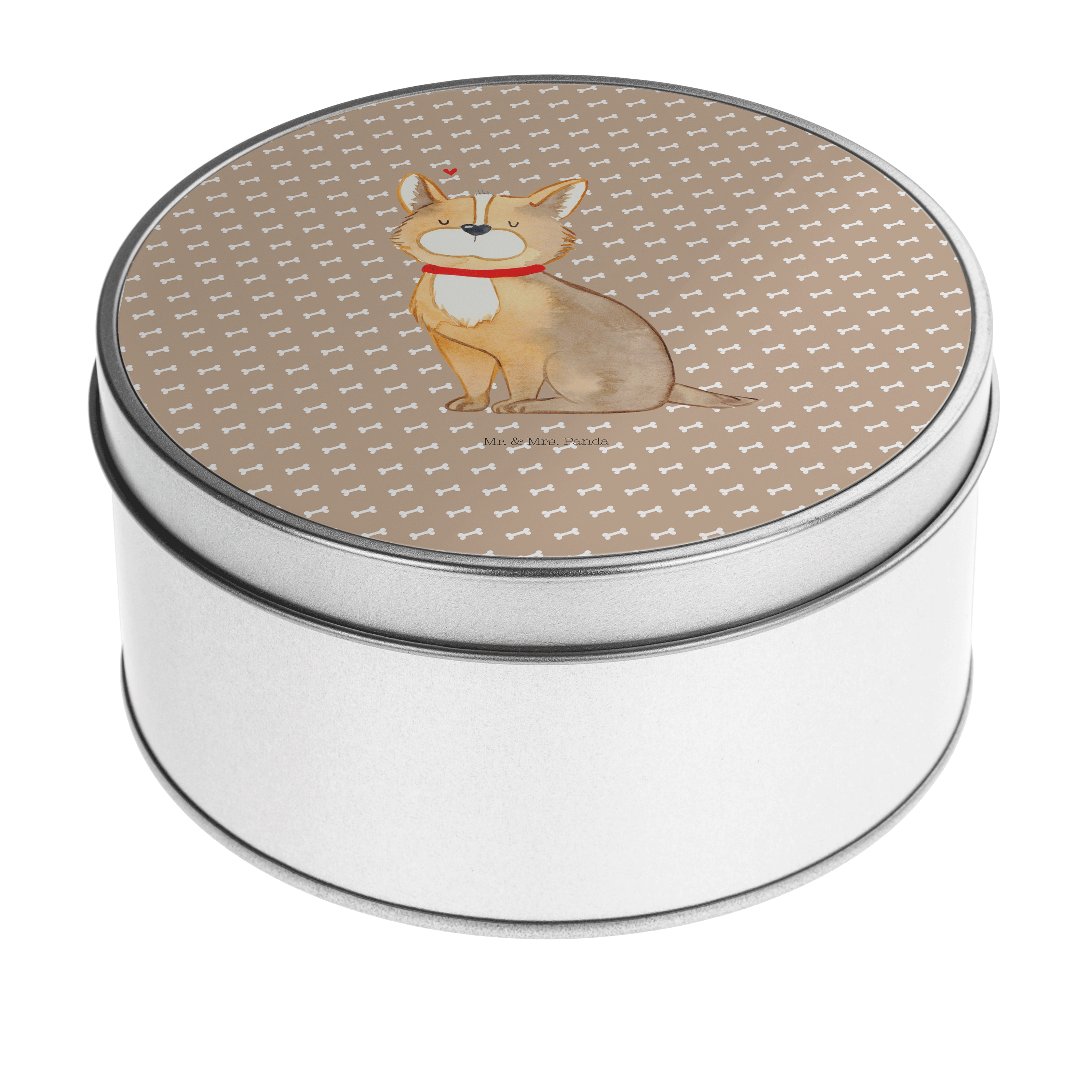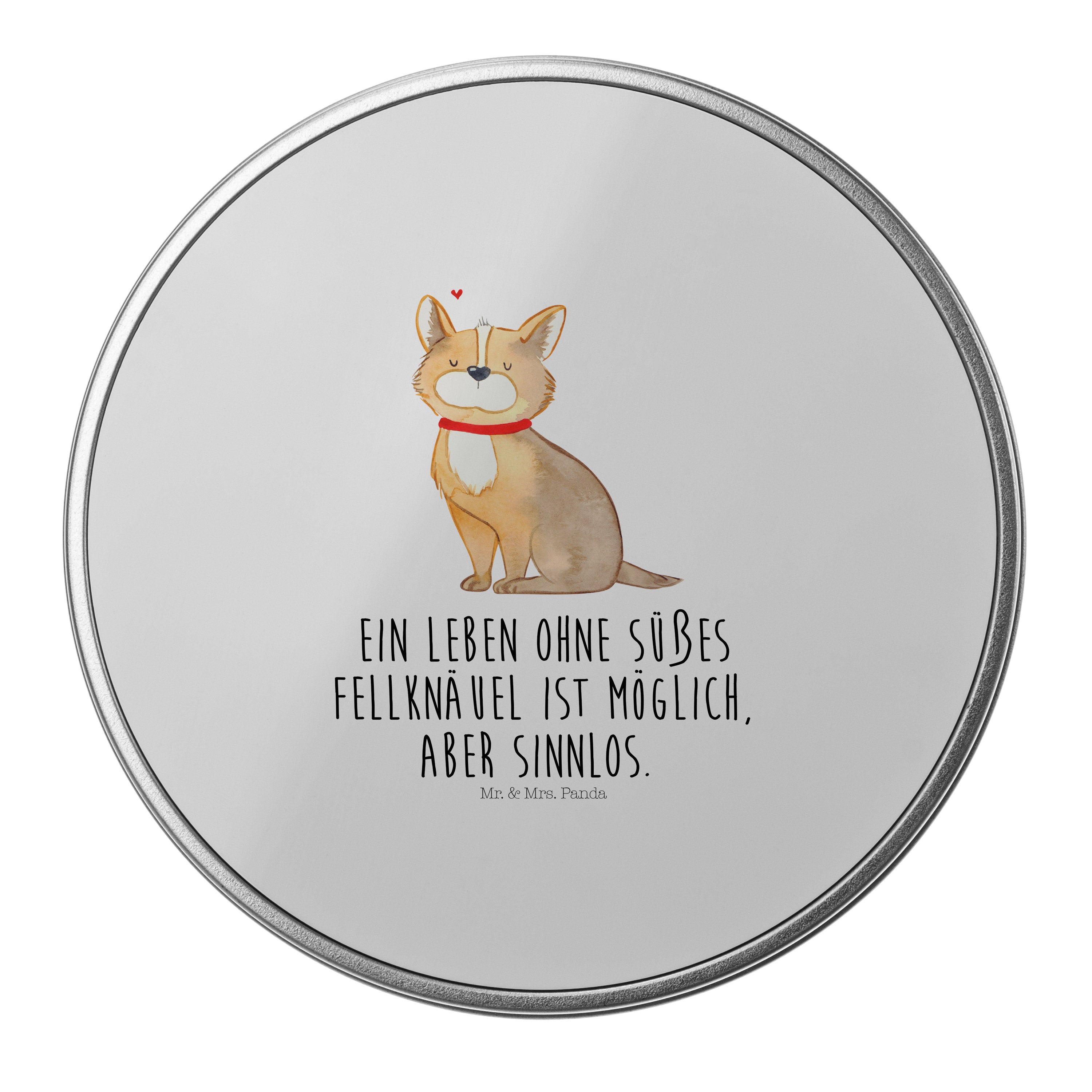 Blechdose rund Hundeglück - mit Spruch - Weiß