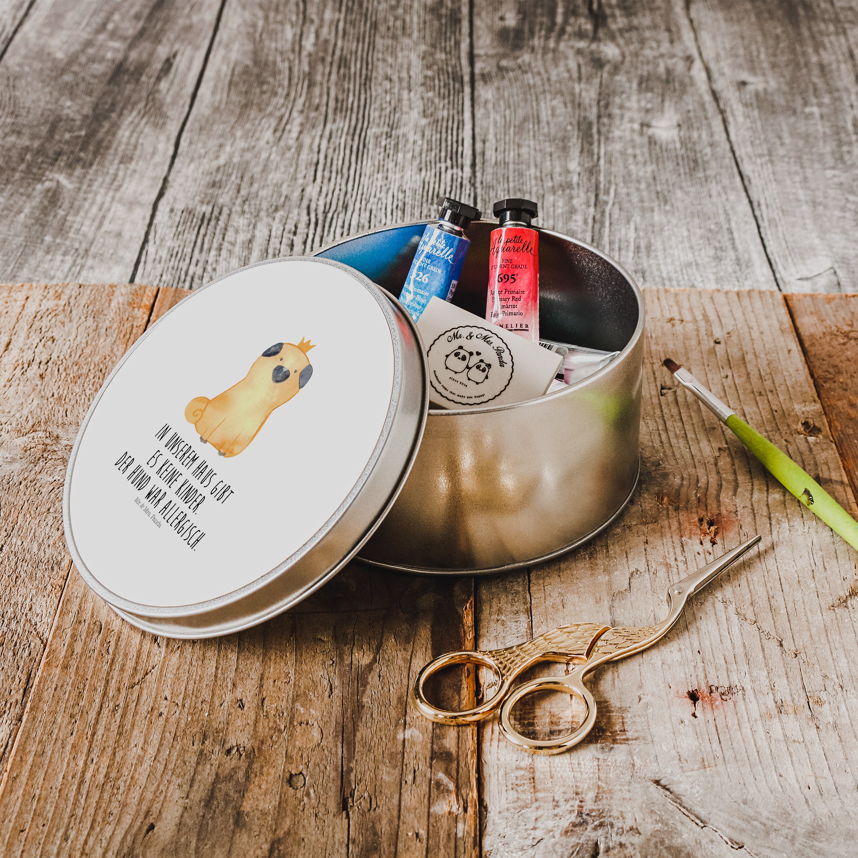 Blechdose rund Mops Krone - mit Spruch - Hundeglück
