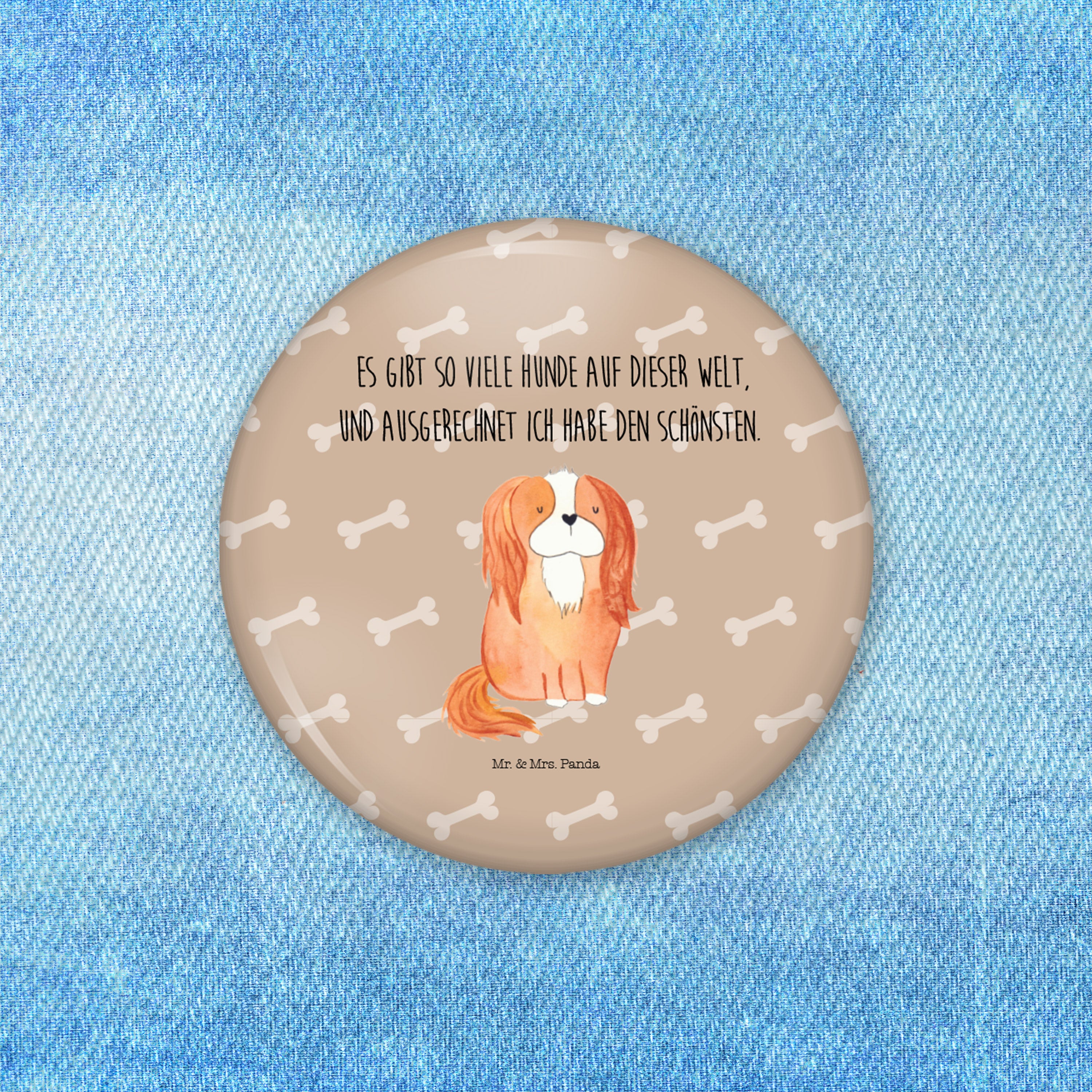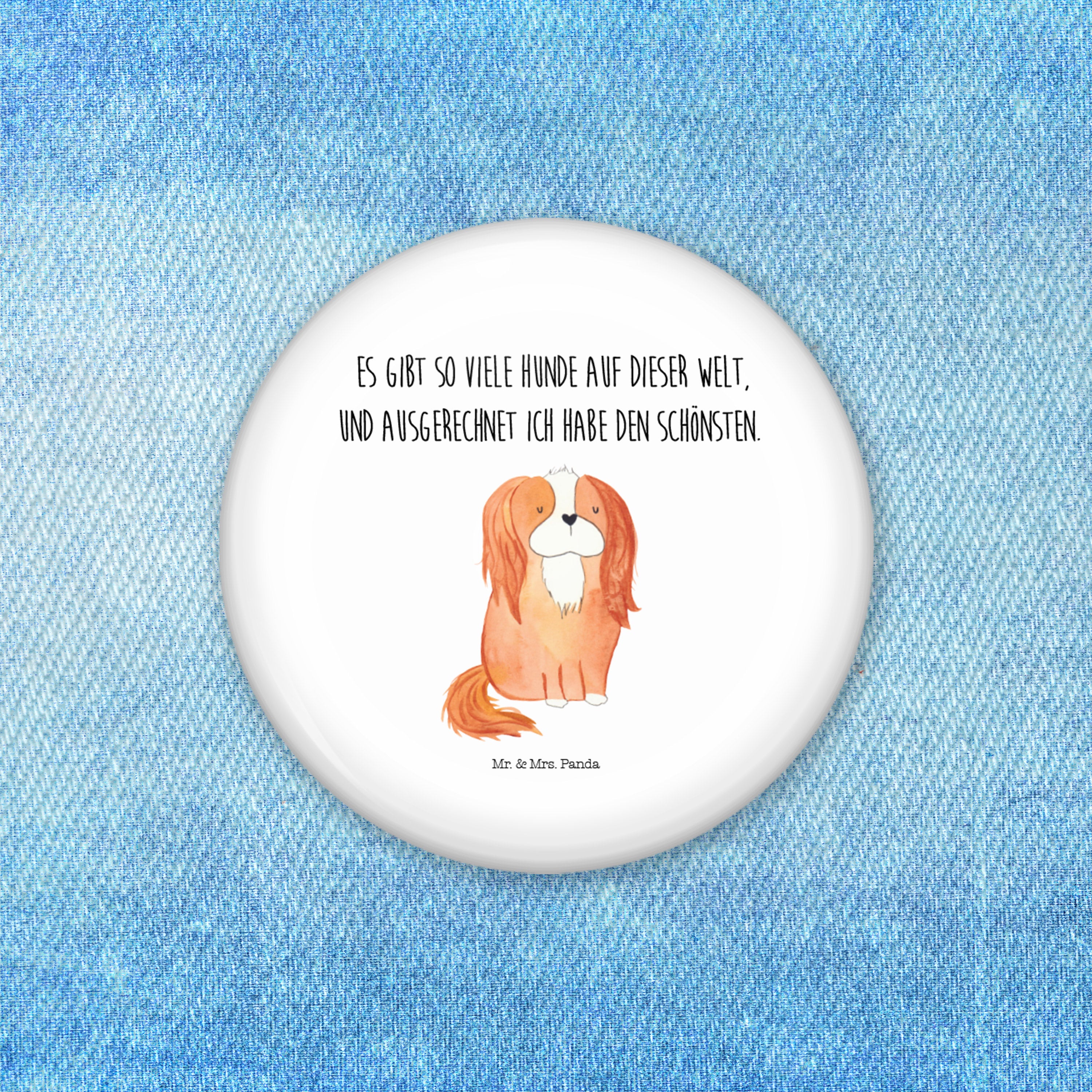 50mm Button Cavalier King Charles Spaniel - mit Spruch - Weiß