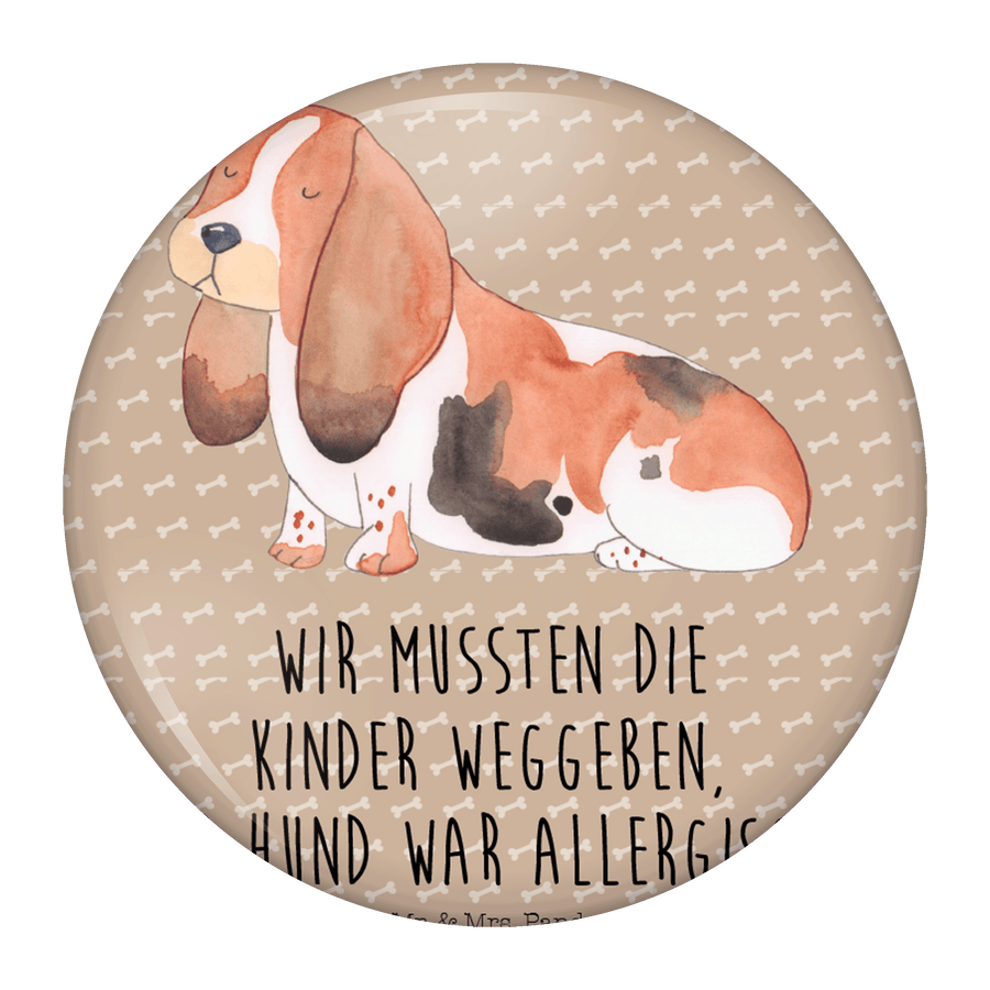 50mm Button Hund Basset Hound - mit Spruch - Hundeglück