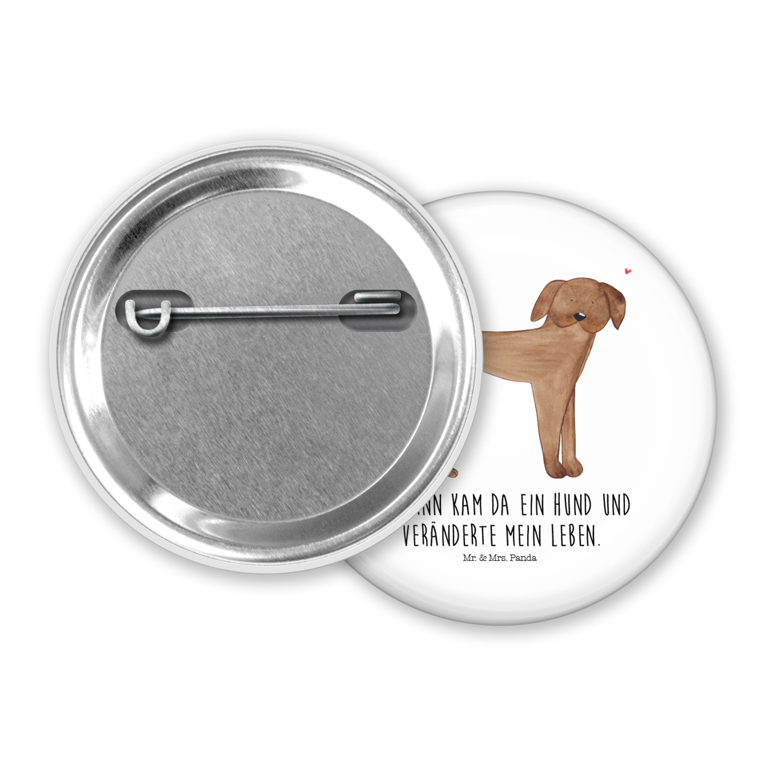 50mm Button Hund Dogge - mit Spruch - Weiß