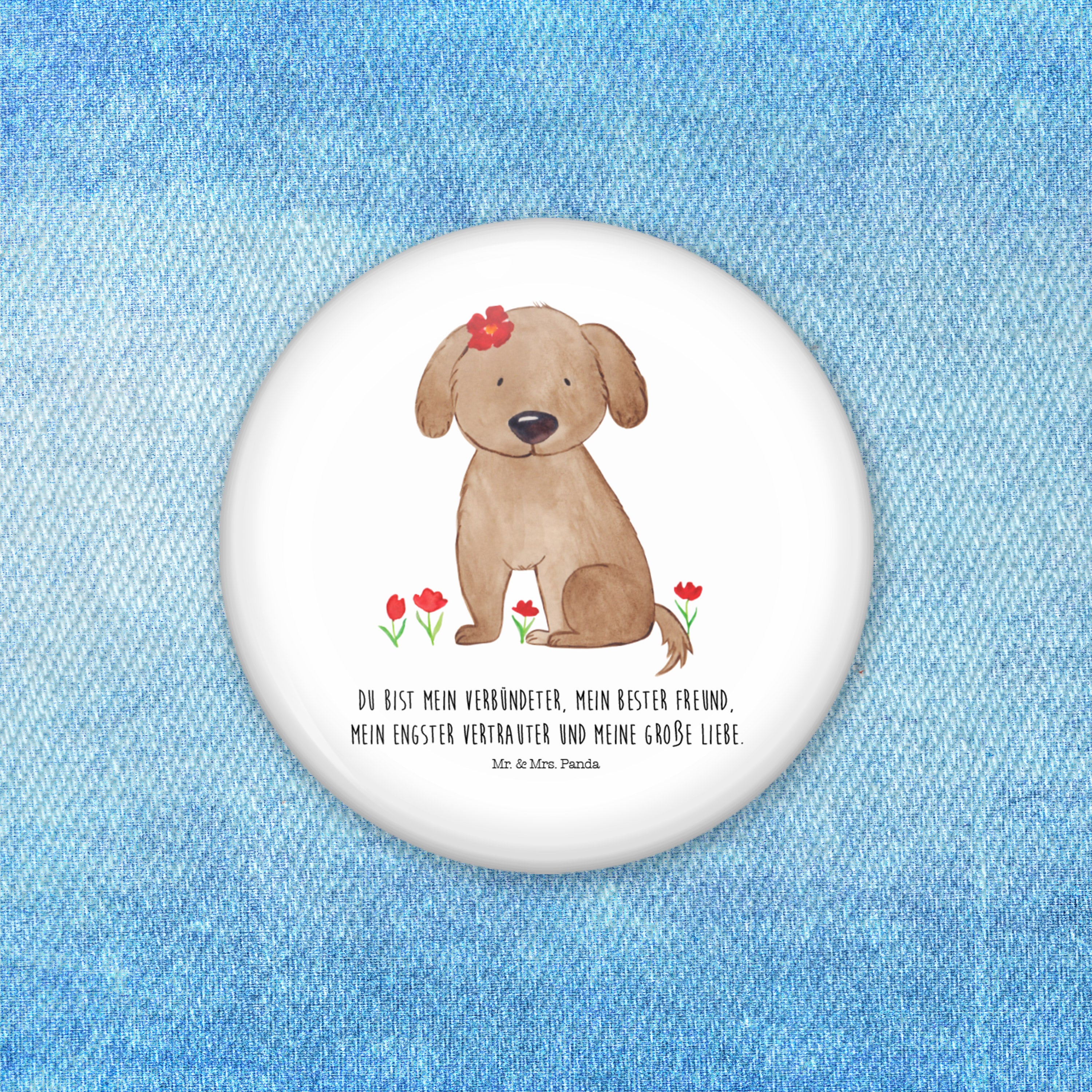 50mm Button Hund Hundedame - mit Spruch - Weiß