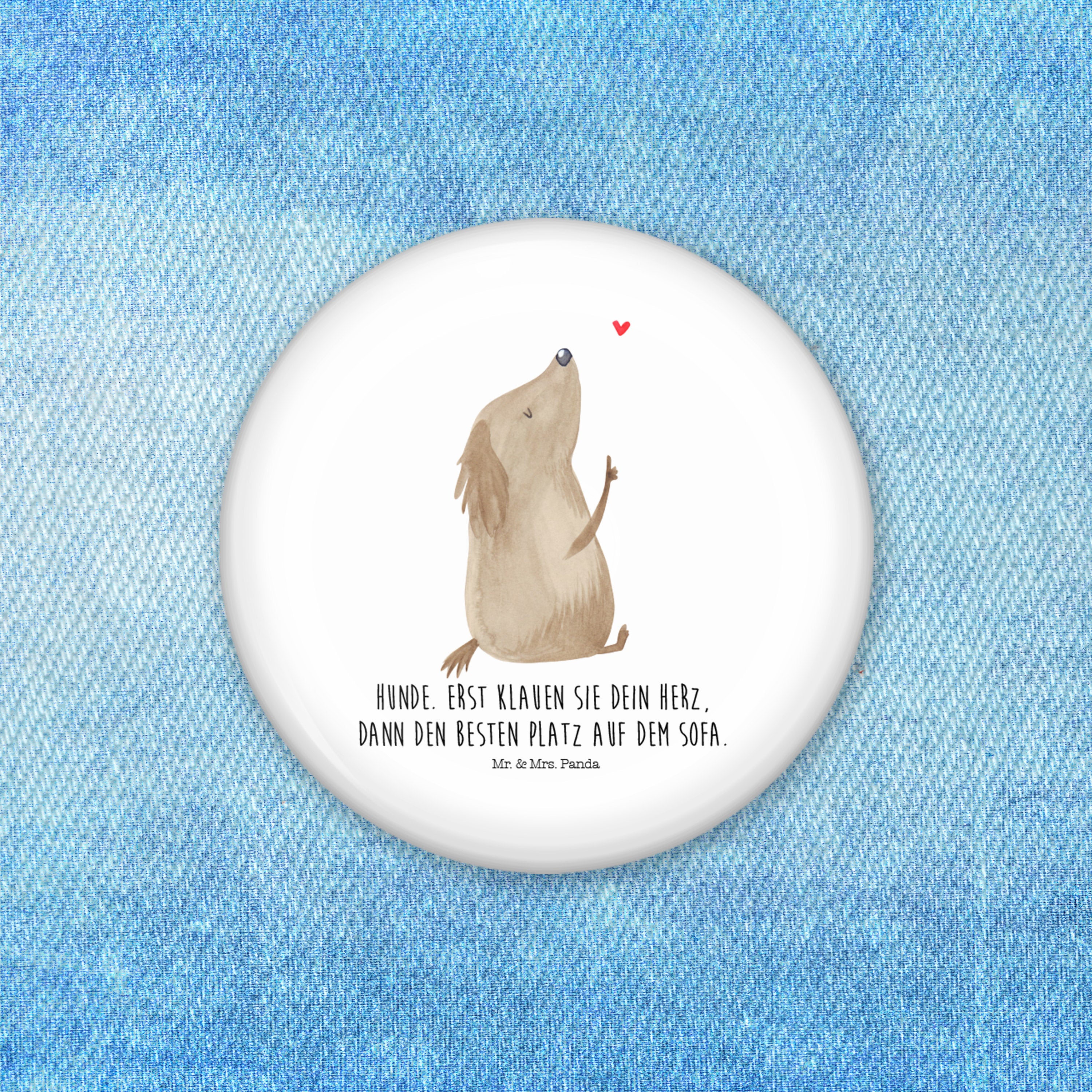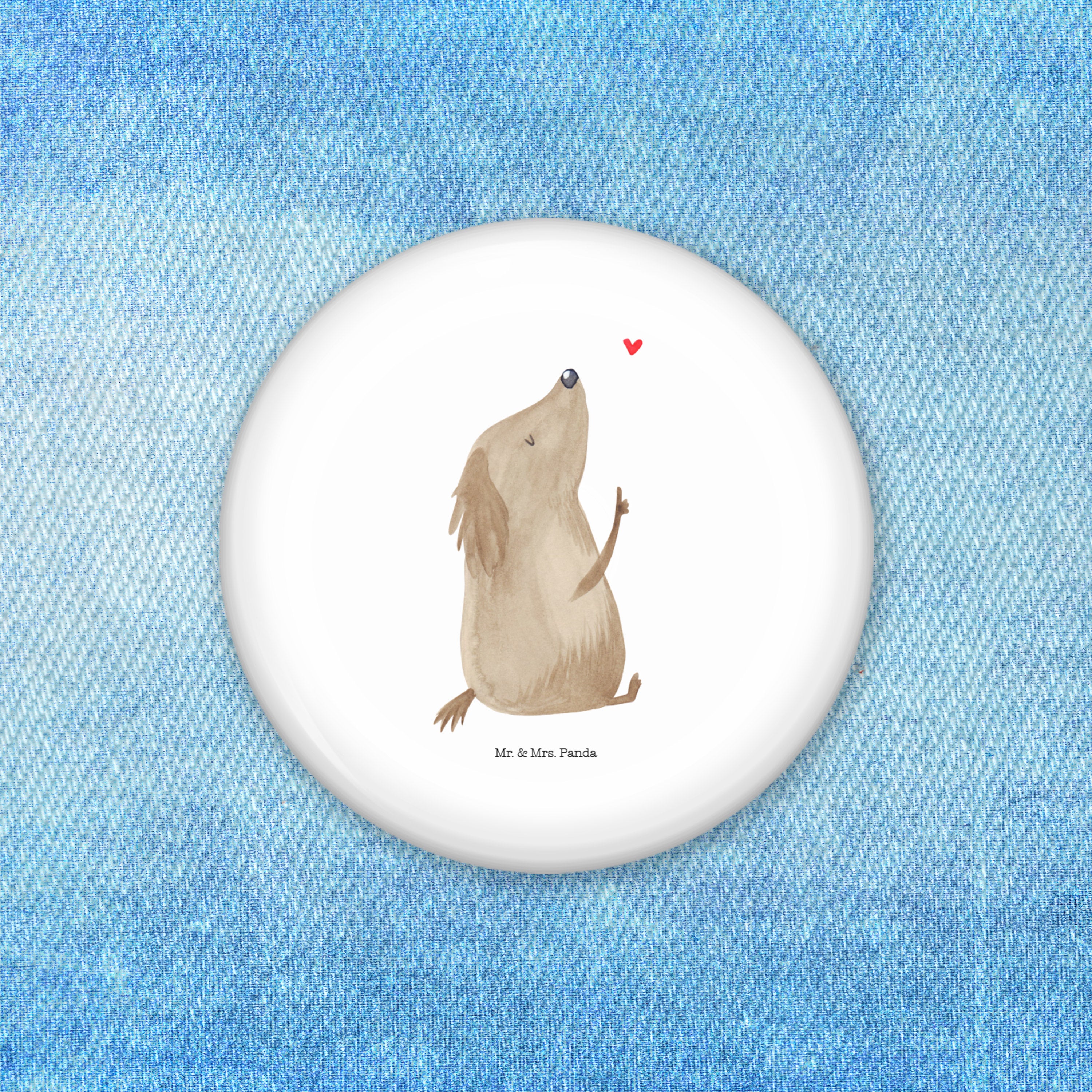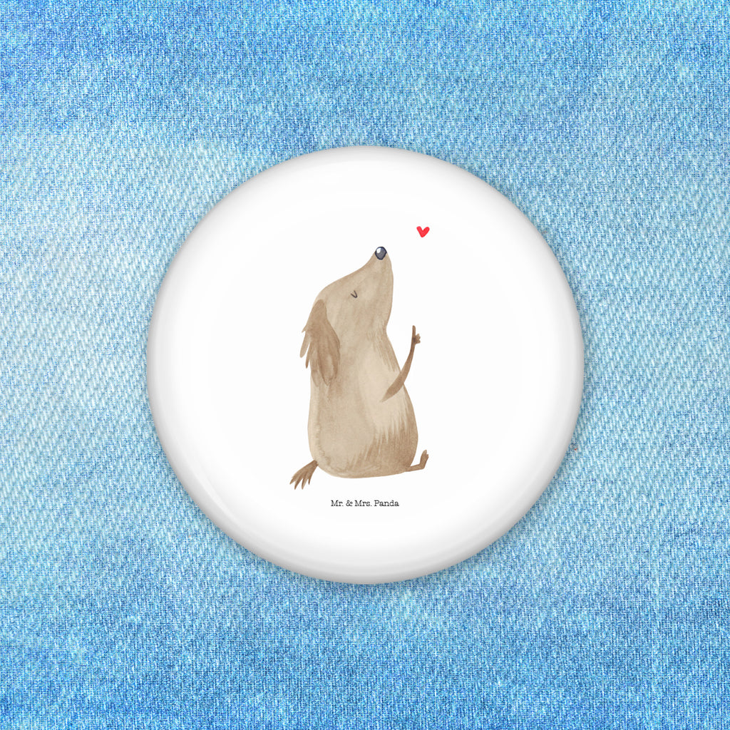 50mm Button Hund Liebe - mit Spruch - Weiß