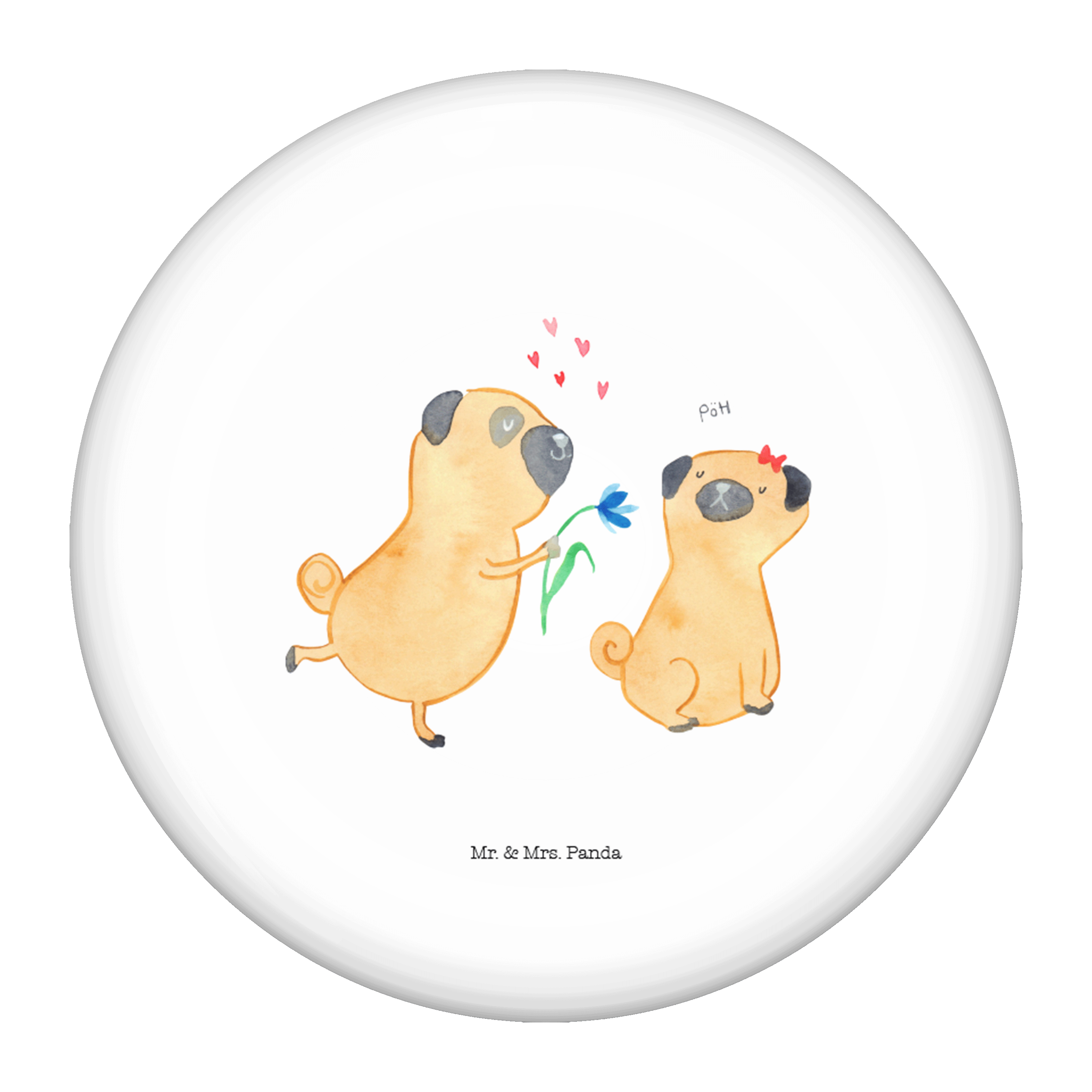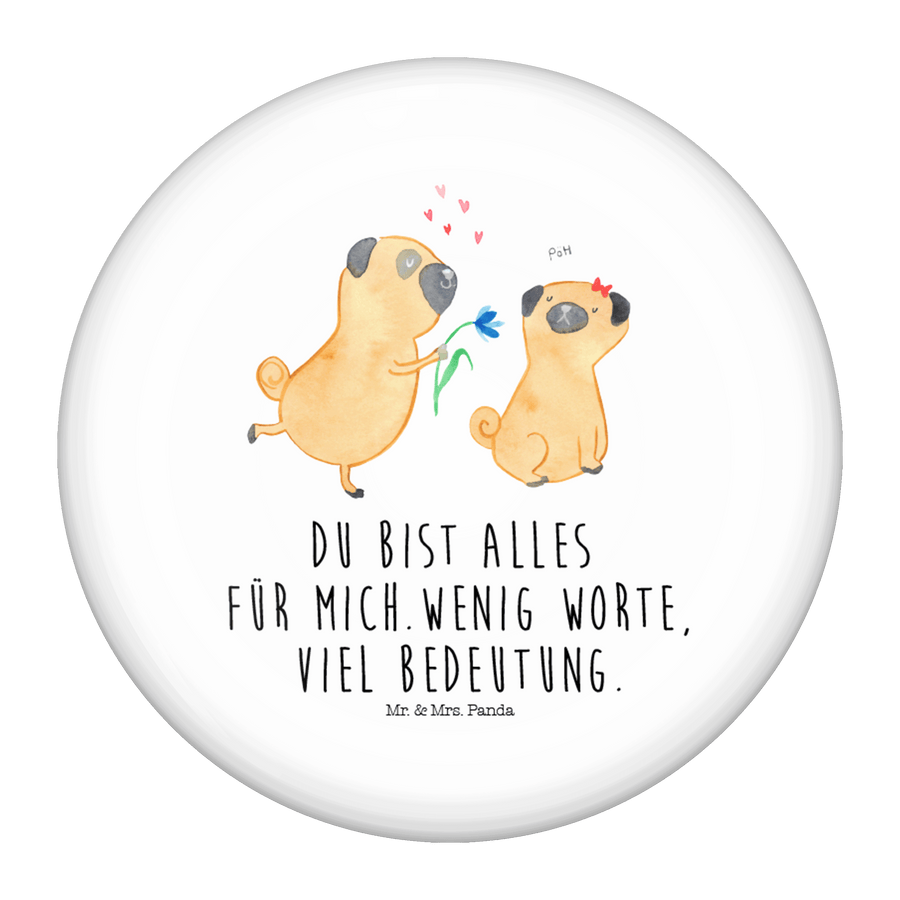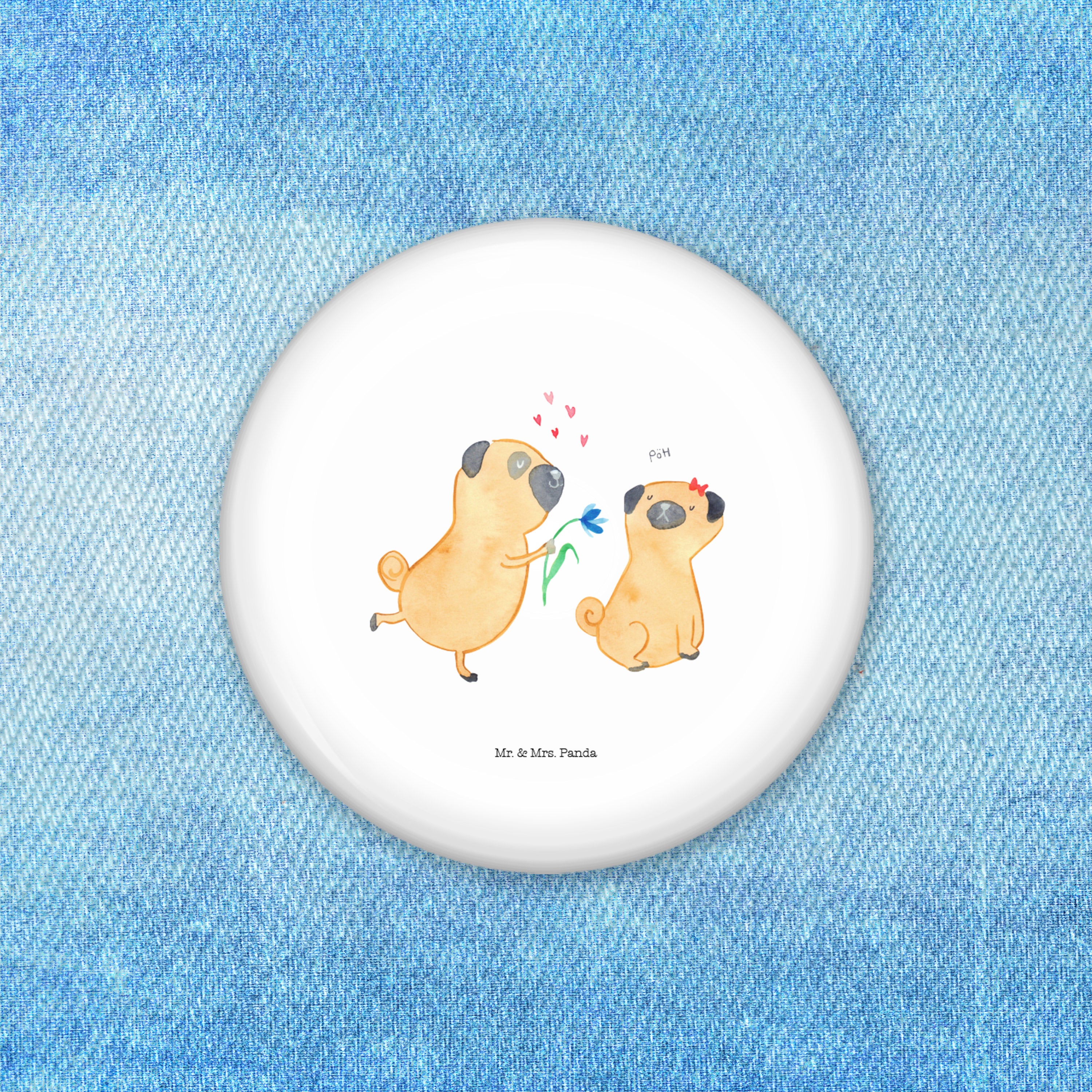 50mm Button Mops verliebt - mit Spruch - Weiß