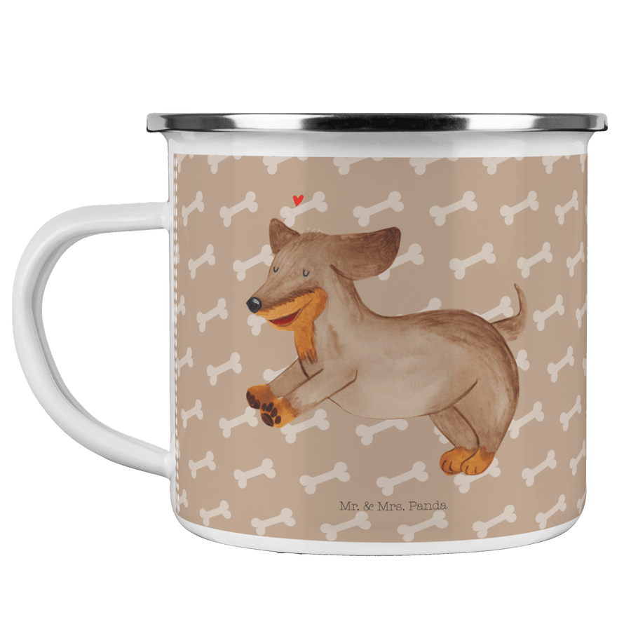 Camping Emaille Tasse Hund Dackel fröhlich - ohne Spruch - Hundeglück