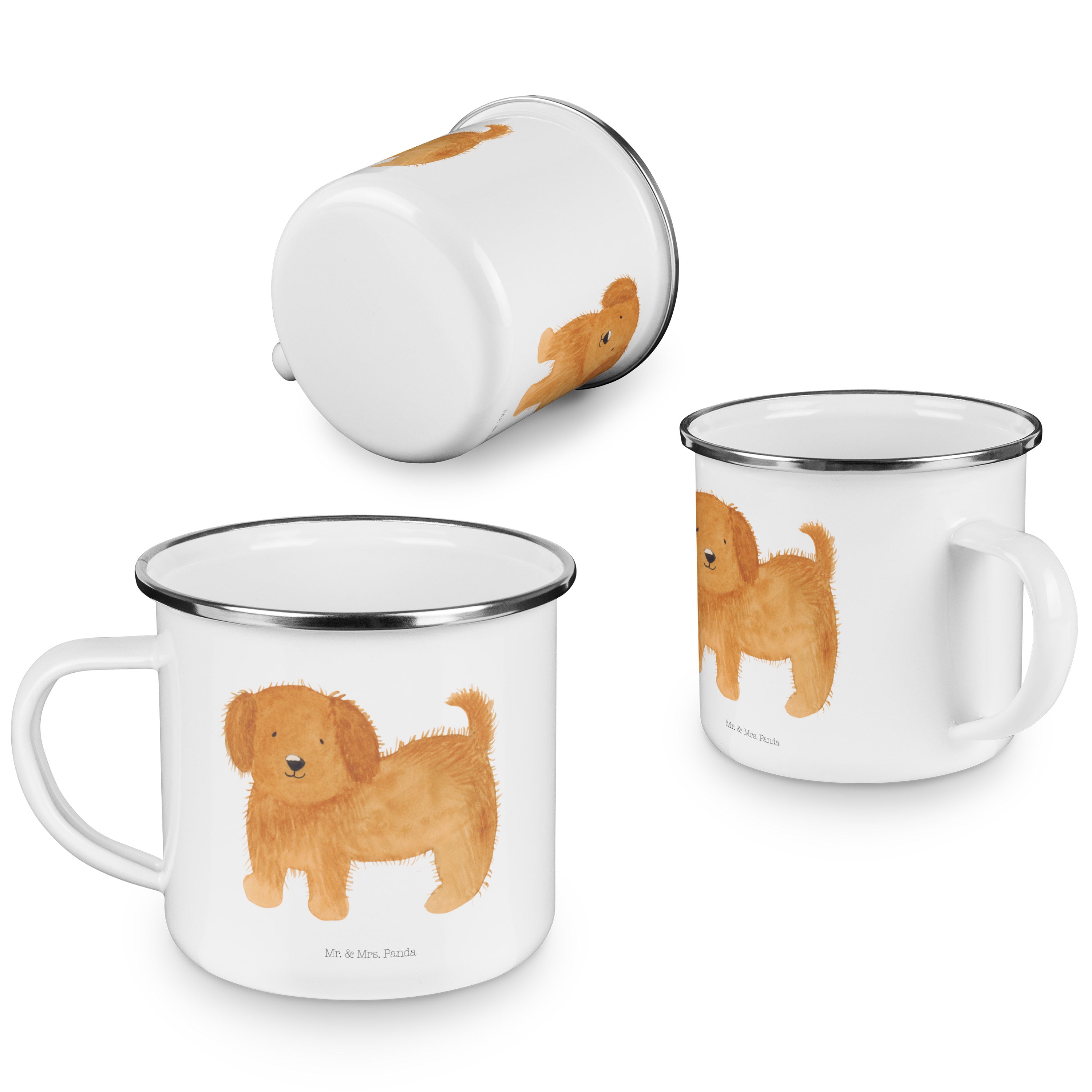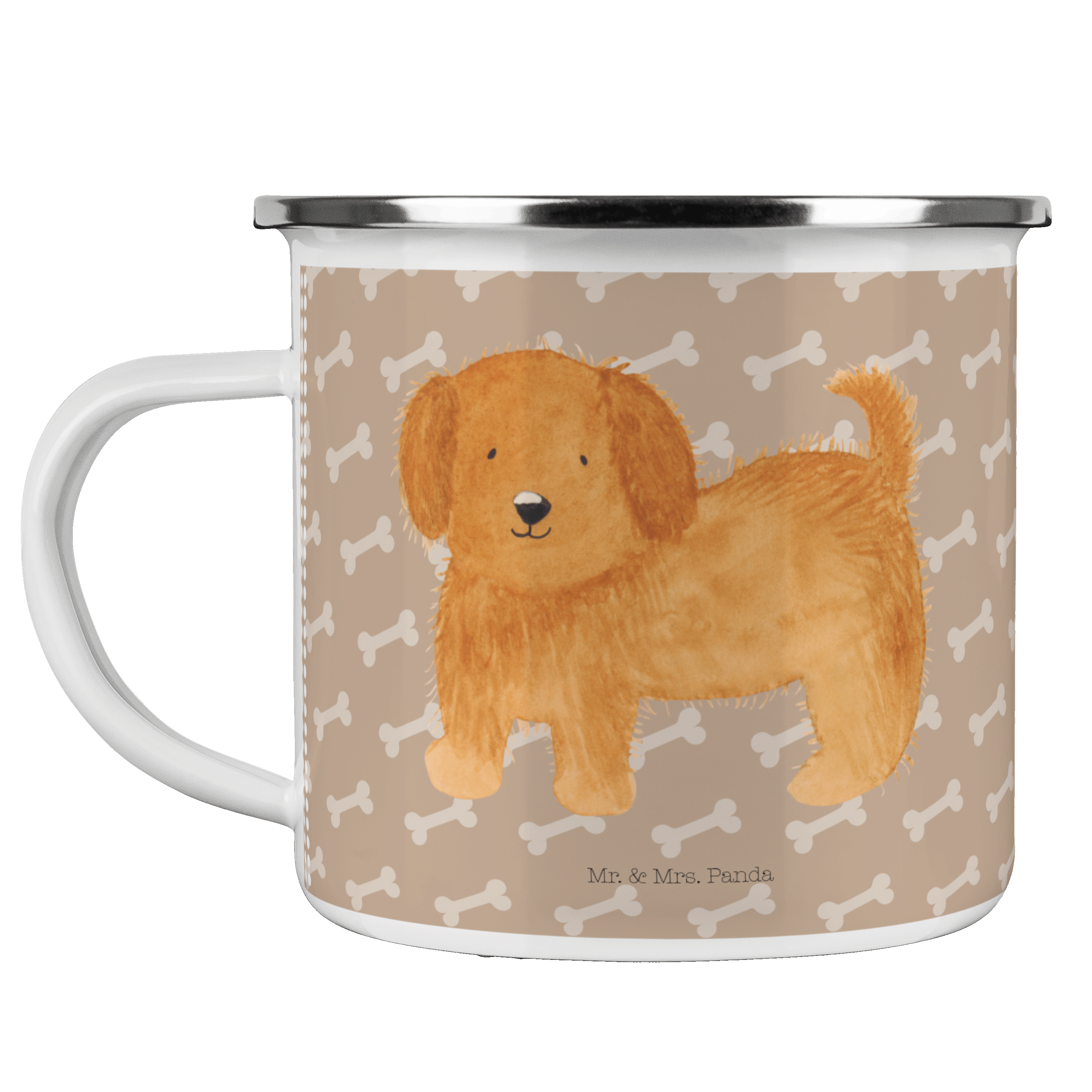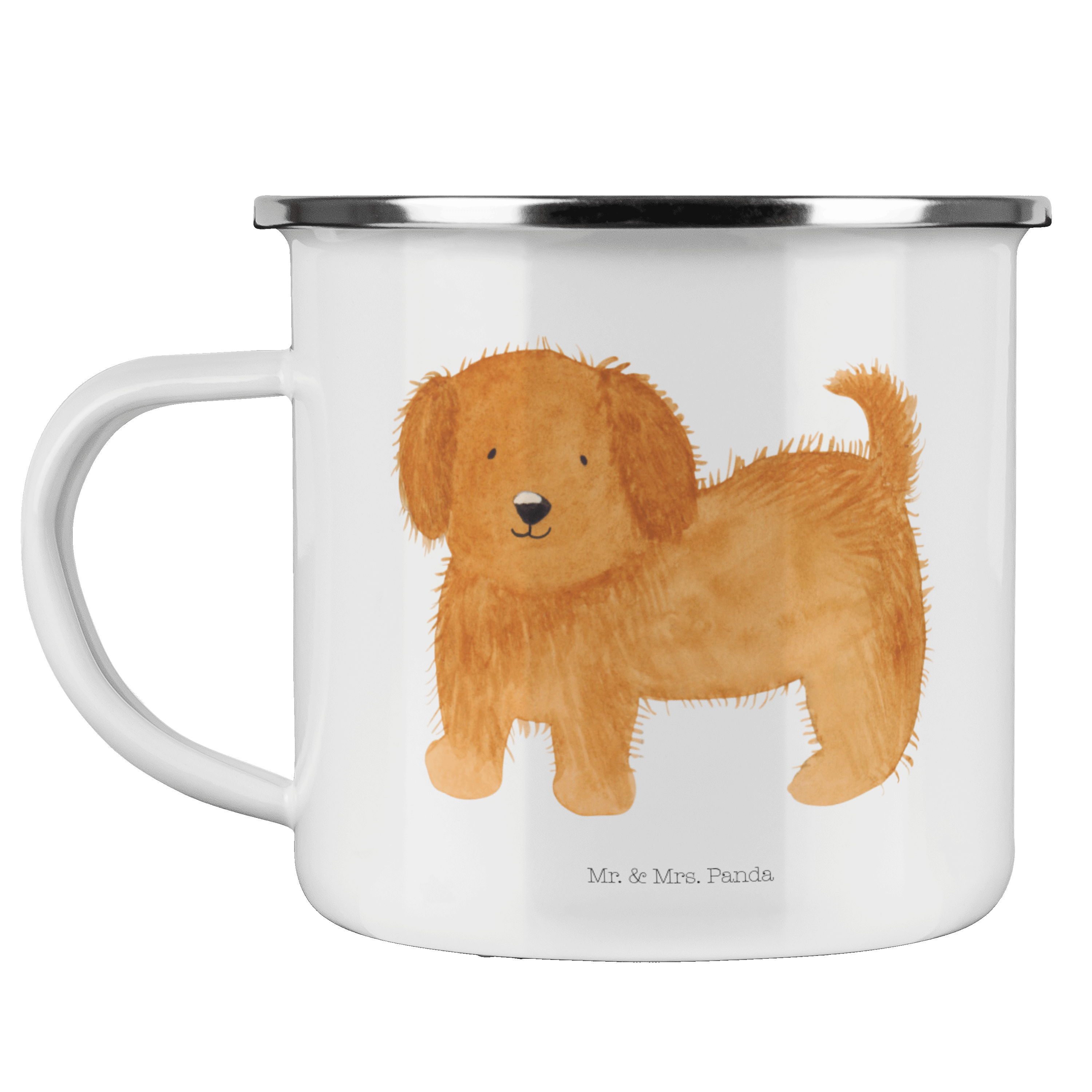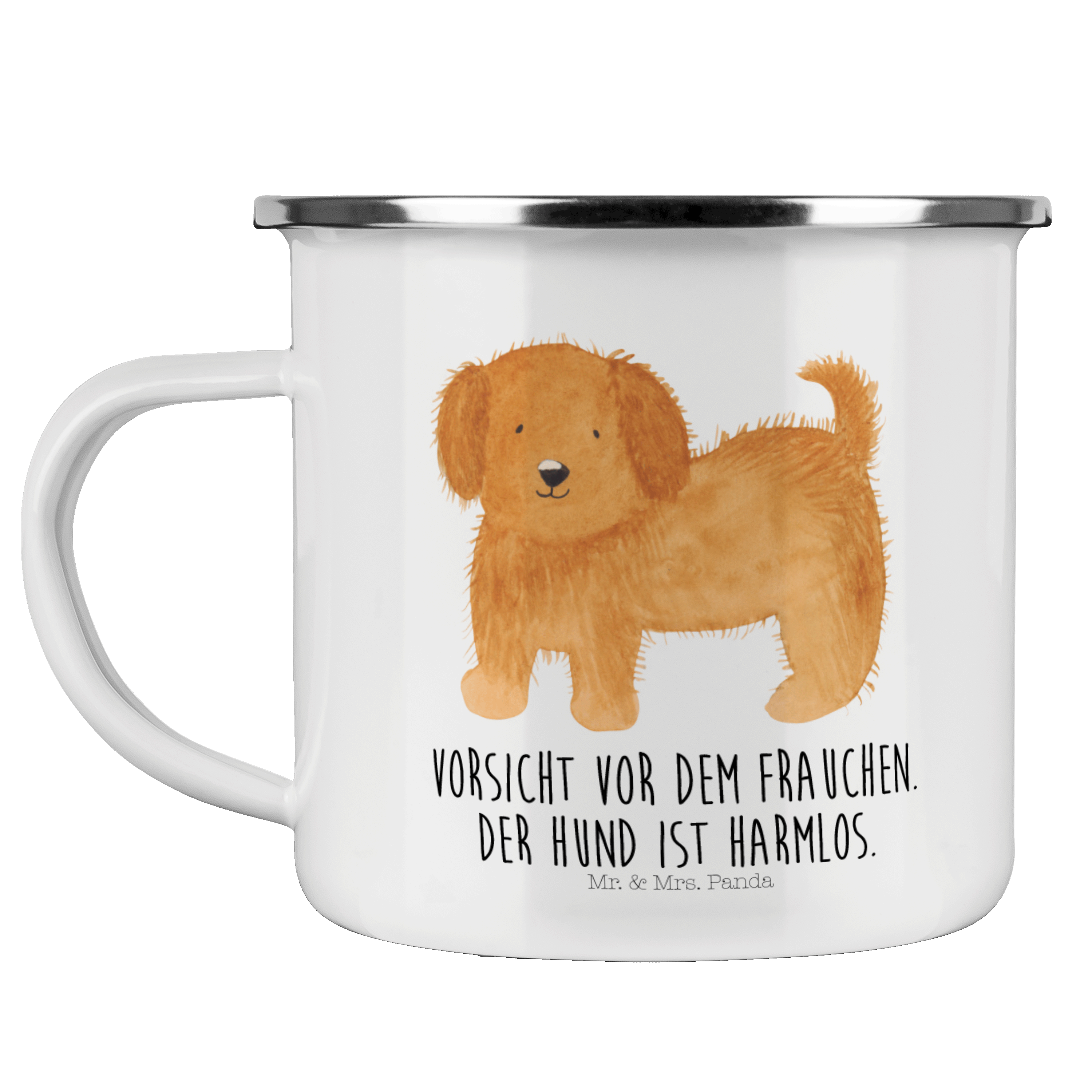 Camping Emaille Tasse Hund flauschig - mit Spruch - Weiß