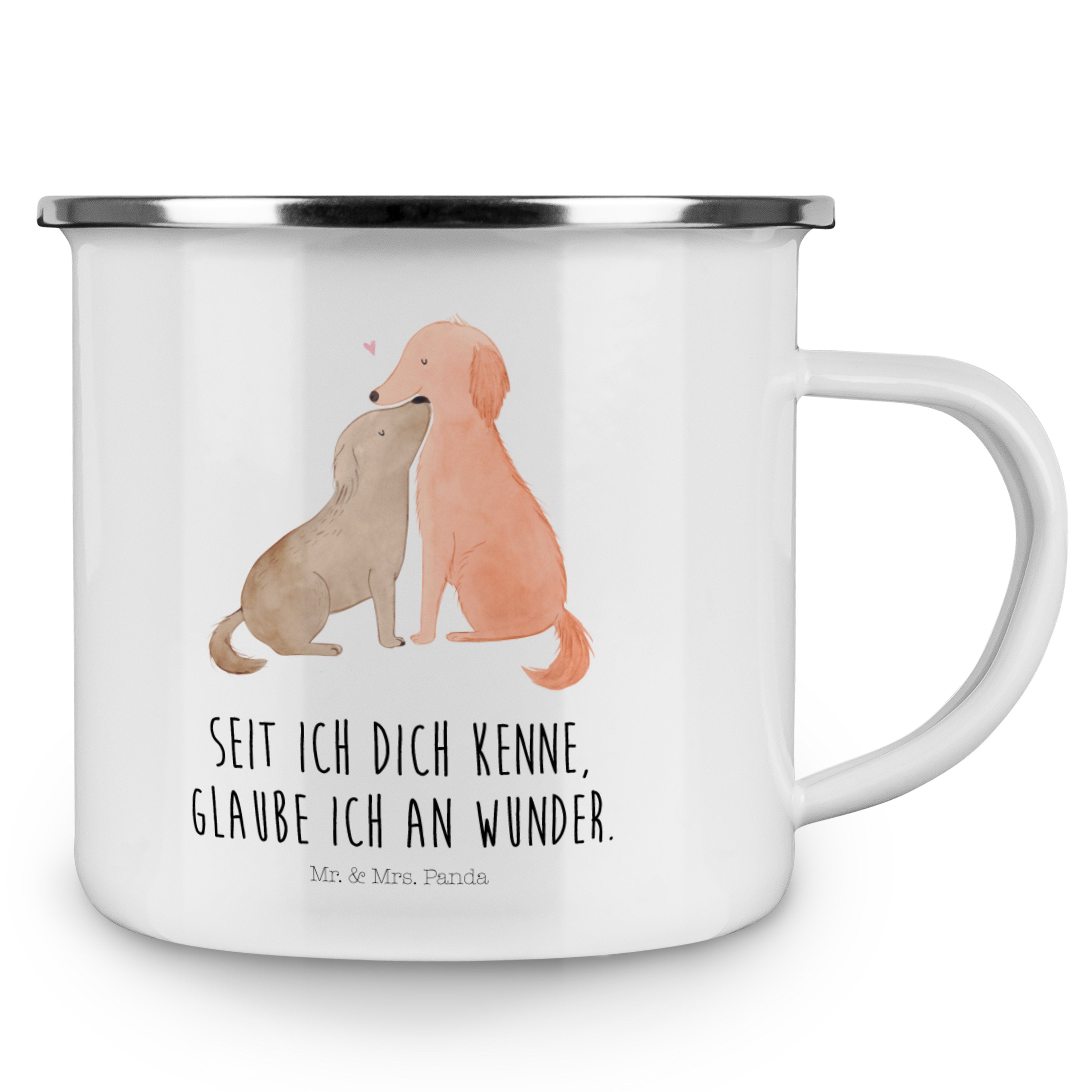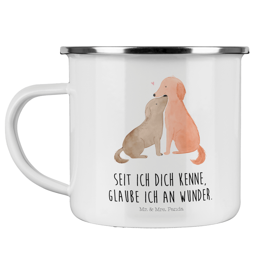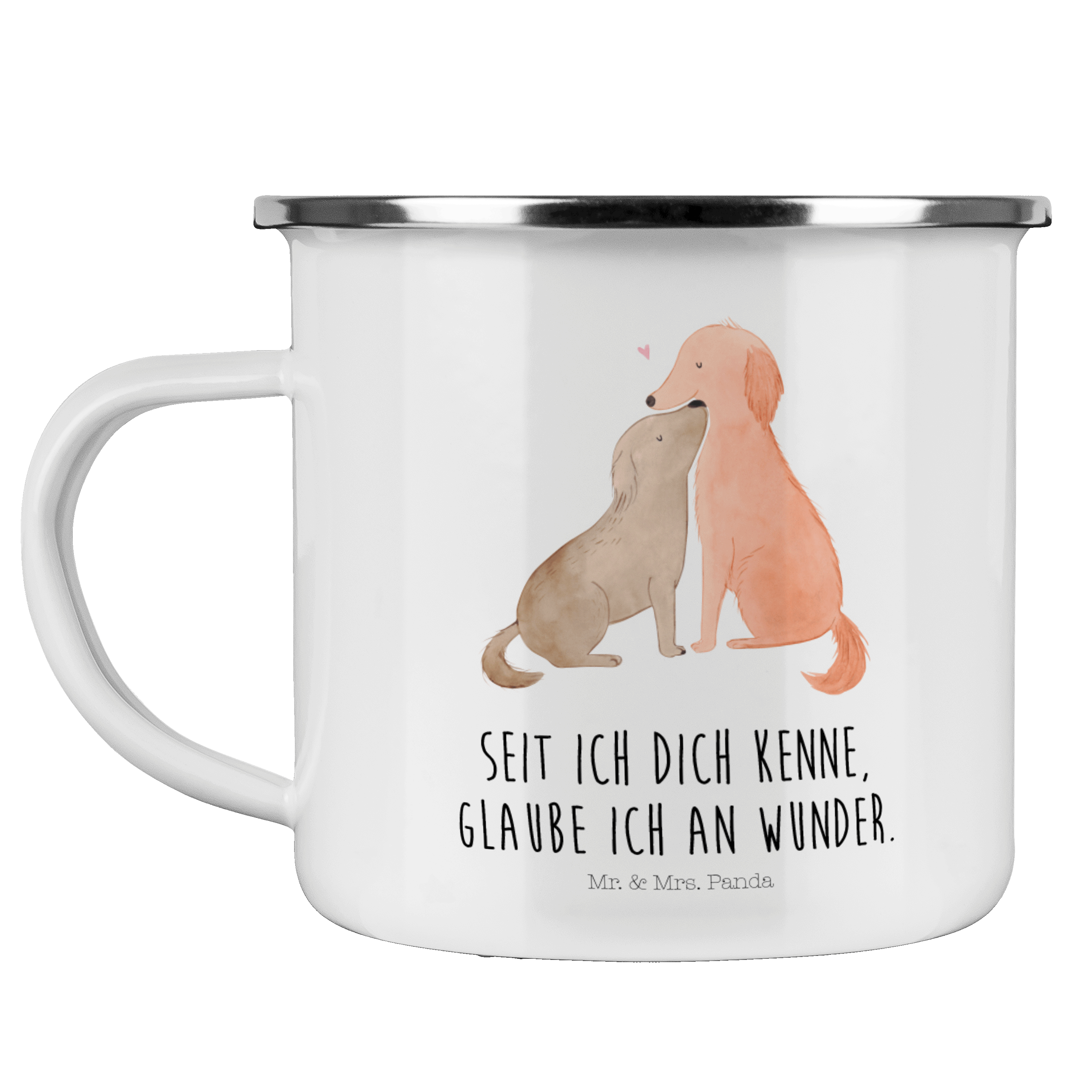 Camping Emaille Tasse Hunde Liebe - mit Spruch - Weiß