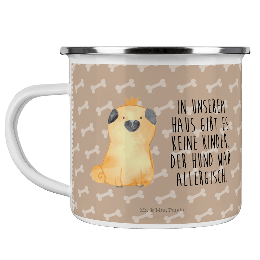 Camping Emaille Tasse Mops Krone - mit Spruch - Hundeglück