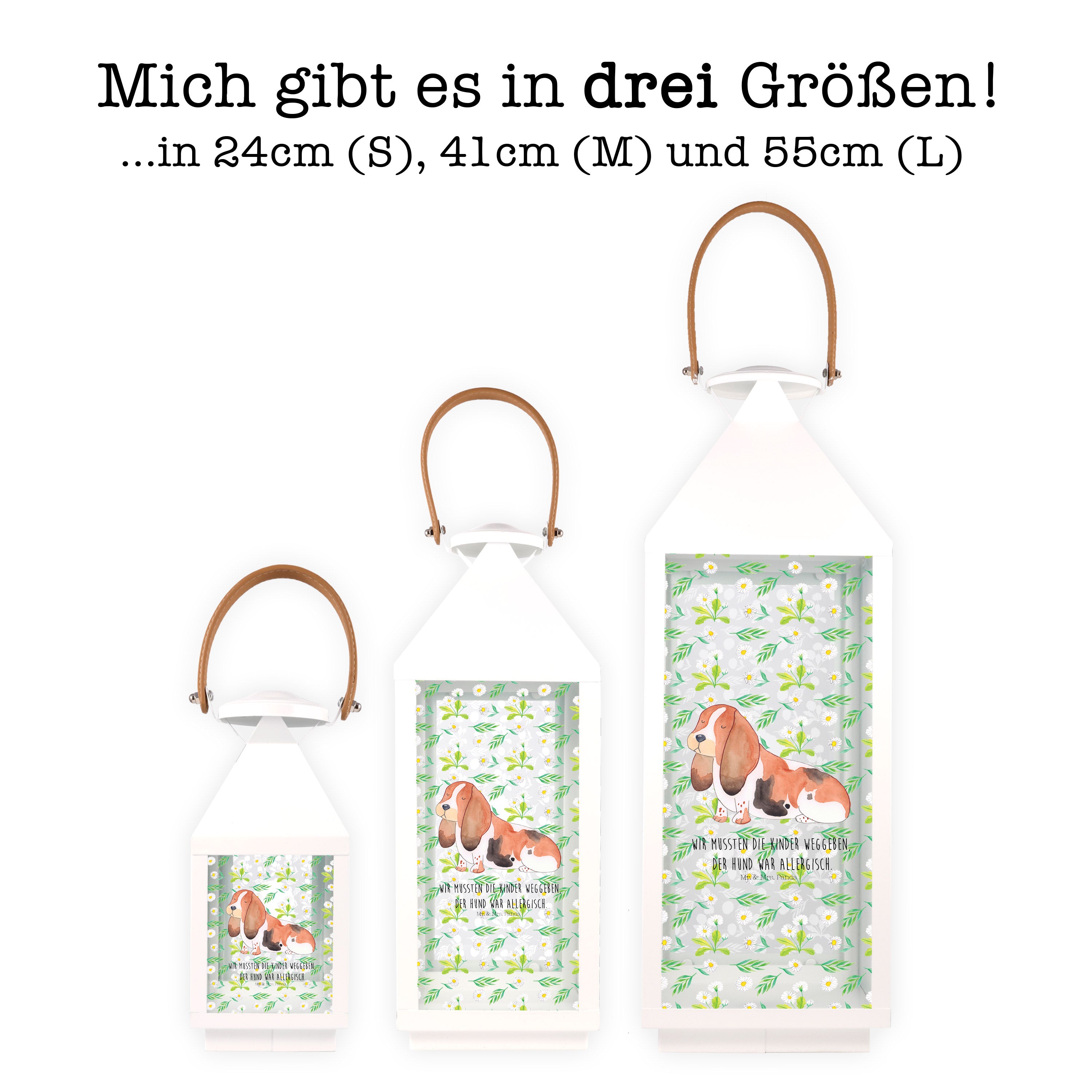 Deko Laterne Hund Basset Hound - XL - mit Spruch