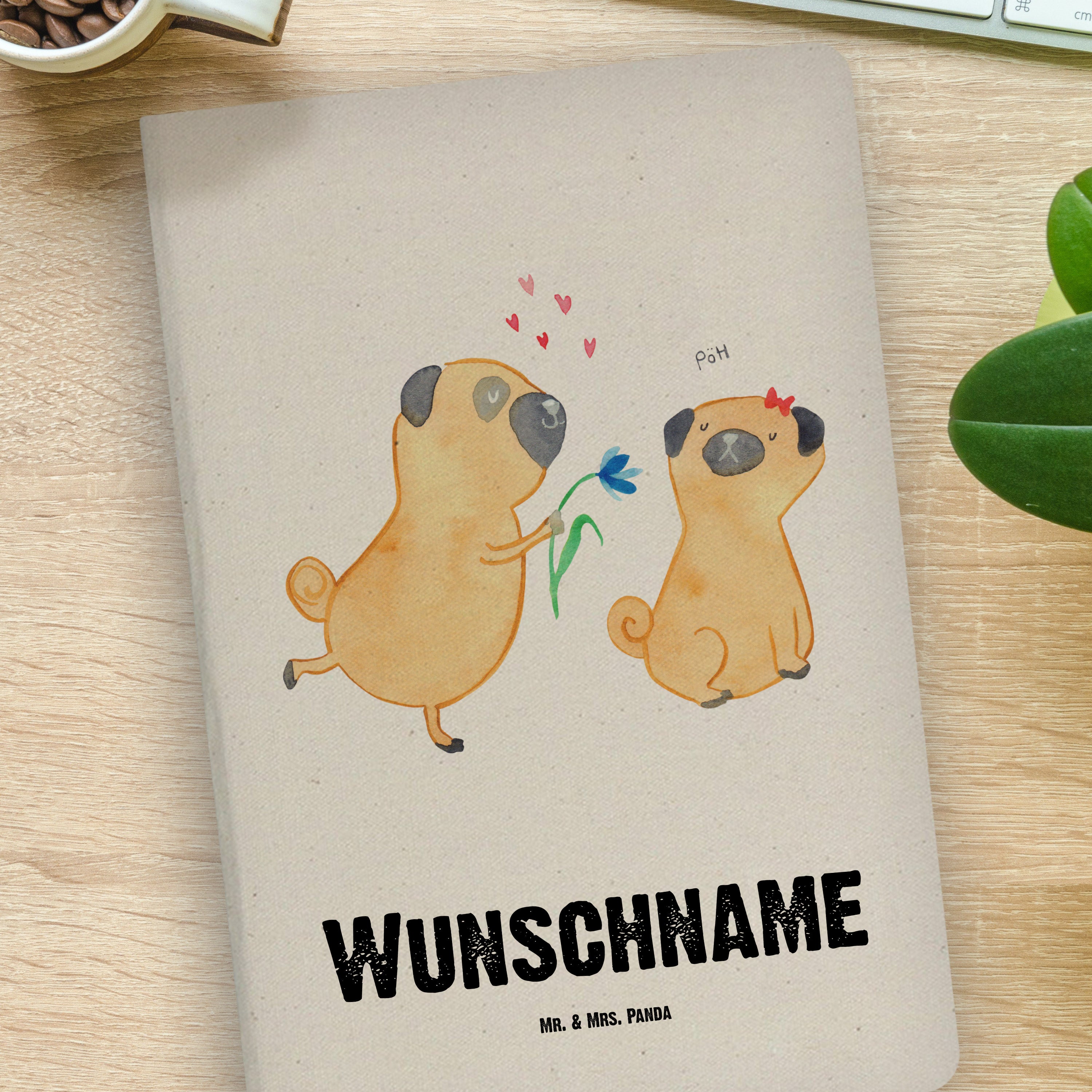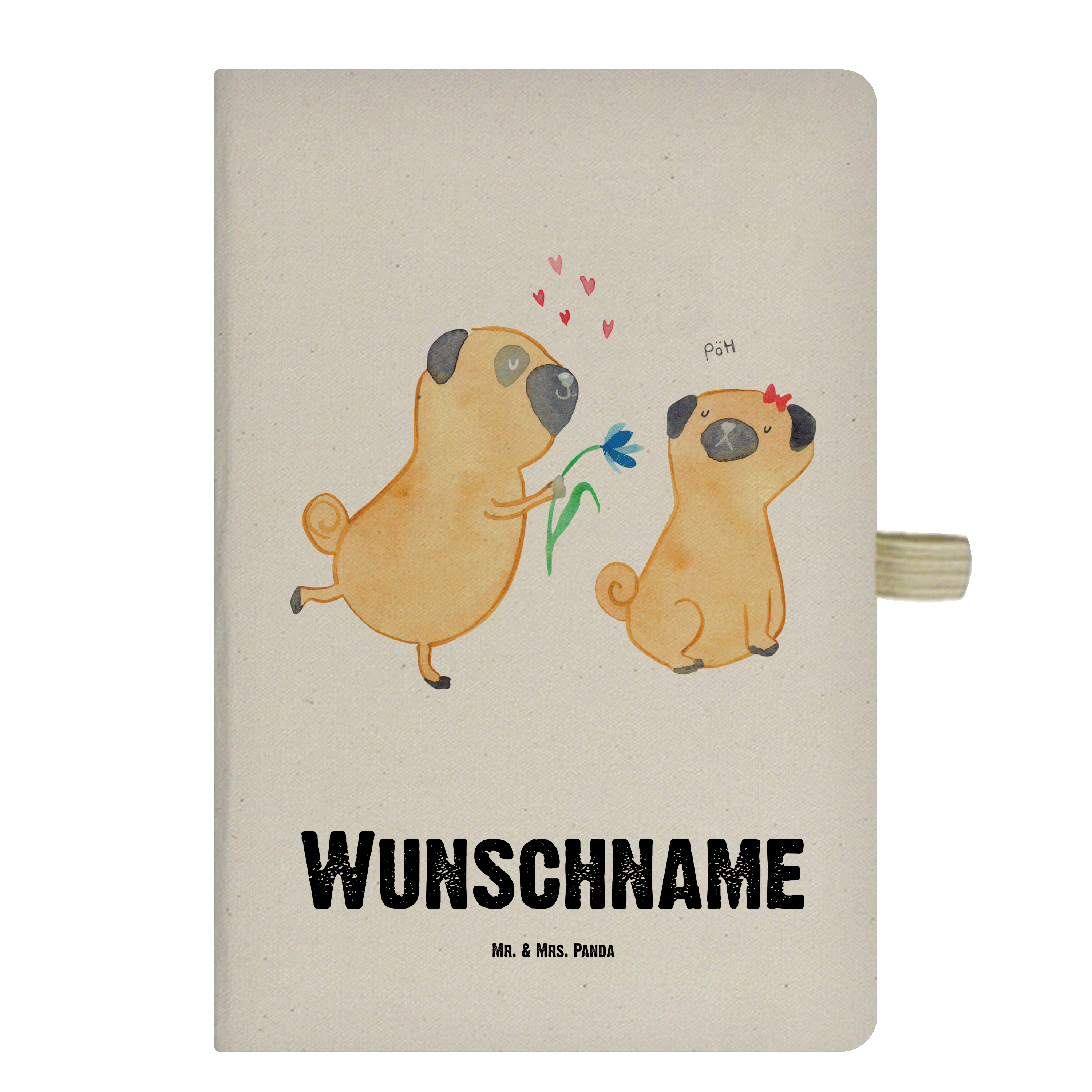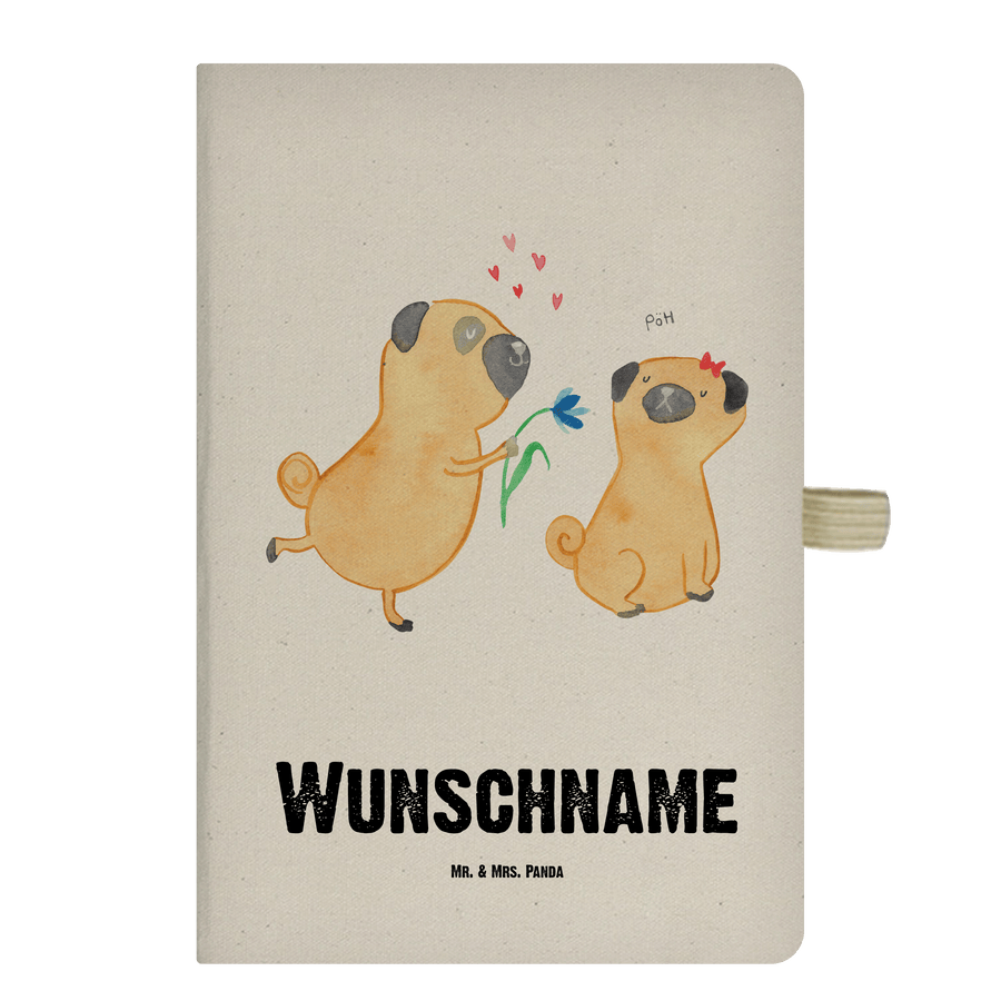DIN A4 Personalisiertes Notizbuch Mops verliebt