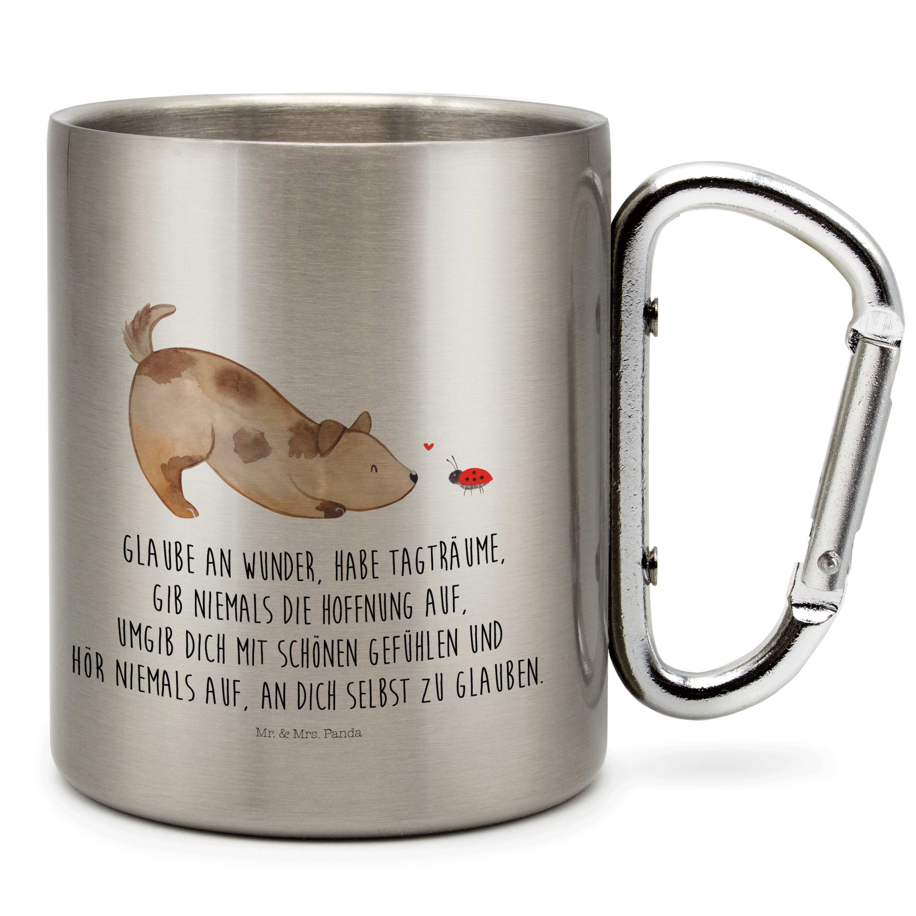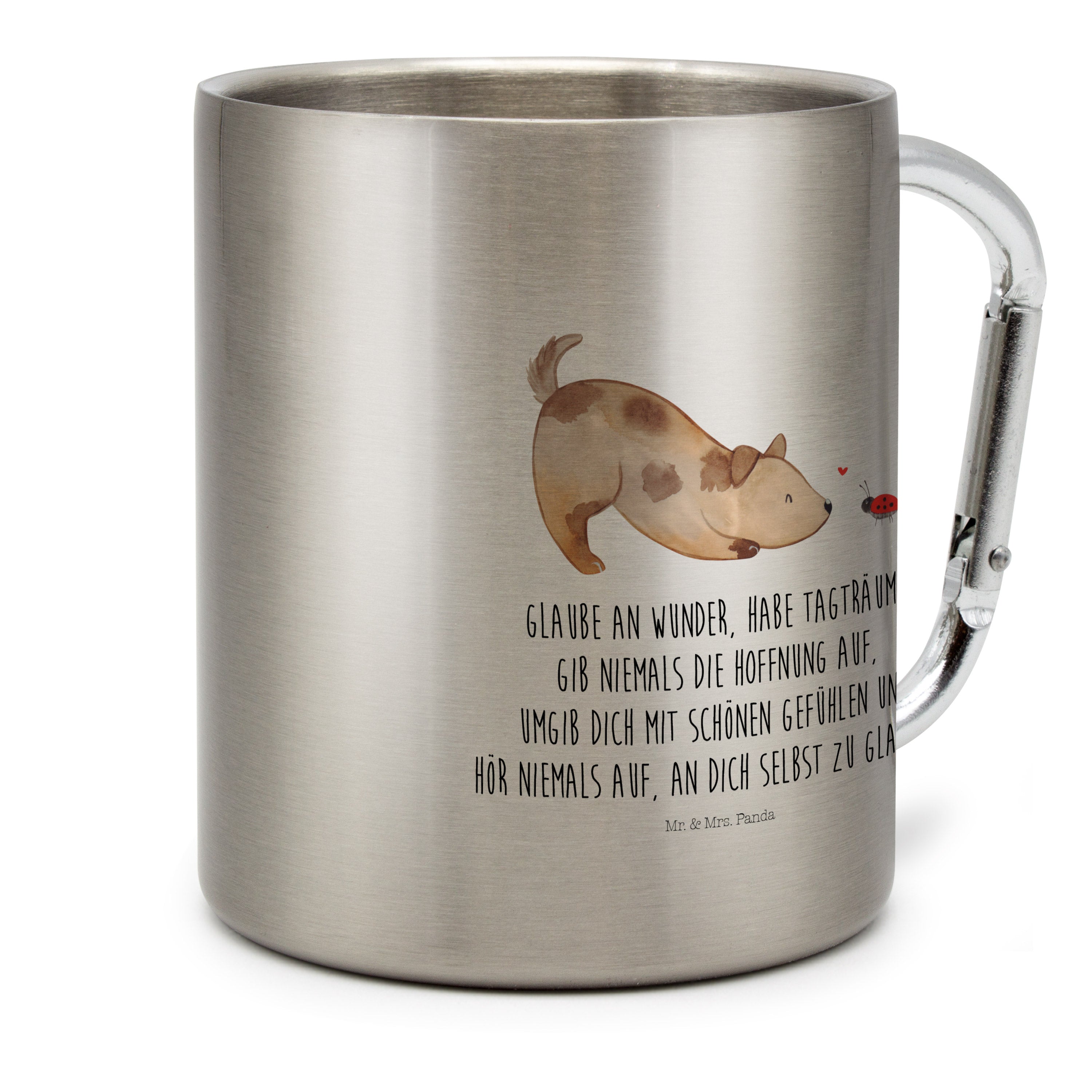 Edelstahlbecher Hund Marienkäfer Edelstahltasse, Karabiner, Edelstahlbecher, Outdoor, Camping, Tasse, Becher, Hund, Hundemotiv, Haustier, Hunderasse, Tierliebhaber, Hundebesitzer, Sprüche, Hunde, Hundespruch, Marienkäfer, Mischling, Mischlinghund