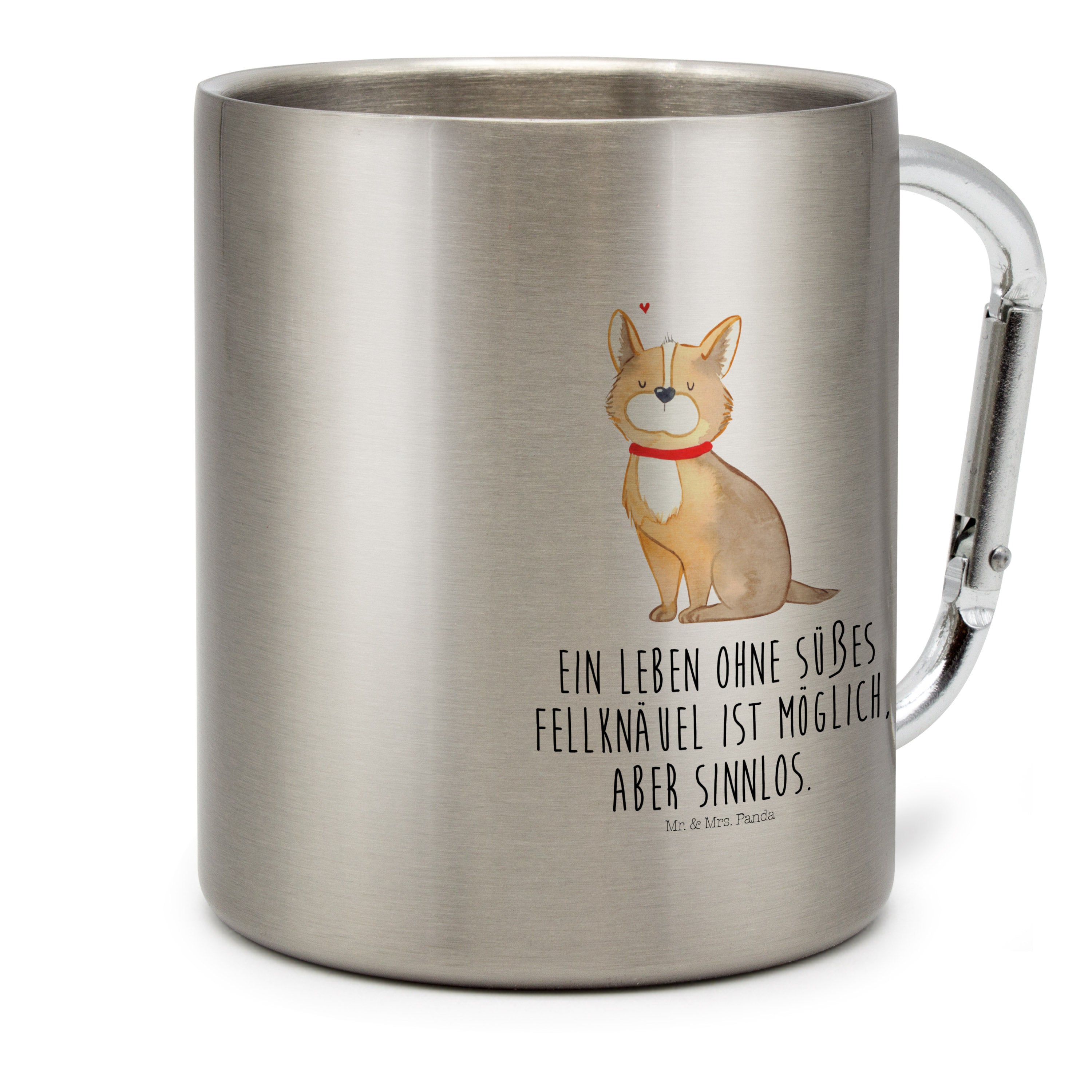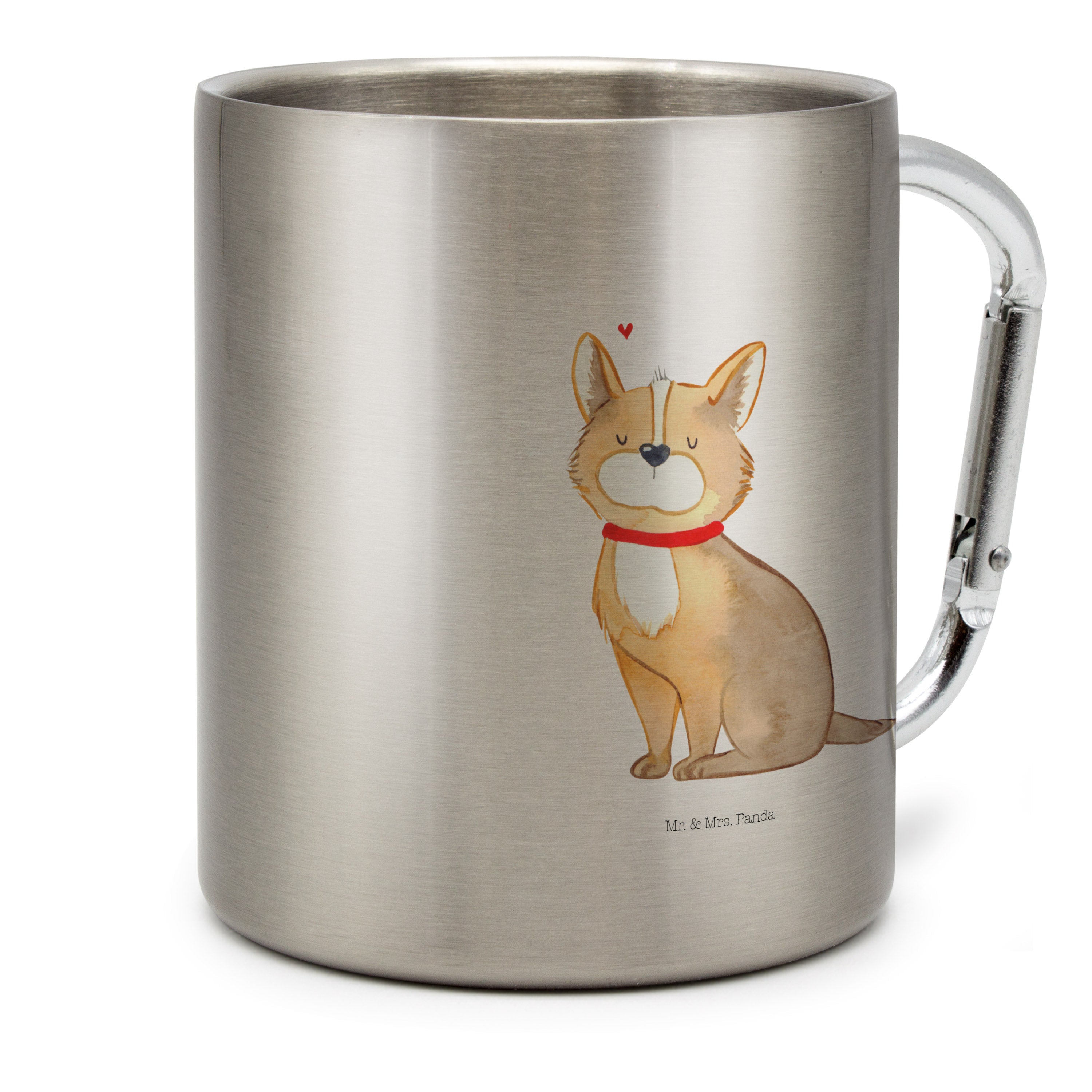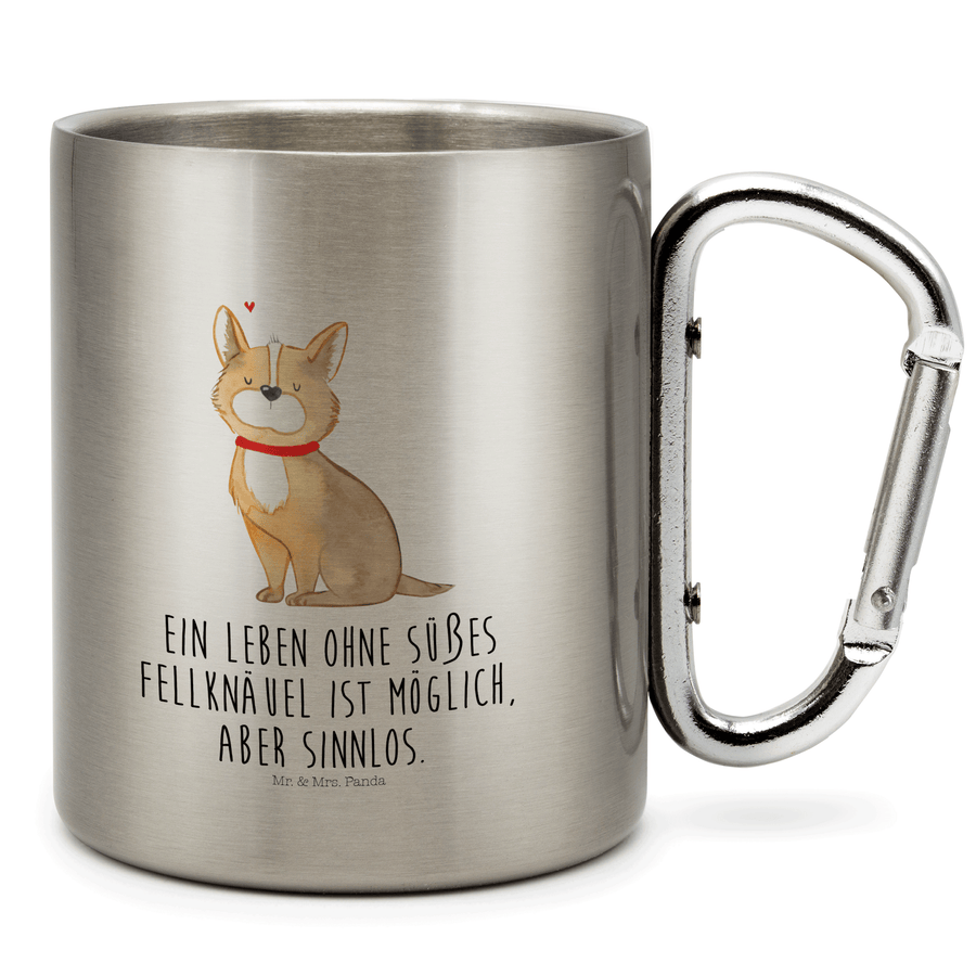 Edelstahlbecher Hundeglück Edelstahltasse, Karabiner, Edelstahlbecher, Outdoor, Camping, Tasse, Becher, Hund, Hundemotiv, Haustier, Hunderasse, Tierliebhaber, Hundebesitzer, Sprüche, Corgie, Hundeliebe, Spruch, Hundemama, Liebe