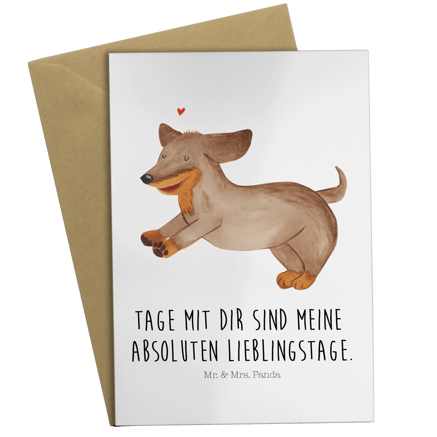 Grußkarte Hund Dackel fröhlich - mit Spruch - Weiß