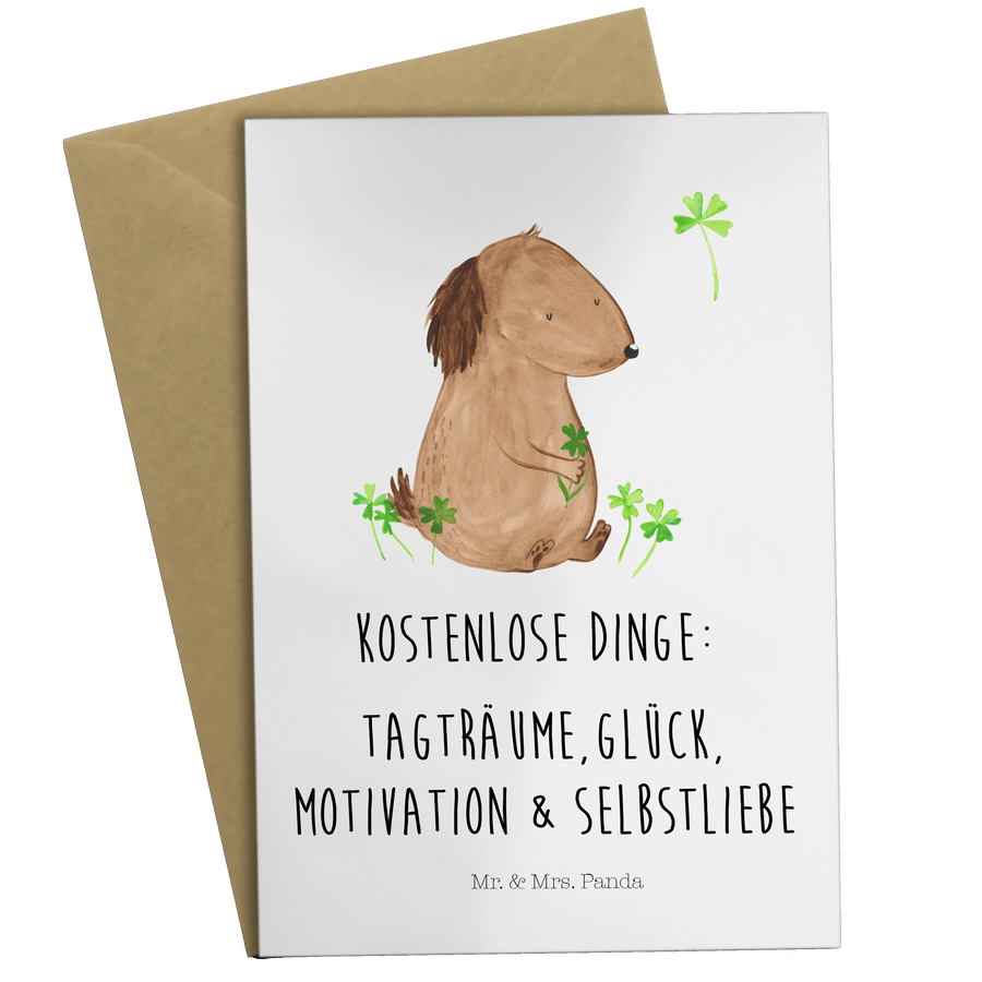 Grußkarte Hund Kleeblatt - mit Spruch - Weiß