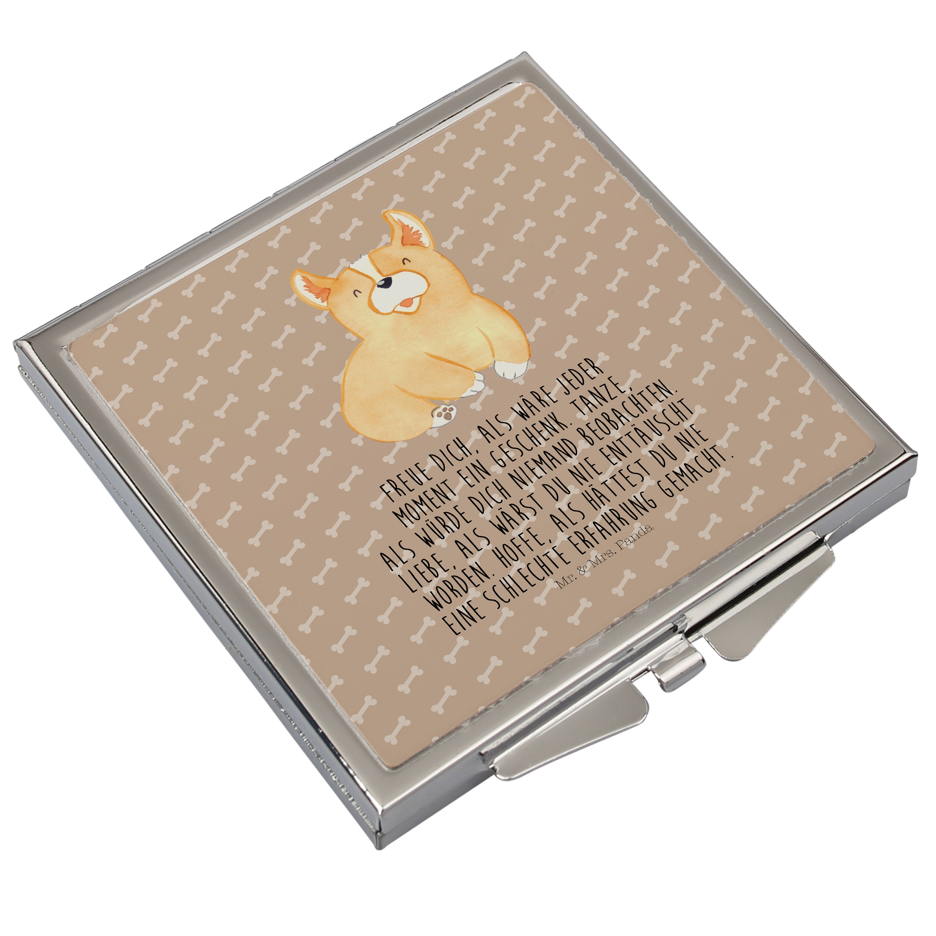 Handtaschenspiegel quadratisch Corgie - mit Spruch - Hundeglück