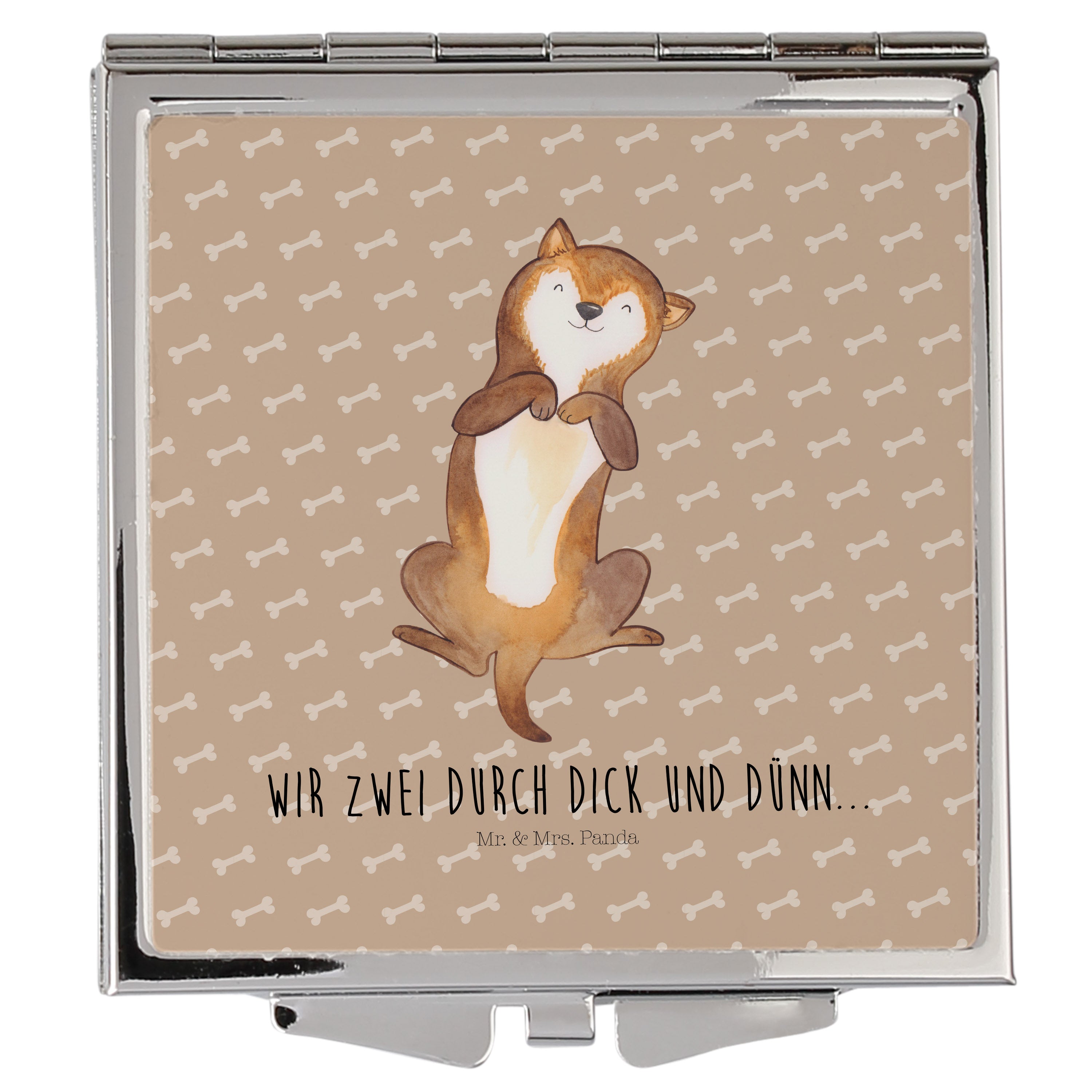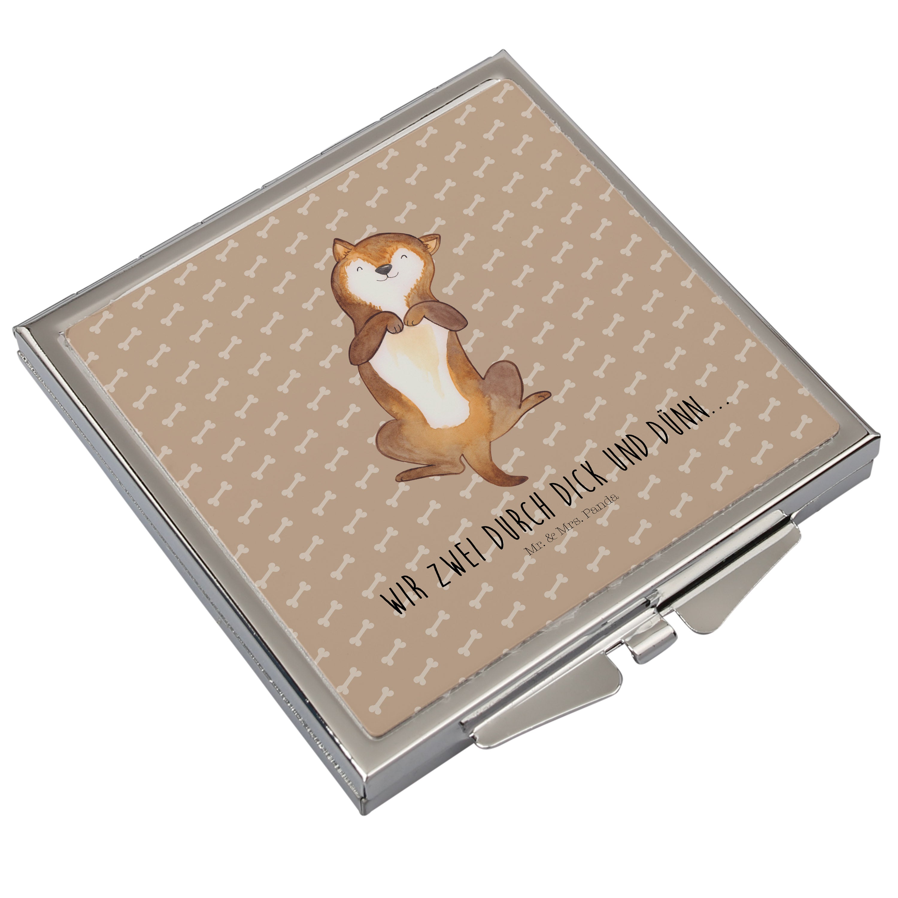 Handtaschenspiegel quadratisch Hund Bauchkraulen - mit Spruch - Hundeglück