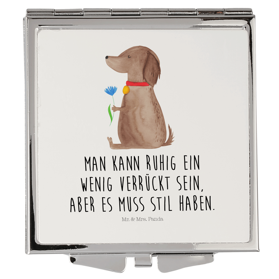 Handtaschenspiegel quadratisch Hund Blume - mit Spruch - Weiß
