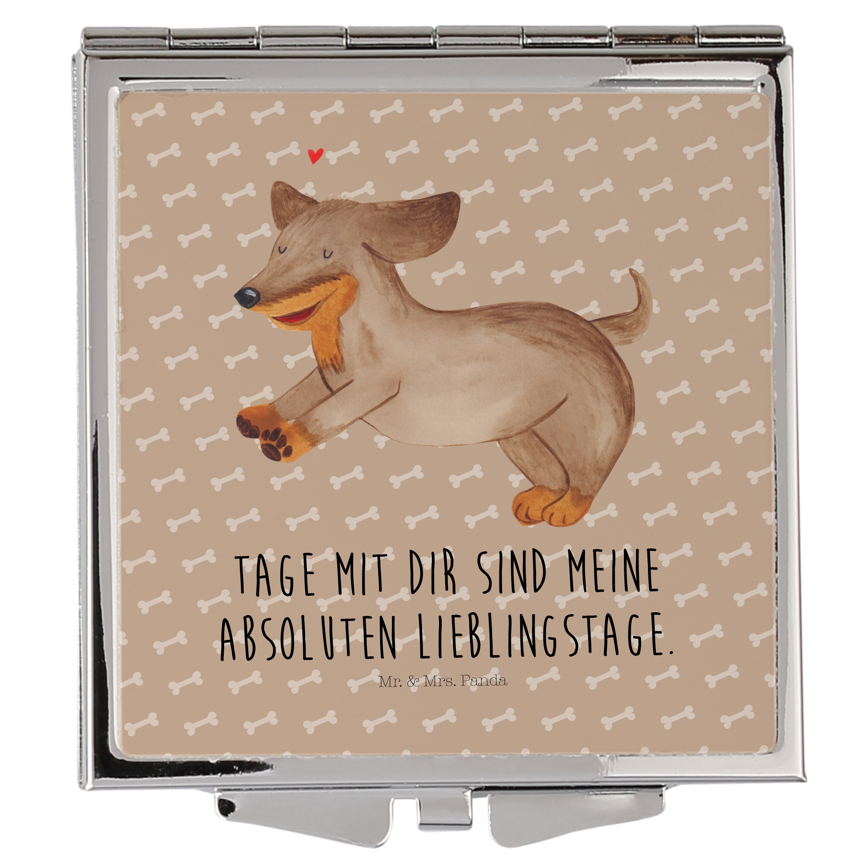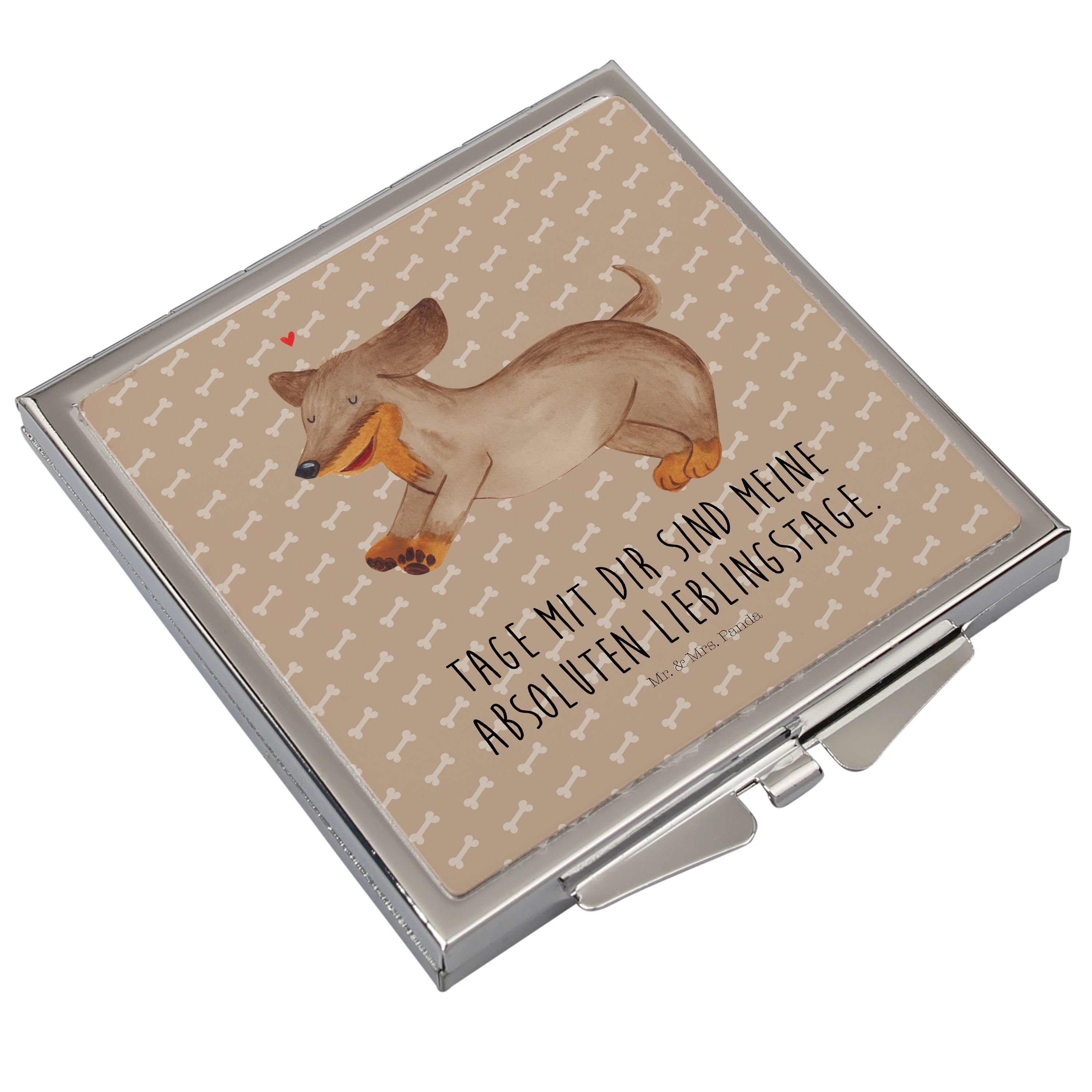Handtaschenspiegel quadratisch Hund Dackel fröhlich - mit Spruch - Hundeglück