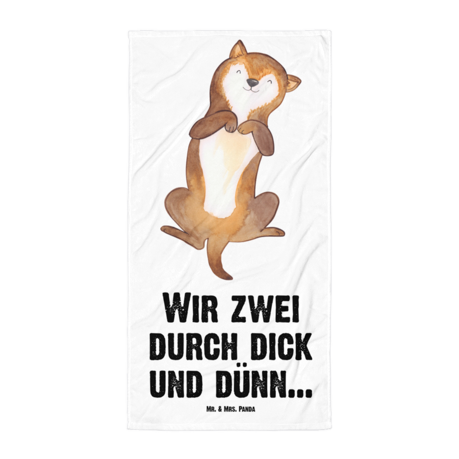 XL Badehandtuch Hund Bauchkraulen - mit Spruch - Weiß