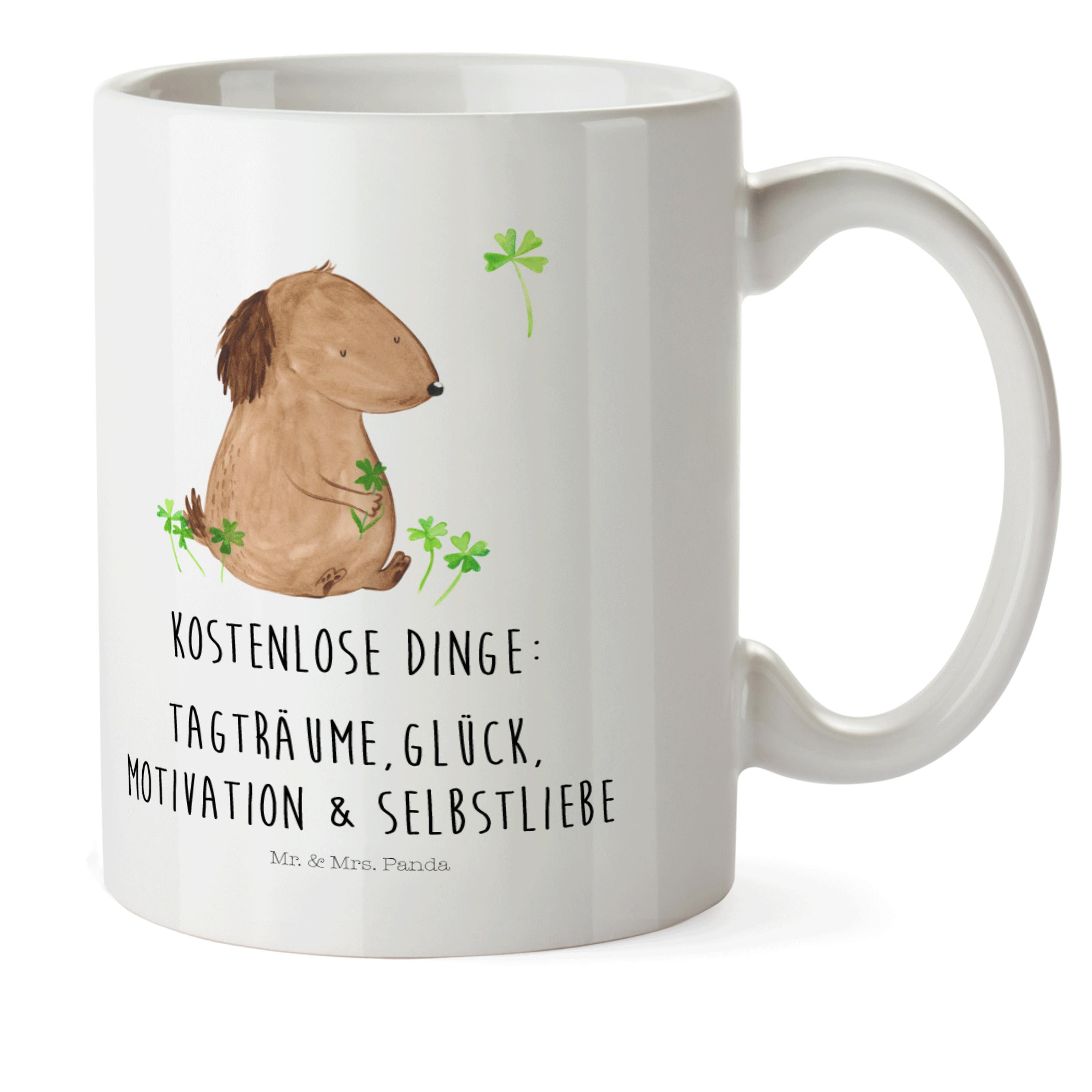 Kindertasse Hund Kleeblatt - mit Spruch - Weiß