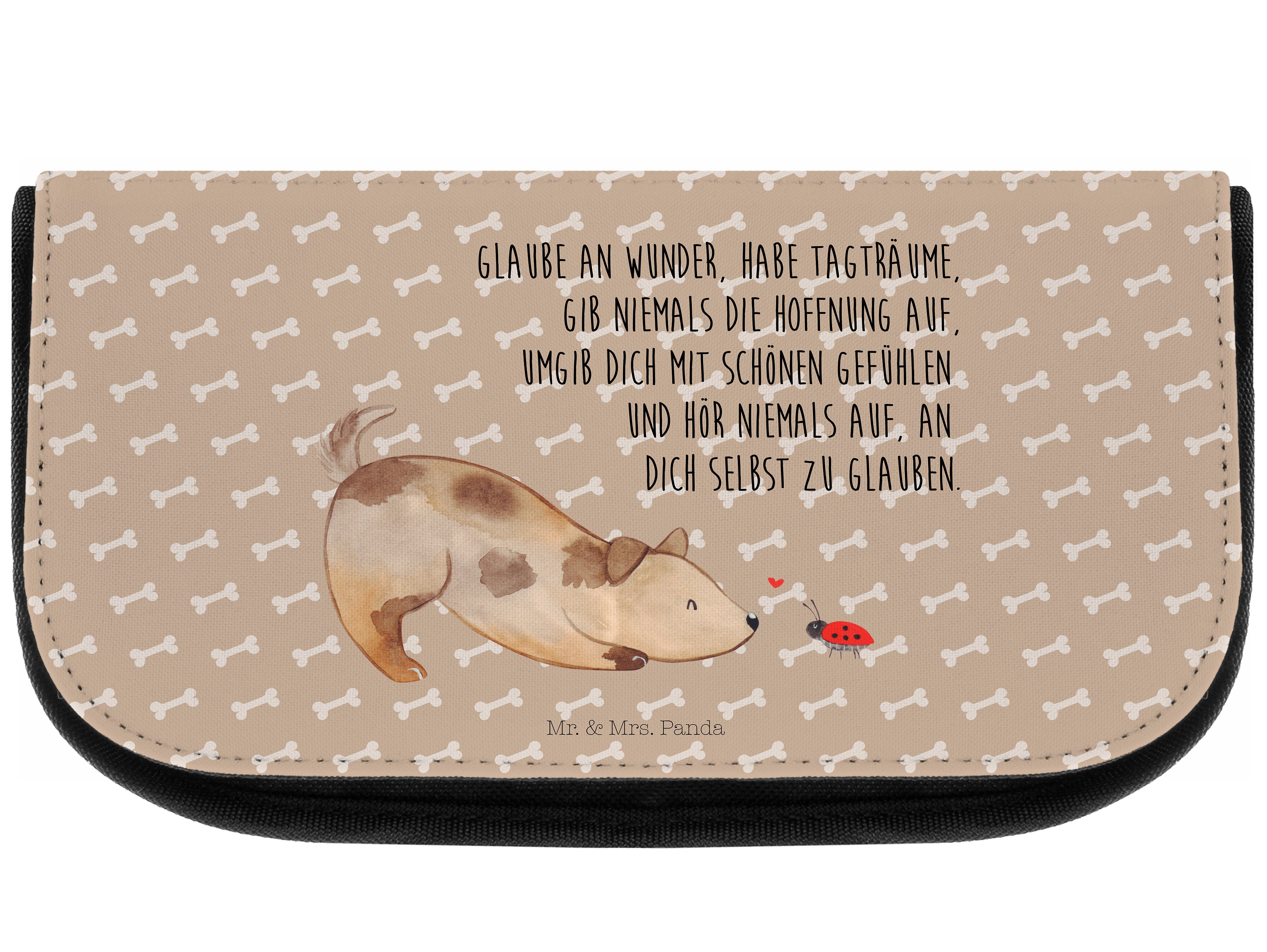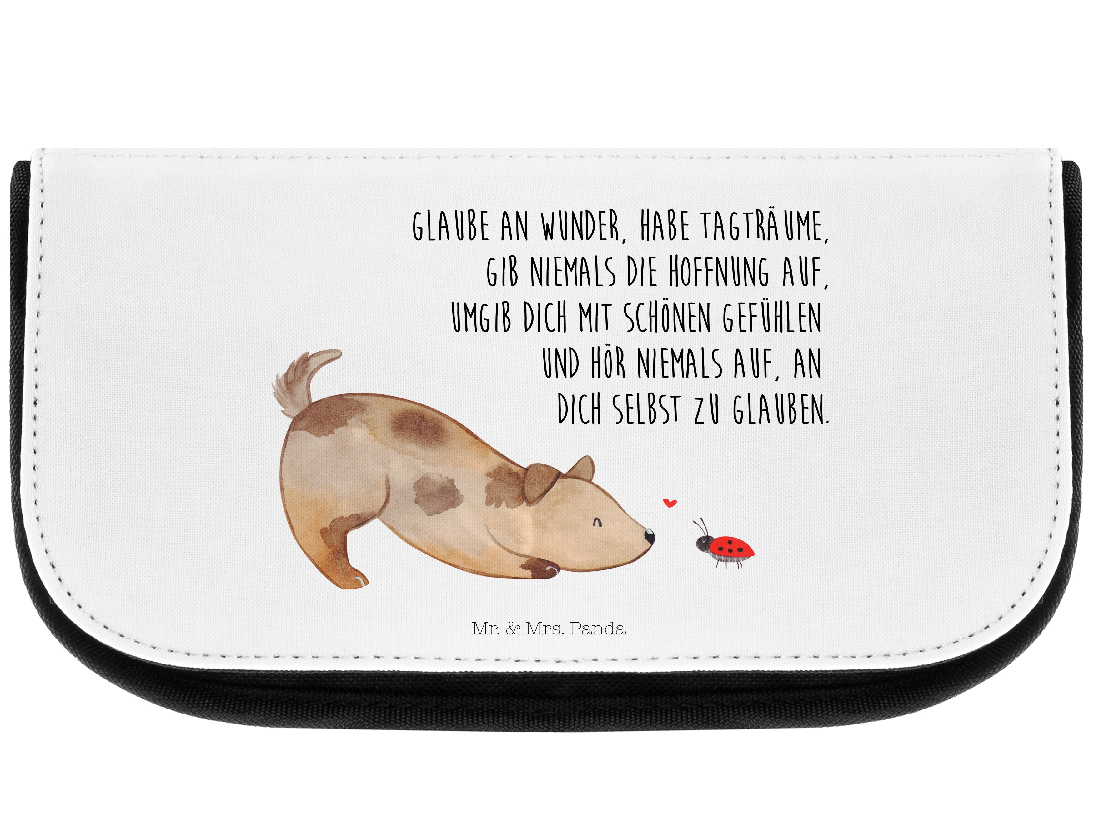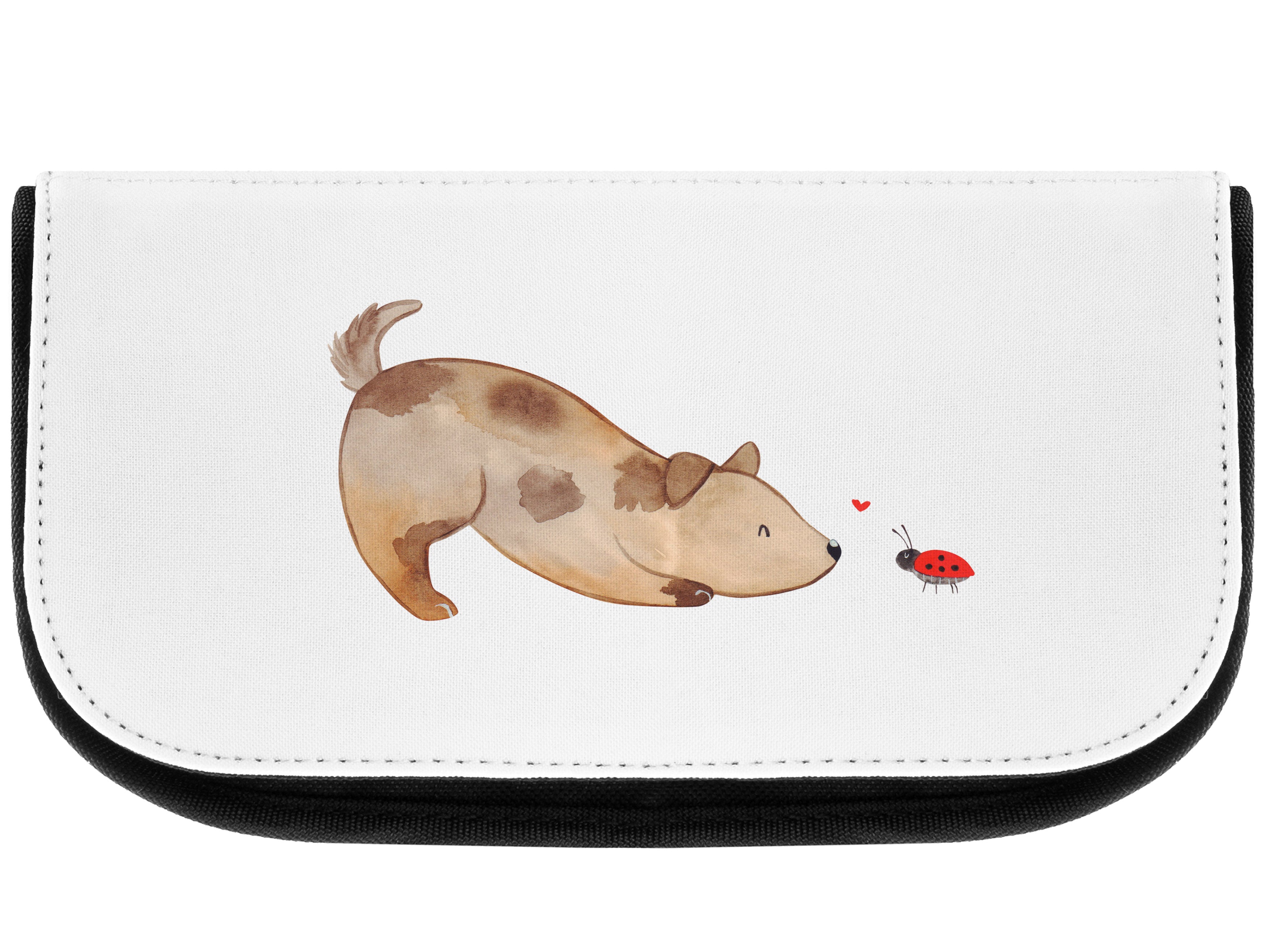 Kosmetiktasche Hund Marienkäfer - mit Spruch - Weiß