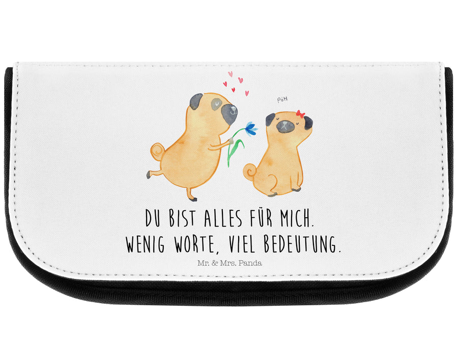 Kosmetiktasche Mops verliebt - mit Spruch - Weiß