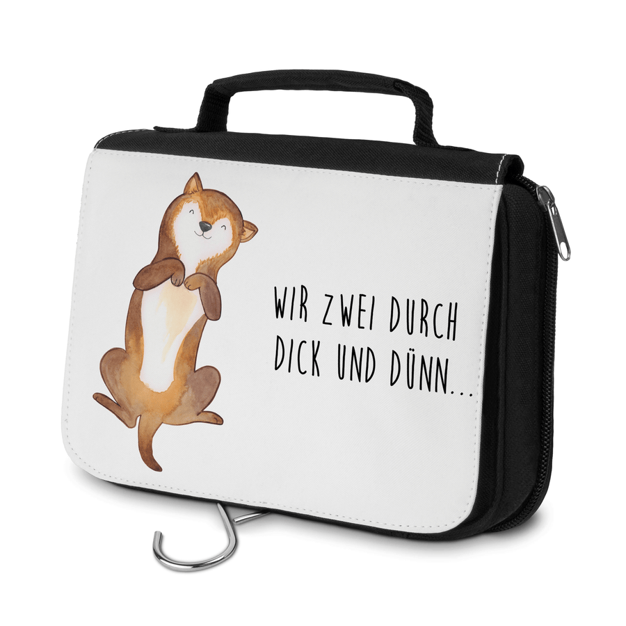 Kulturbeutel Hund Bauchkraulen - mit Spruch - Weiß