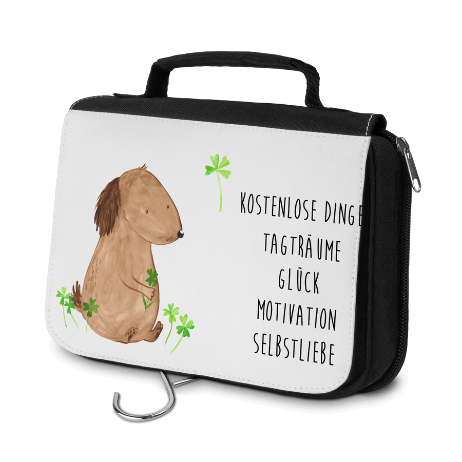 Kulturbeutel Hund Kleeblatt - mit Spruch - Weiß